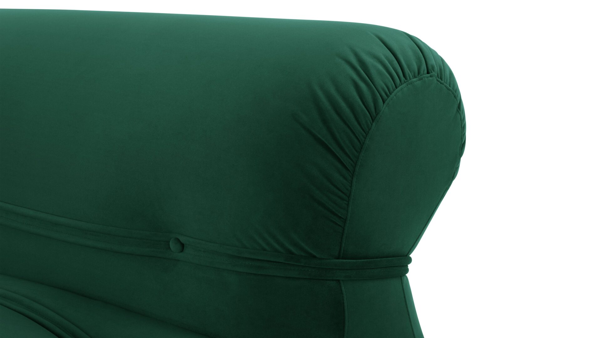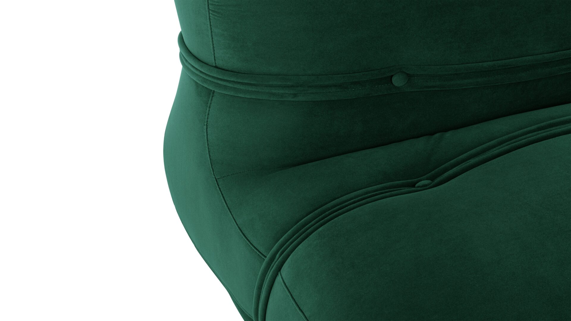 Elevate your space with the Bao Three Seater Sofa in vibrant green velvet and gunmetal gray frame. Featuring a striking curved profile and buttoned upholstery with thick piping, this armless contemporary piece offers comfort and style. Perfect for casual or entertainment areas, pair it with the matching lounge chair for a sophisticated ensemble.