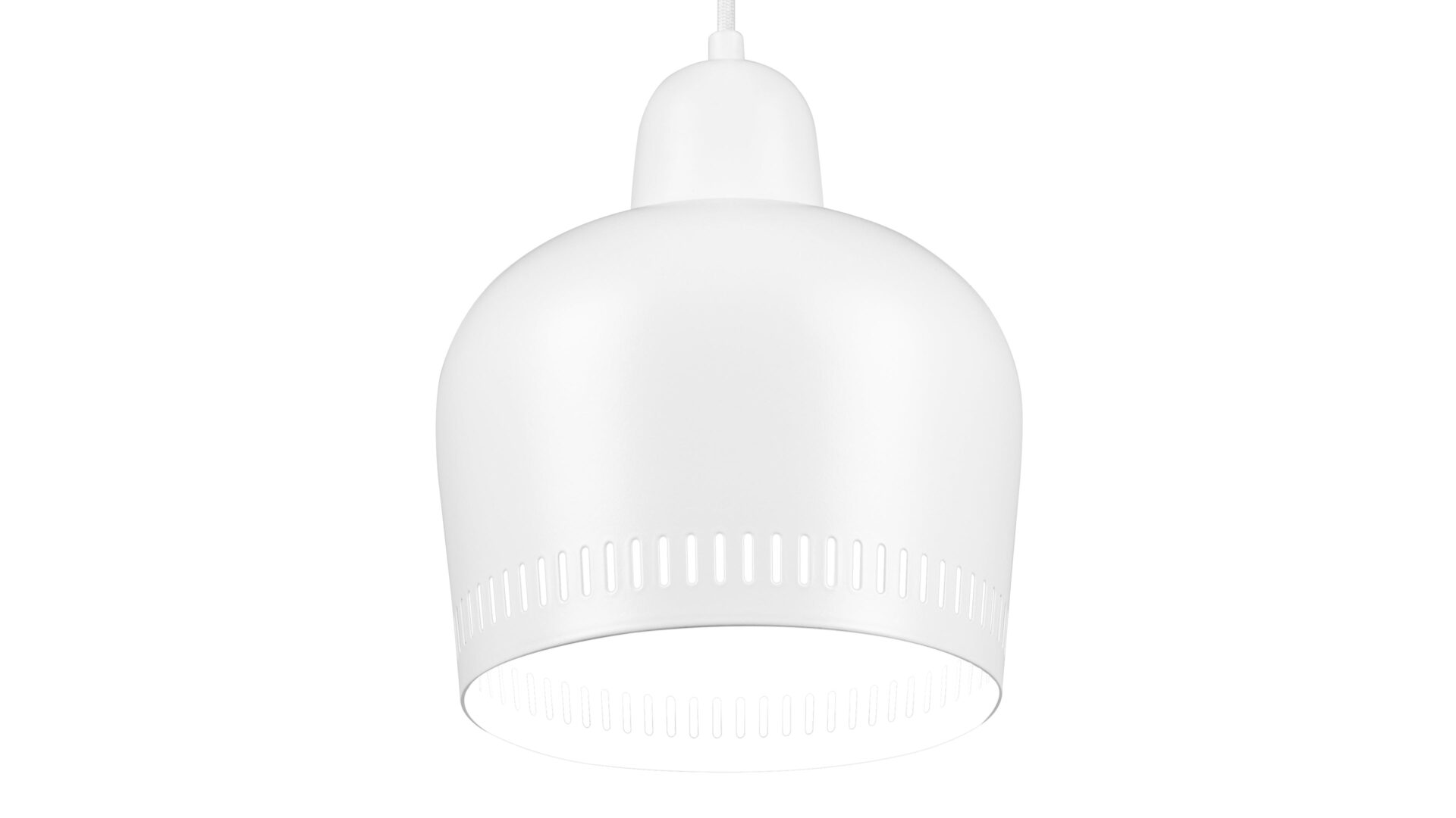 Introducing the Bella Lamp, a stunning piece of Scandinavian design known for its enduring sophistication and artistry. Crafted from a single piece of steel, the Bella Pendant Lamp in white exudes a modern allure with its bell-shaped shade and chic perforated ring base, providing a warm, luxurious glow that elevates any space.