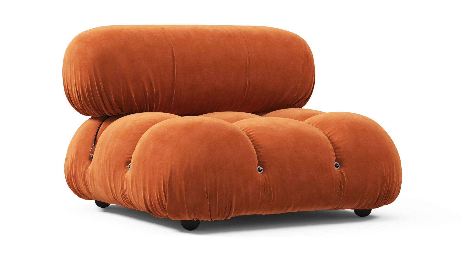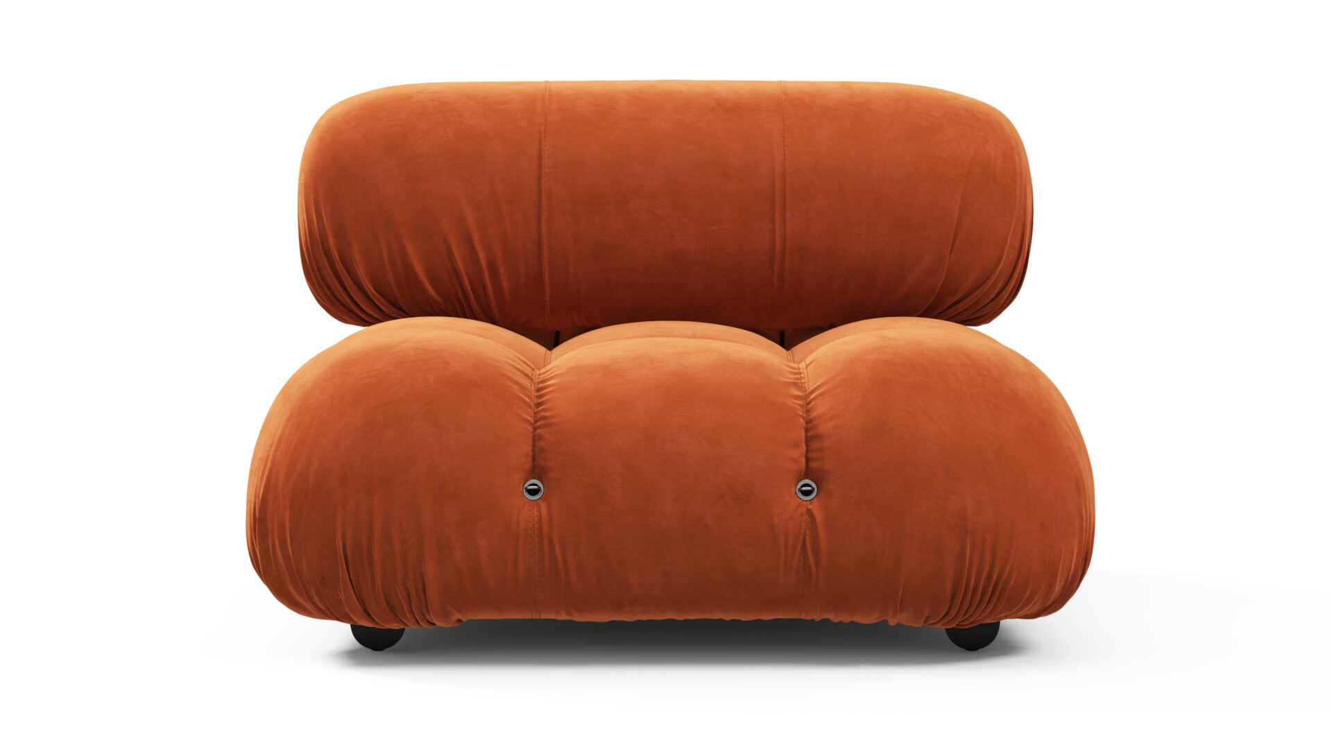 Step back in time to the 1970s with the Bellini sectional sofa, oozing groovy vibes and carefree living. Defying tradition, this modular sofa brings liberation to your space. Crafted with a sturdy wooden frame and plush cold-pressed foam wrapped in apricot velvet, its low-profile silhouette exudes relaxed luxury. Adored by a new generation, the Bellini's adaptive design allows for effortless customization to match your ever-evolving style and mood.