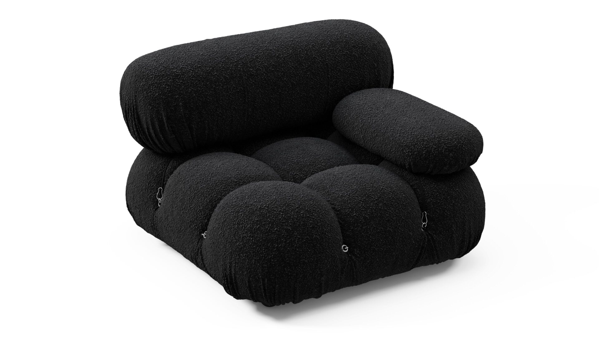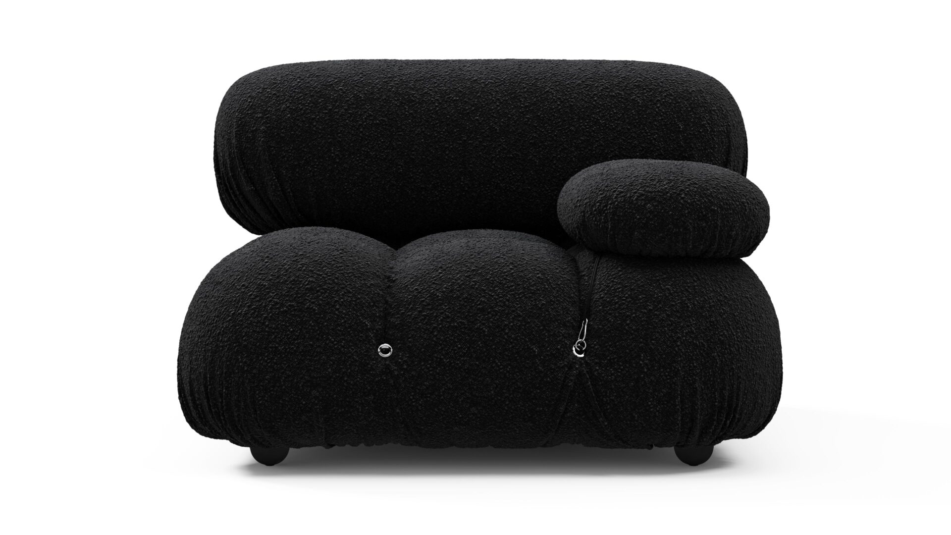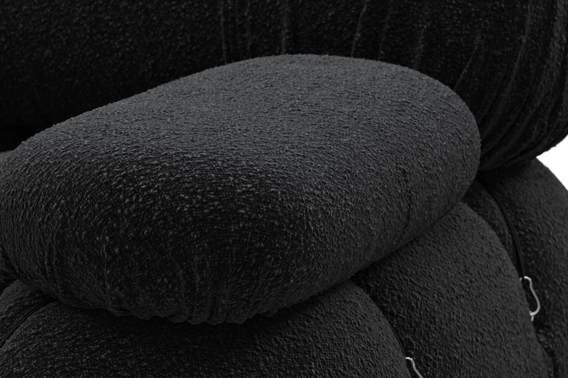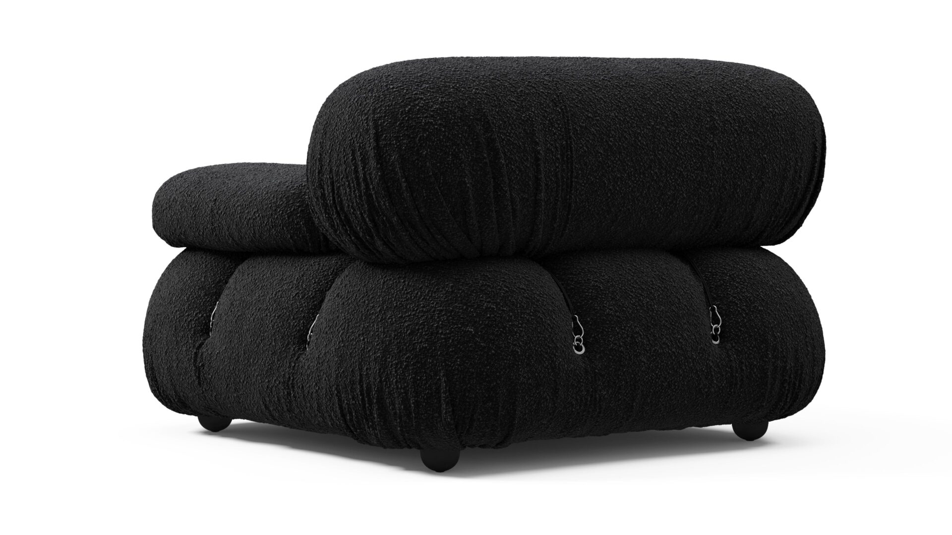 Step back in time to the 1970s with the Bellini sectional sofa, exuding groovy vibes and carefree living. Innovative and modular, the Bellini brings a liberating essence to your space. Its versatile design lets you easily customize it to match your room layout and mood. Crafted with a solid wooden frame, plush cold-pressed foam, and enveloped in Black Boucle fabric, the Bellini showcases relaxed luxury while providing a comfortable and stylish seating experience. This beloved piece, characterized by its tie rods and rings, allows effortless rearrangement, ensuring it adapts to your evolving preferences. Embrace the iconic Bellini for endless configurations and a timeless style that effortlessly complements any setting.
