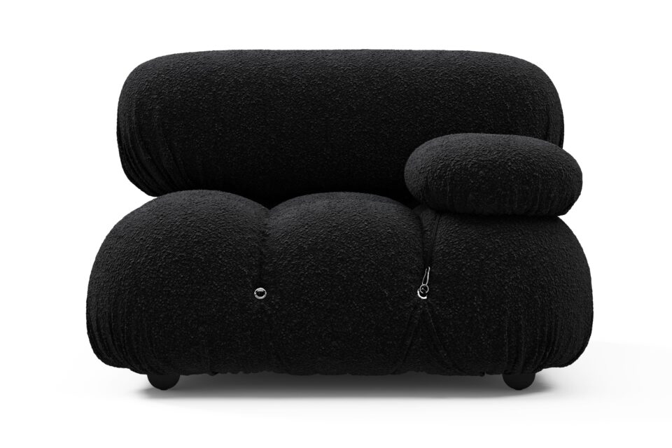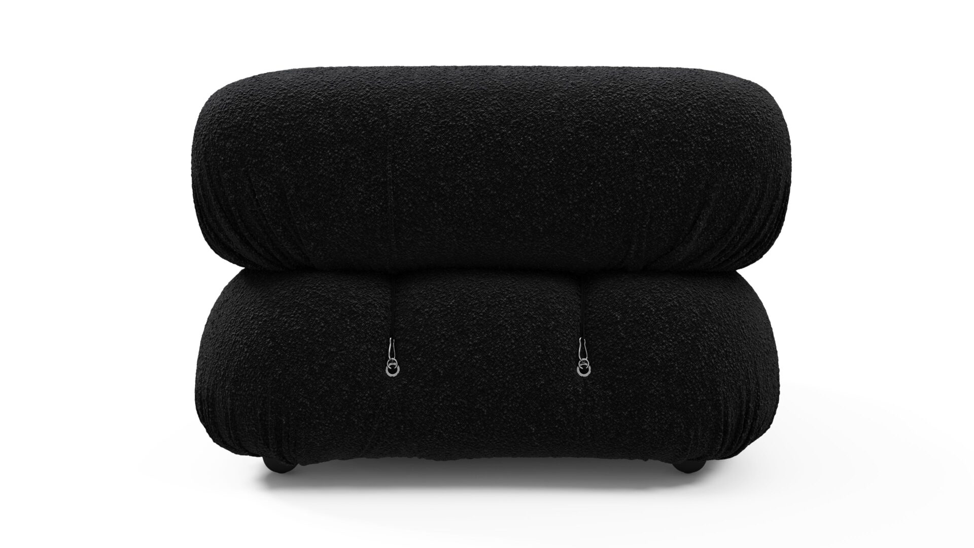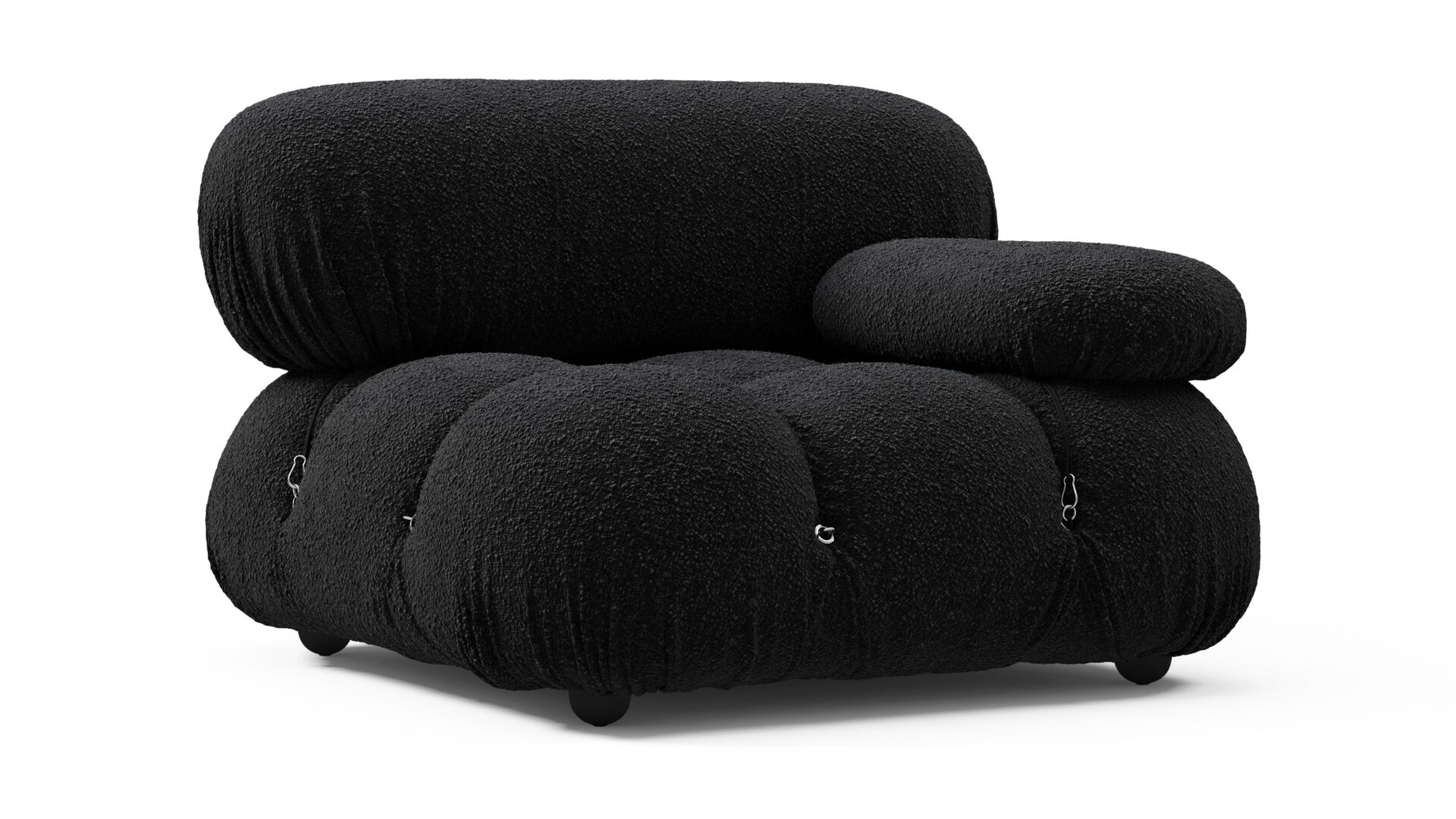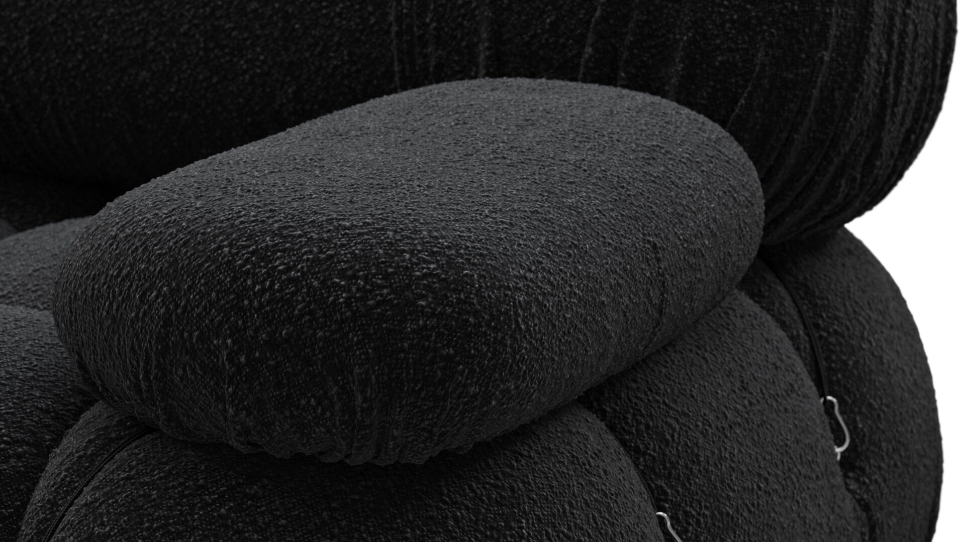 Step back in time to the 1970s with the Bellini sectional sofa, exuding groovy vibes and carefree living. Innovative and modular, the Bellini brings a liberating essence to your space. Its versatile design lets you easily customize it to match your room layout and mood. Crafted with a solid wooden frame, plush cold-pressed foam, and enveloped in Black Boucle fabric, the Bellini showcases relaxed luxury while providing a comfortable and stylish seating experience. This beloved piece, characterized by its tie rods and rings, allows effortless rearrangement, ensuring it adapts to your evolving preferences. Embrace the iconic Bellini for endless configurations and a timeless style that effortlessly complements any setting.