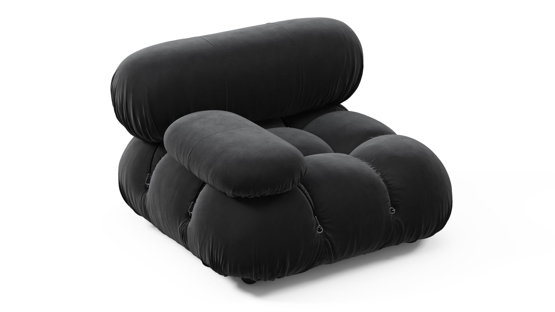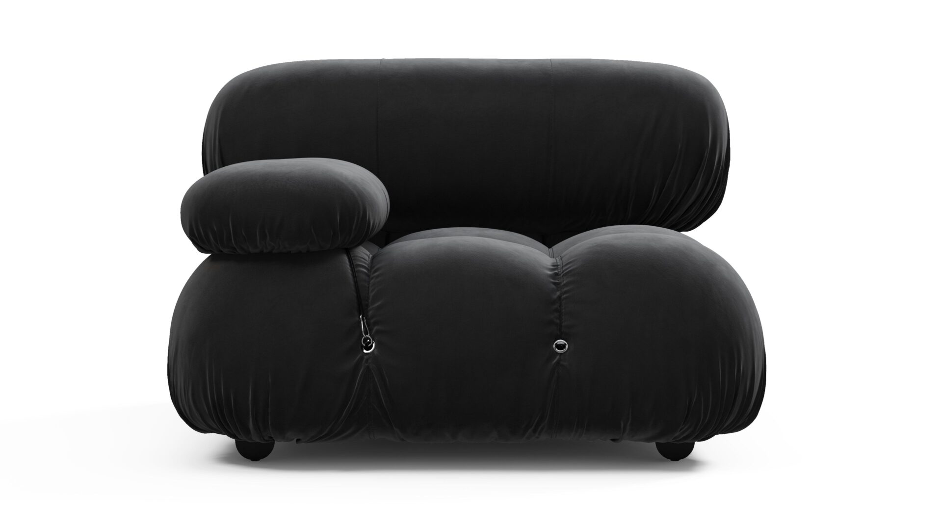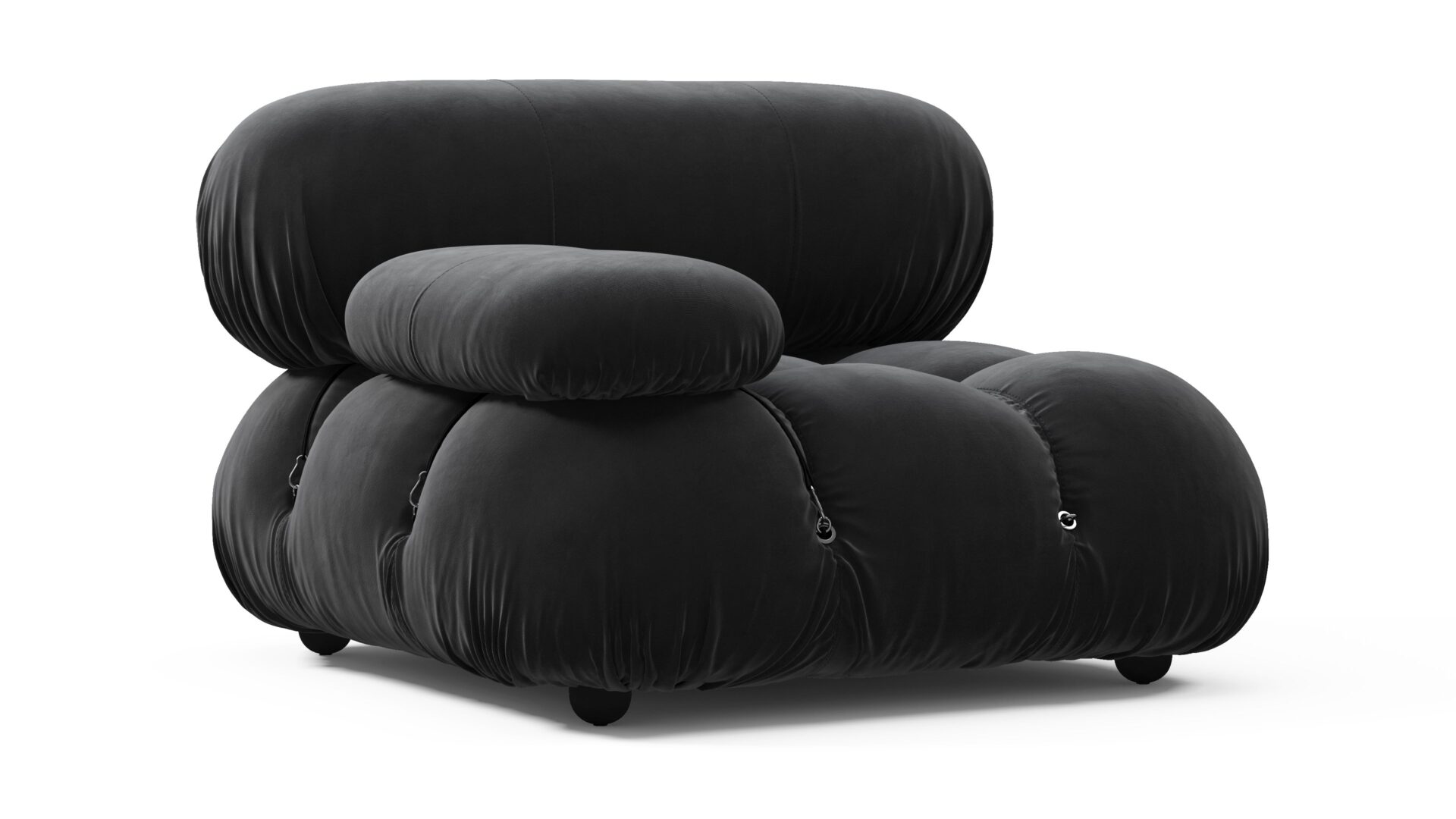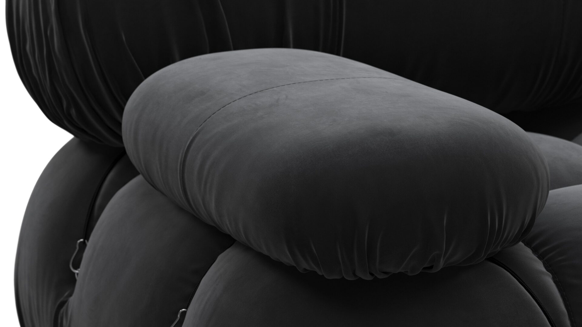 Step into retro chic with the Bellini sectional sofa, a nod to the 1970s era of liberation. The versatile modular design of the Black Velvet version lets you curate a personalized sofa to suit your style and space effortlessly. Crafted with a durable wooden frame and sumptuous cold-pressed foam, this sofa exudes relaxed luxury with inviting cushions that invite you to unwind in style.