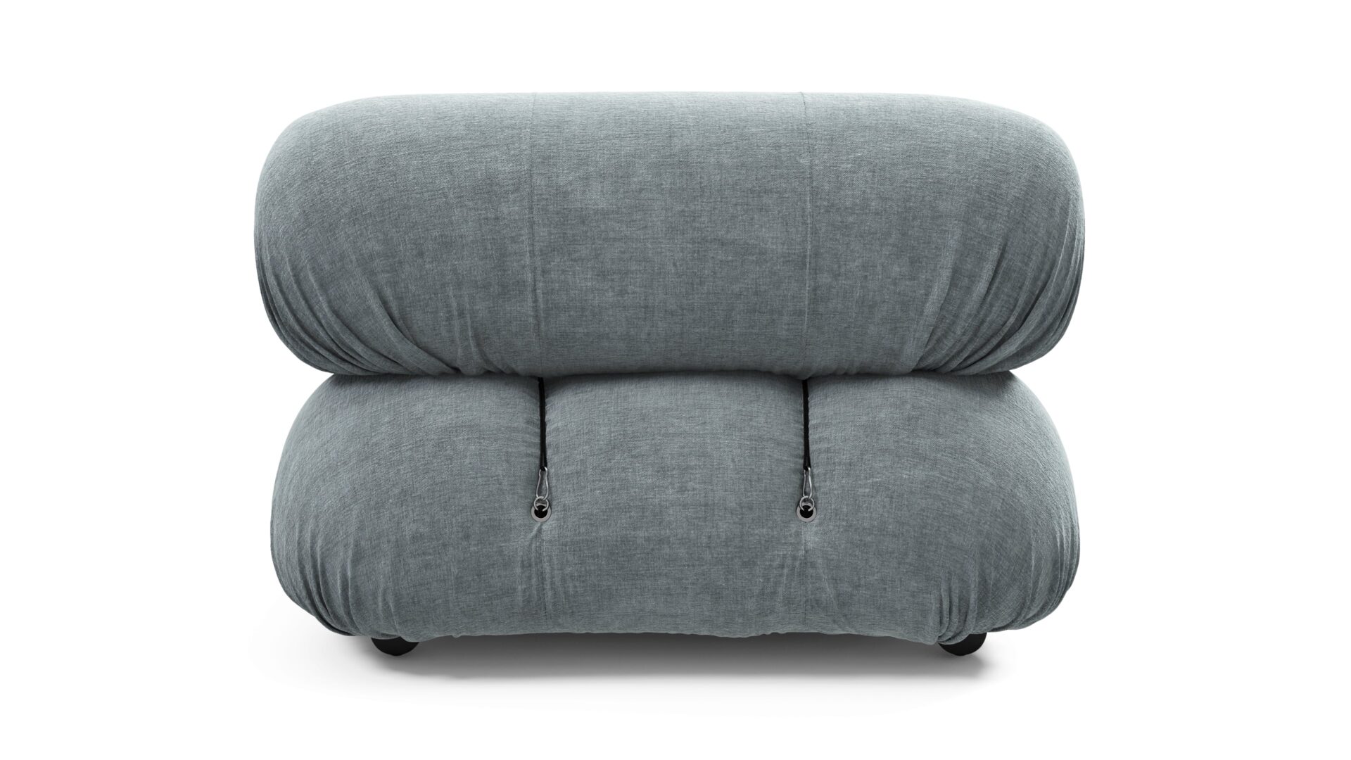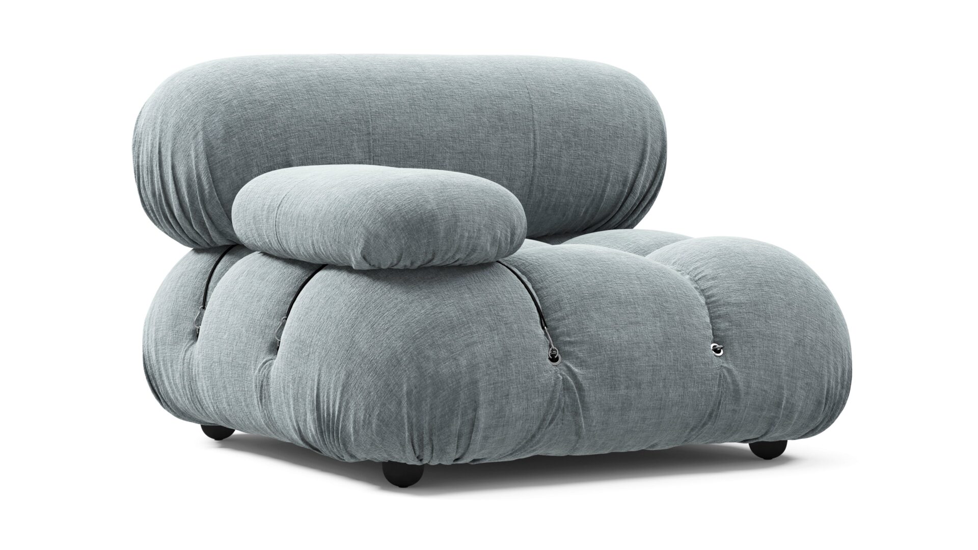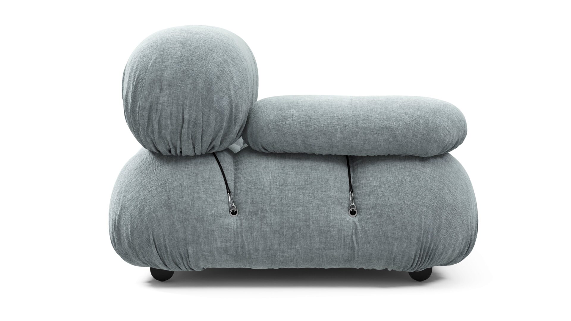 Step back to the groovy 1970s with the Bellini sectional sofa, a tribute to carefree living. Defying convention, the Bellini brings liberation to your space with its modular design for easy customization without a full makeover. Its tie rods and rings allow effortless rearranging, while its plush cold-pressed foam wrapped in Cerulean Chenille exudes relaxed luxury. The Bellini is beloved for its adaptability, inviting you to unwind in style with each cushion.