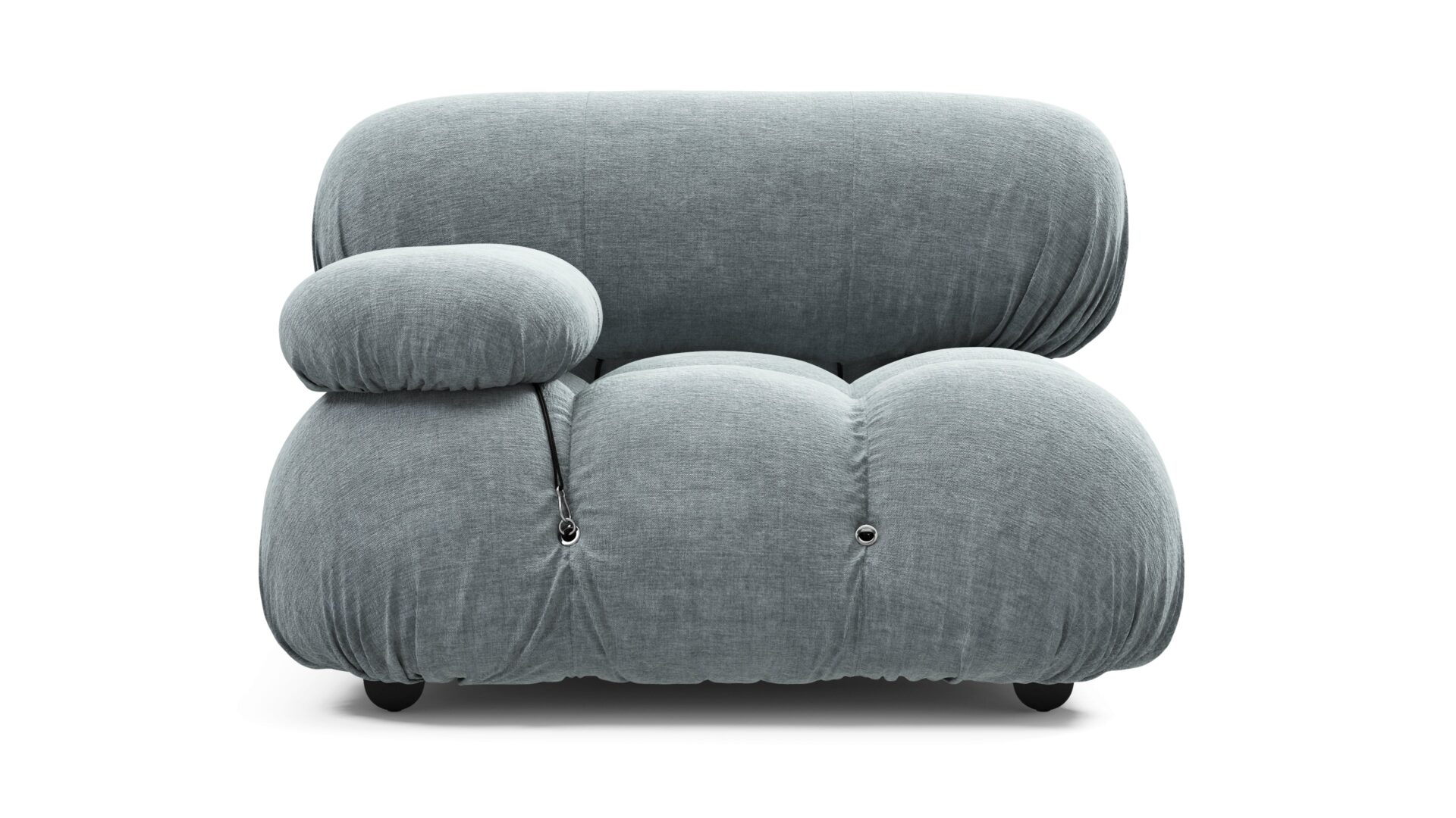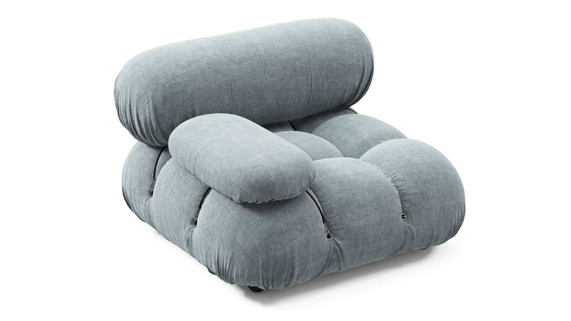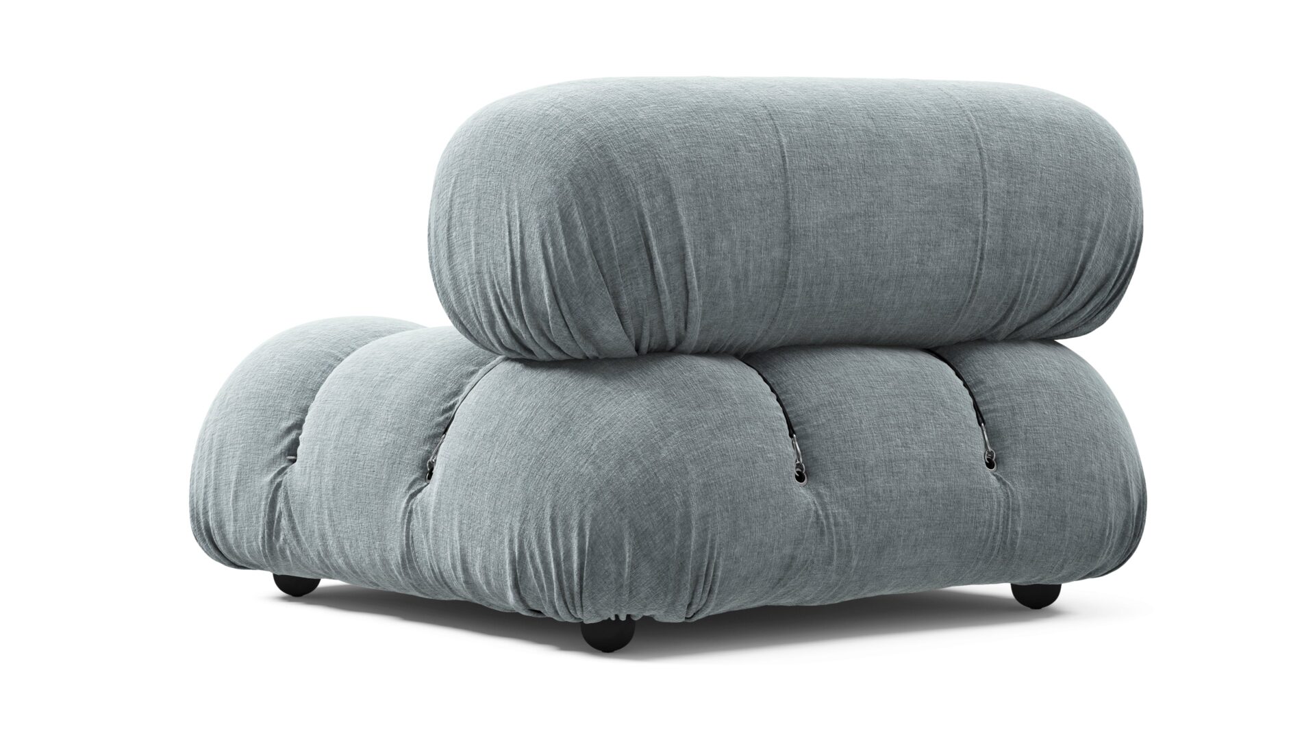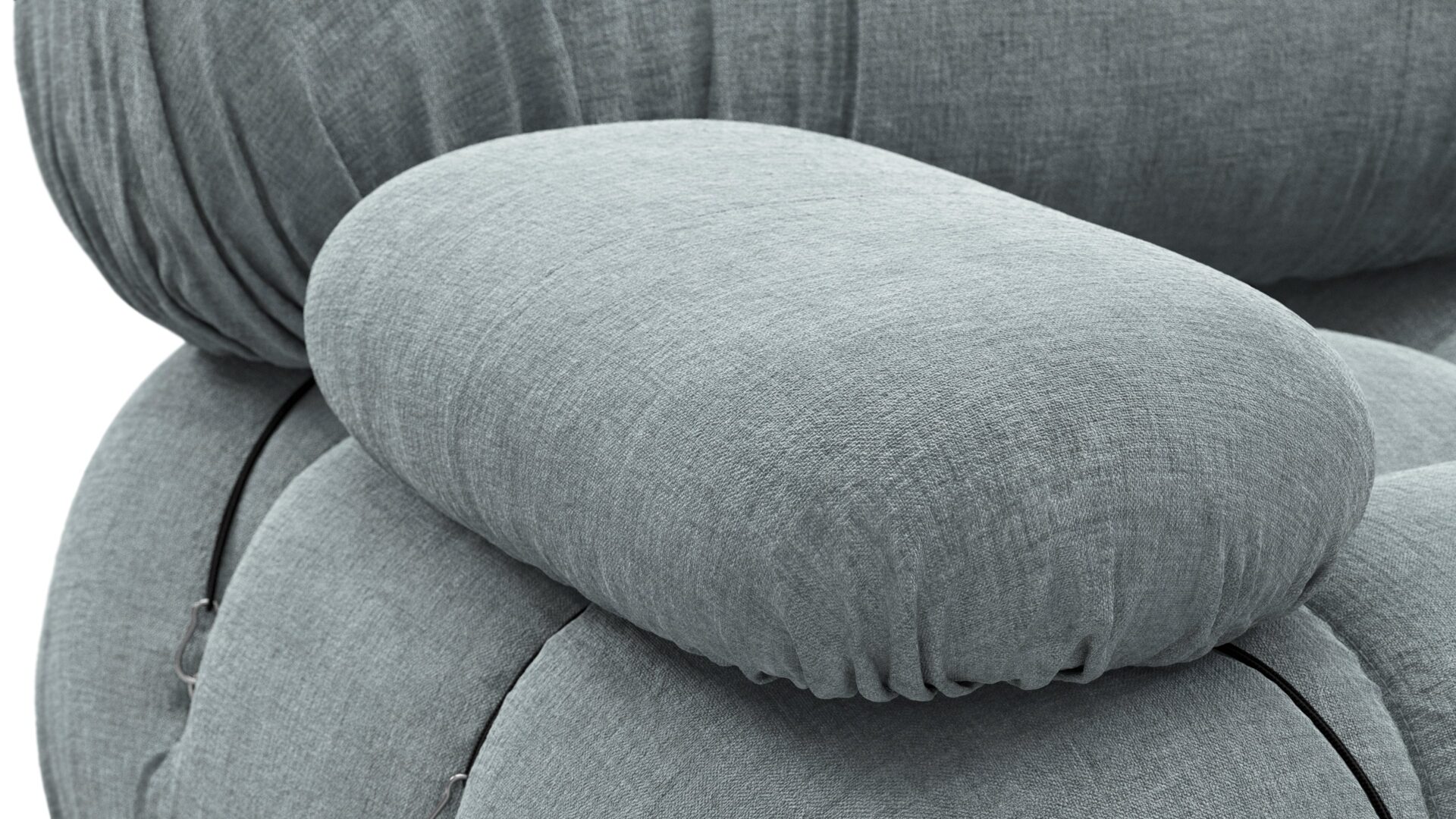 Step back to the groovy 1970s with the Bellini sectional sofa, a tribute to carefree living. Defying convention, the Bellini brings liberation to your space with its modular design for easy customization without a full makeover. Its tie rods and rings allow effortless rearranging, while its plush cold-pressed foam wrapped in Cerulean Chenille exudes relaxed luxury. The Bellini is beloved for its adaptability, inviting you to unwind in style with each cushion.