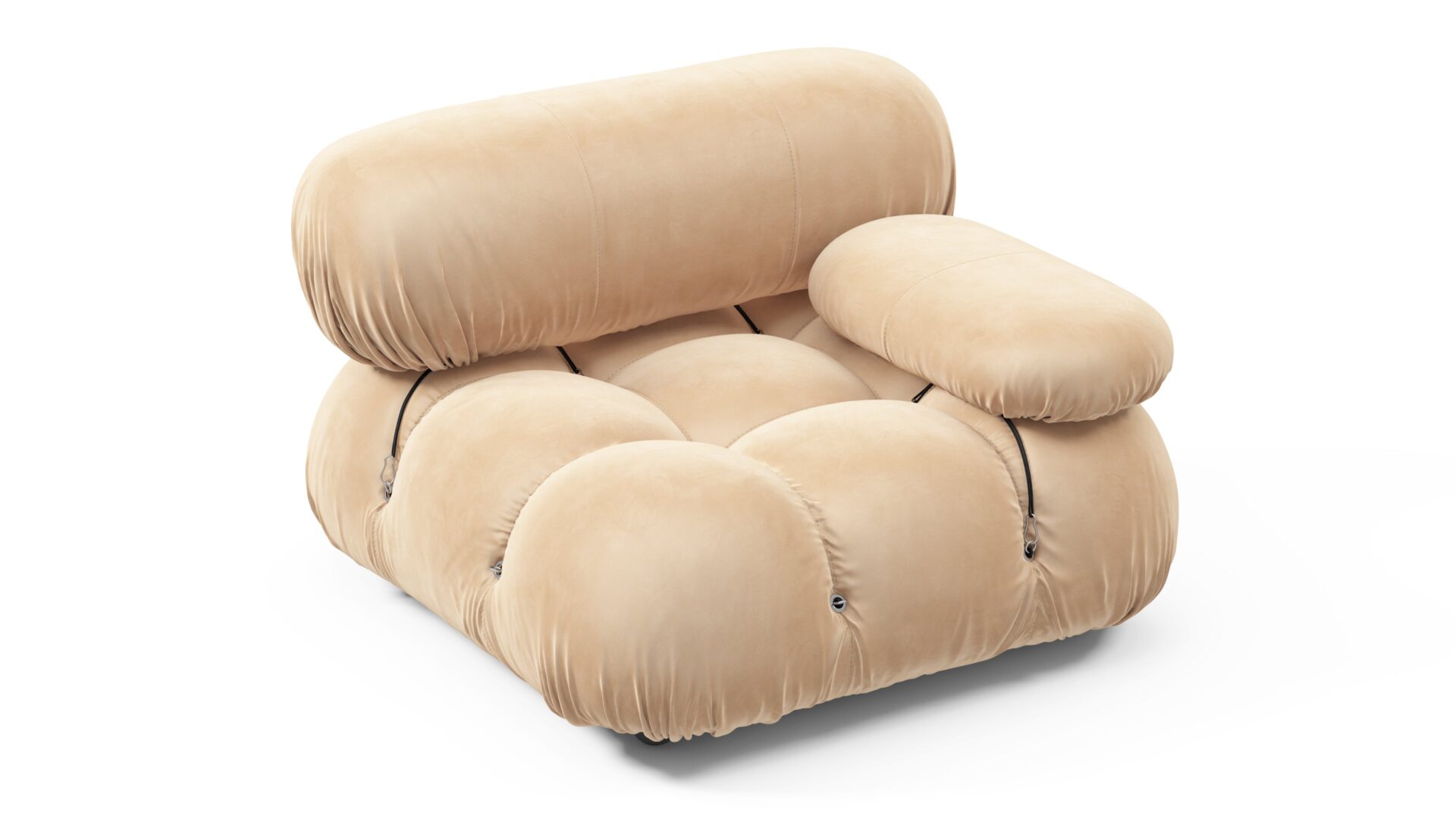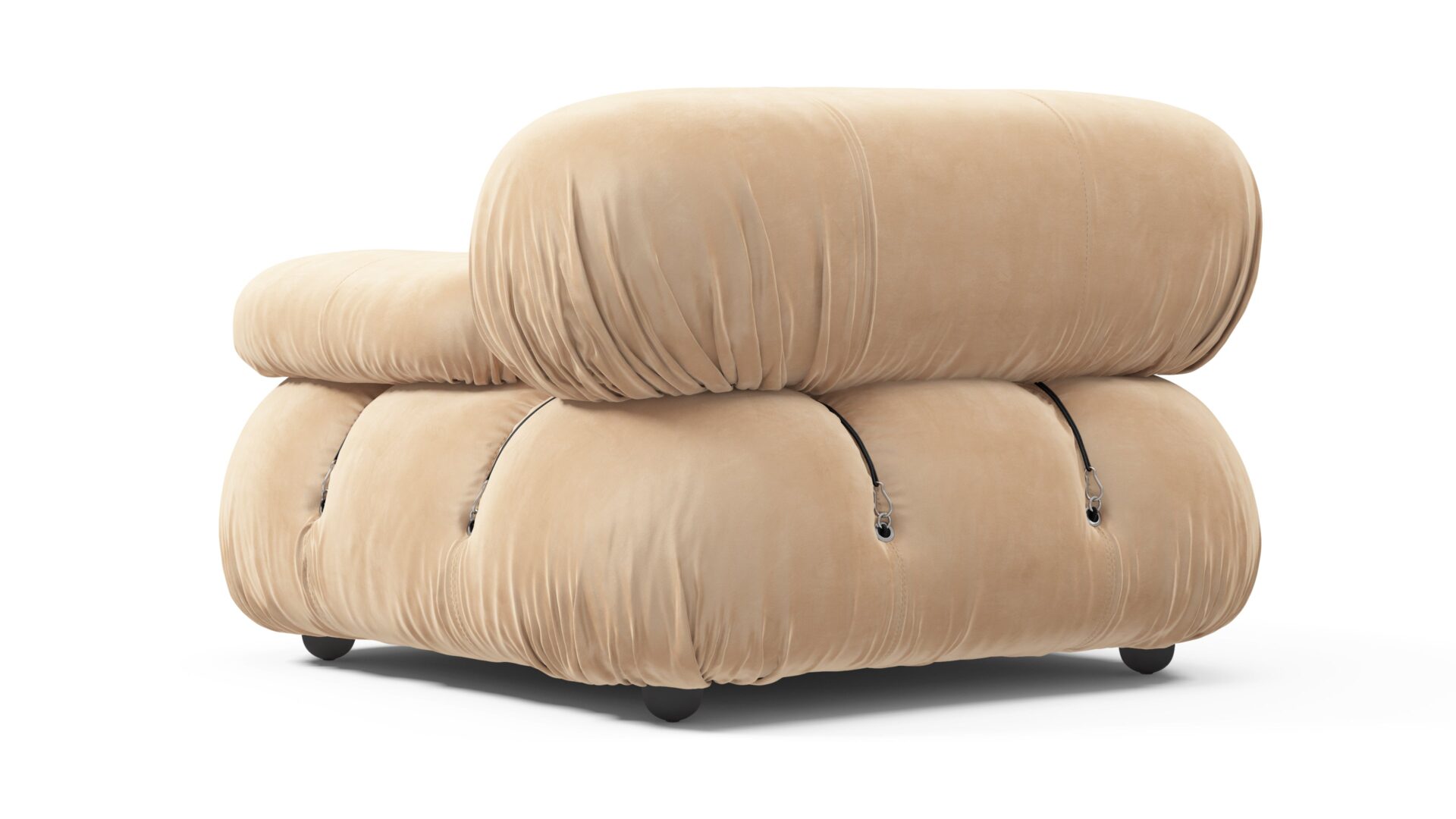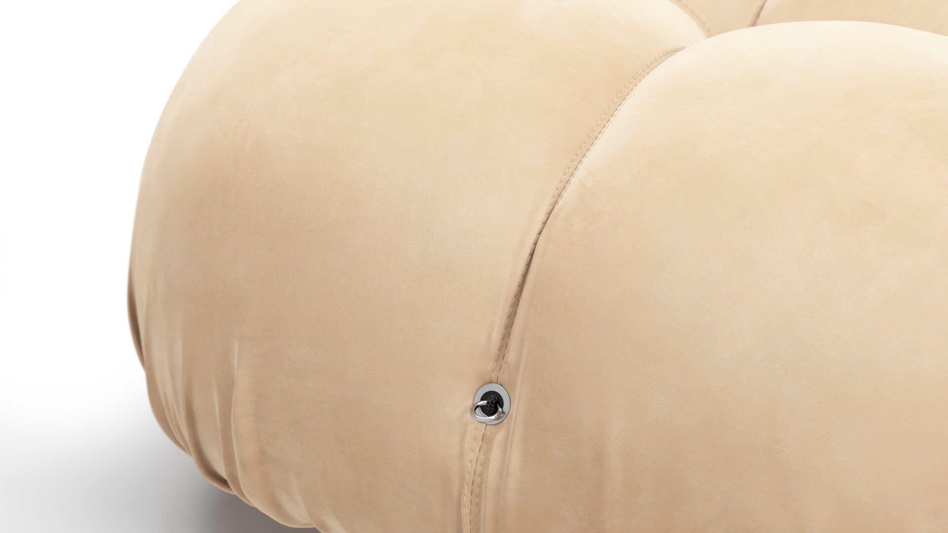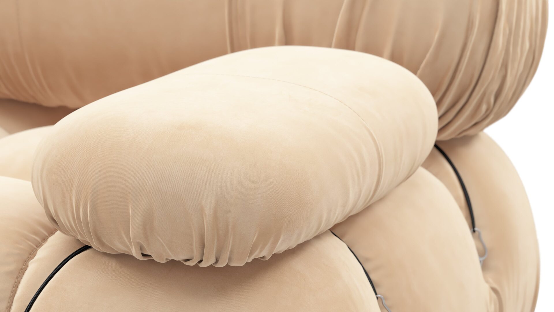 Step into the iconic '70s era with the Bellini sectional sofa, a modern homage to retro living. Its modular design allows effortless customization to suit your room layout and mood. Embraced by a new generation, the Bellini's versatile style features tie rods and rings for easy rearrangement, exuding relaxed luxury with plush ecru velvet upholstery on a sturdy wooden frame. Craft endless configurations to match your ever-evolving preferences and elevate your space with this liberating and stylish piece.