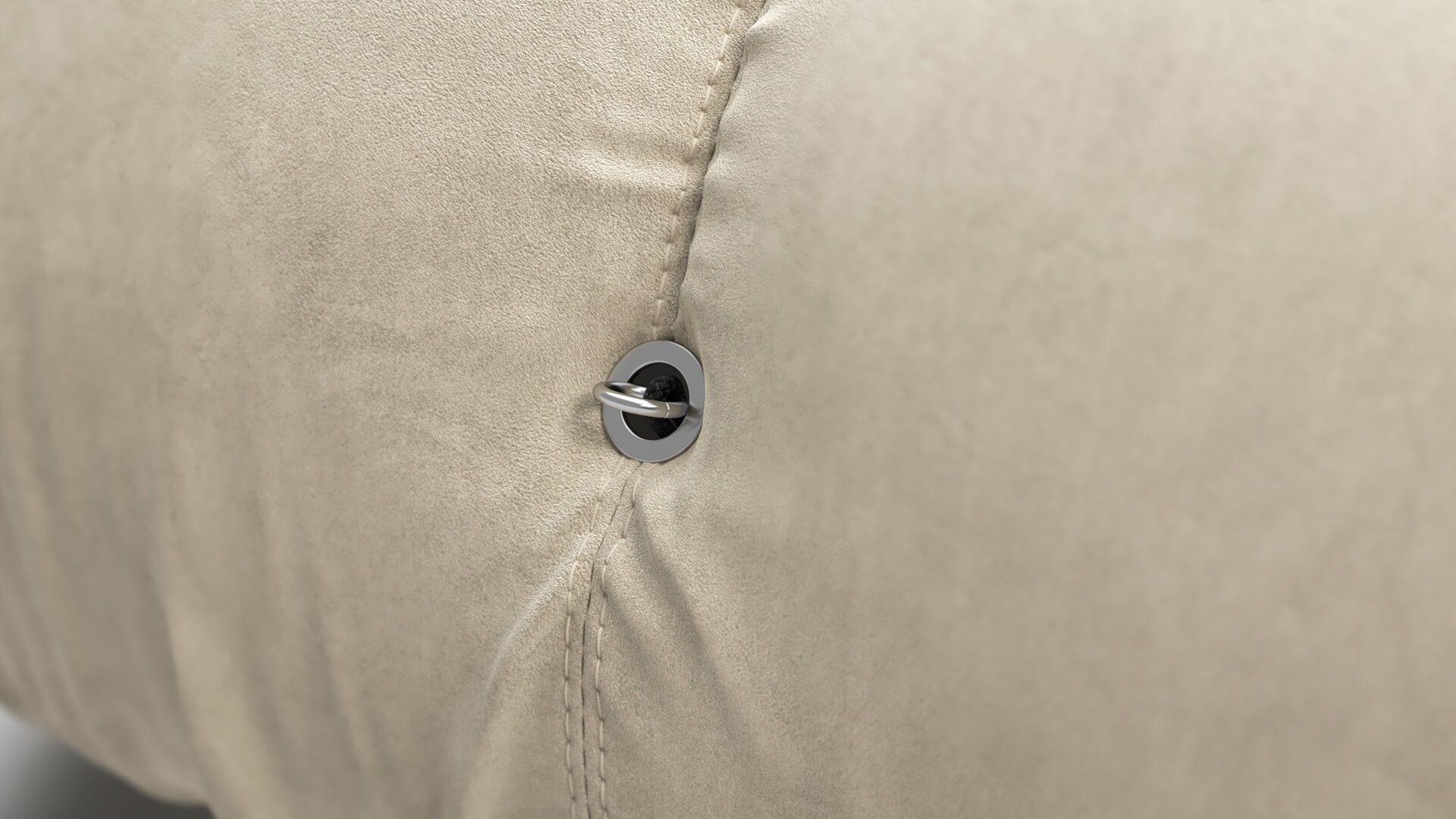 - Modular Instructions: Each section of the Mario Bellini Sofa is modular and is attached with string ties and carabiners. To assemble or rearrange your sofa, simply unclip the carabiners from one ring and attach to a corresponding ring on the module you wish to connect to.