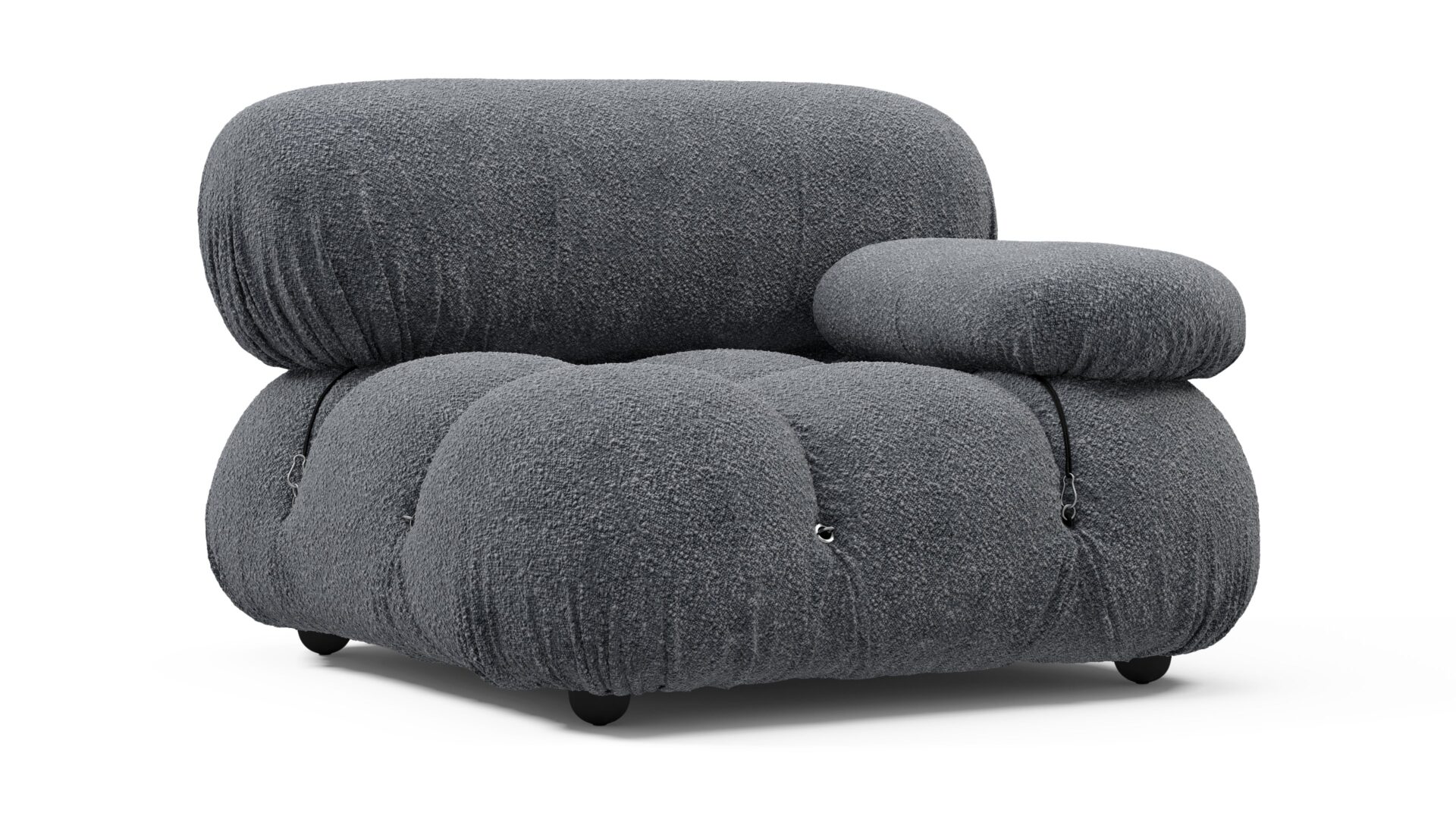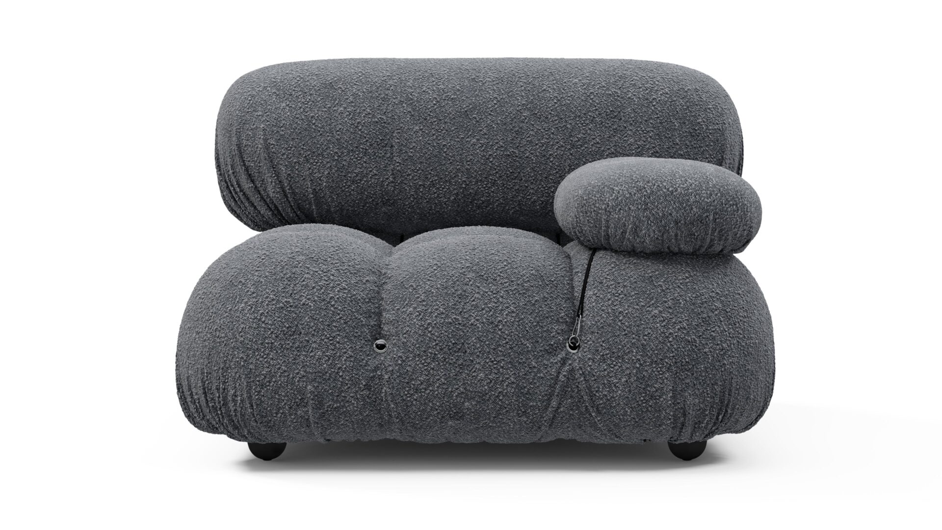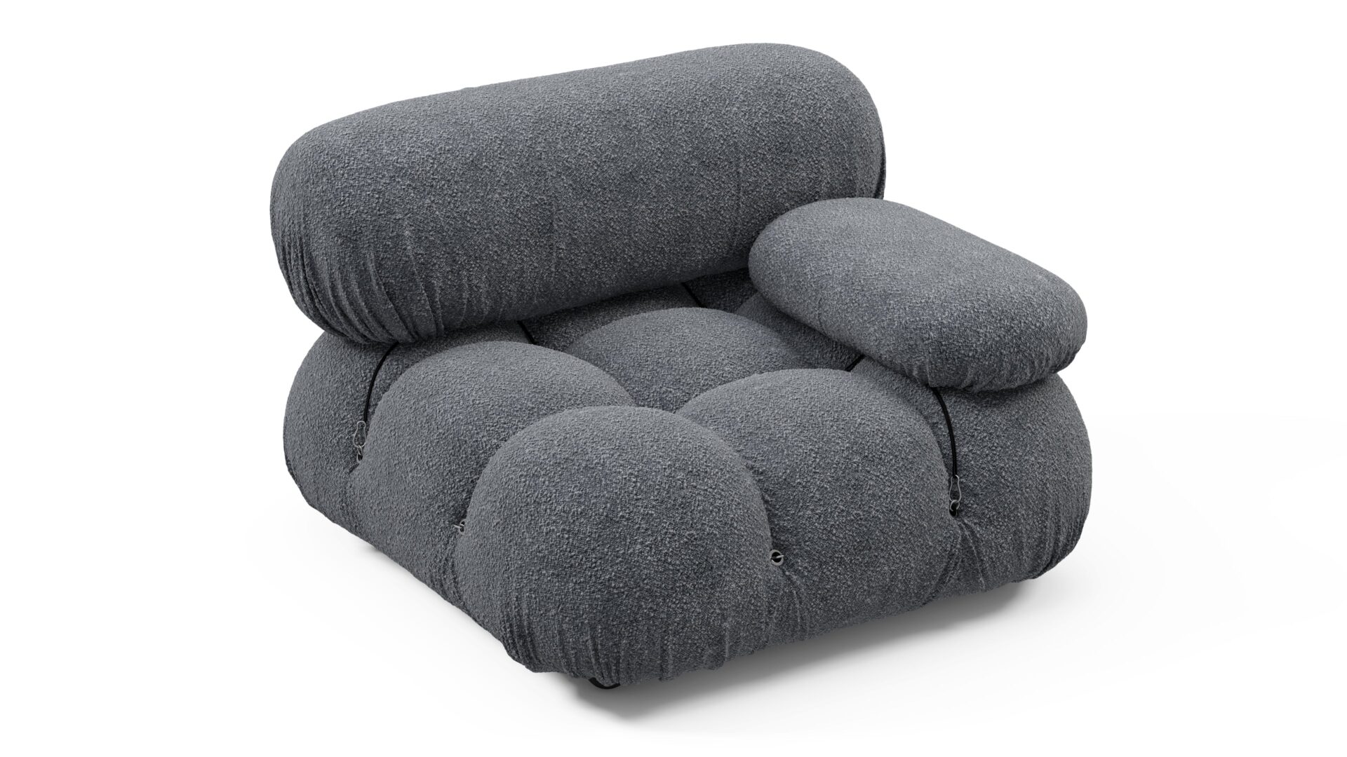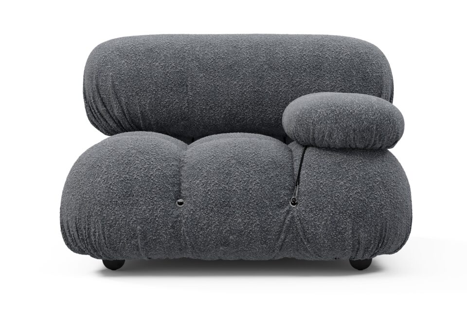 Step back into the chic 1970s with the Bellini sectional sofa, exuding groovy vibes and carefree living. Liberating and modular, it offers customizable designs without the hassle of a full makeover. Embraced by modern furniture lovers, the Bellini, upholstered in Gray Boucle, showcases tie rods for easy reconfiguration, a sturdy wooden frame, and plush foam for a luxurious lounging experience. Made to fit any room and any preference, this versatile piece emanates style and comfort effortlessly.