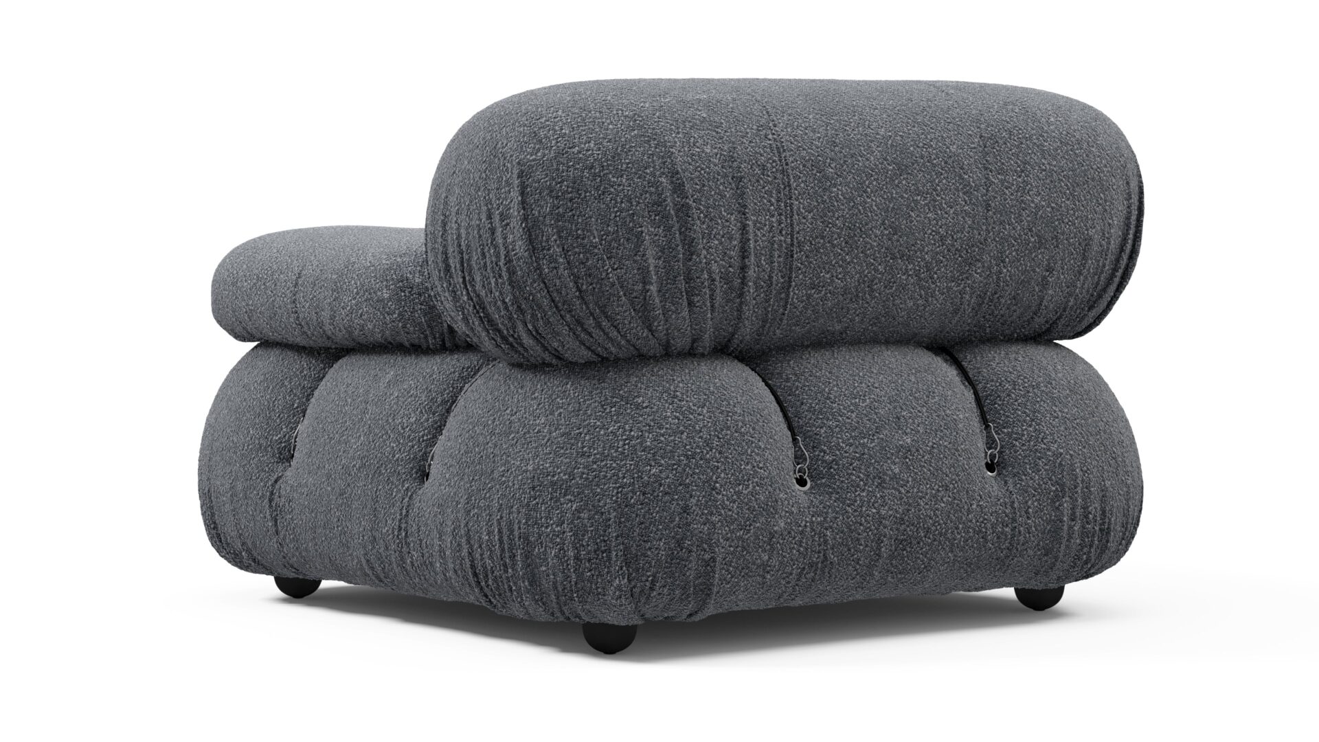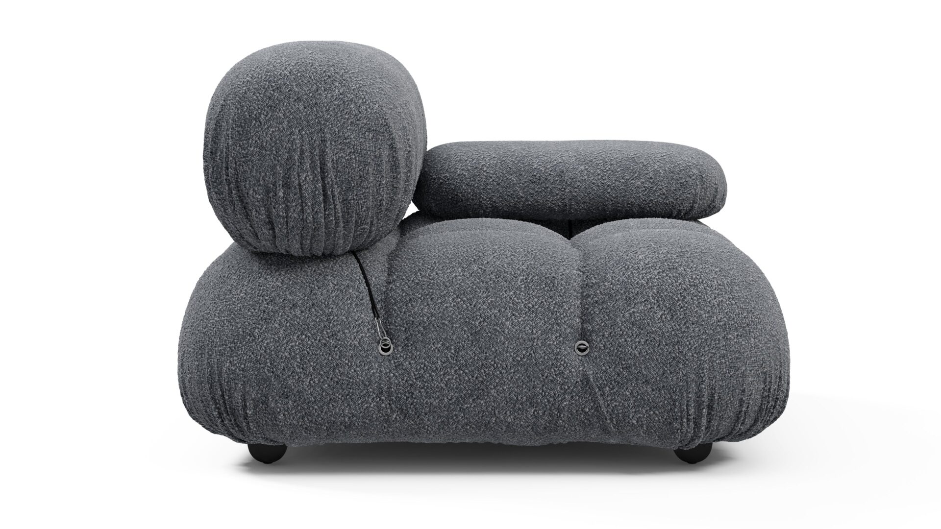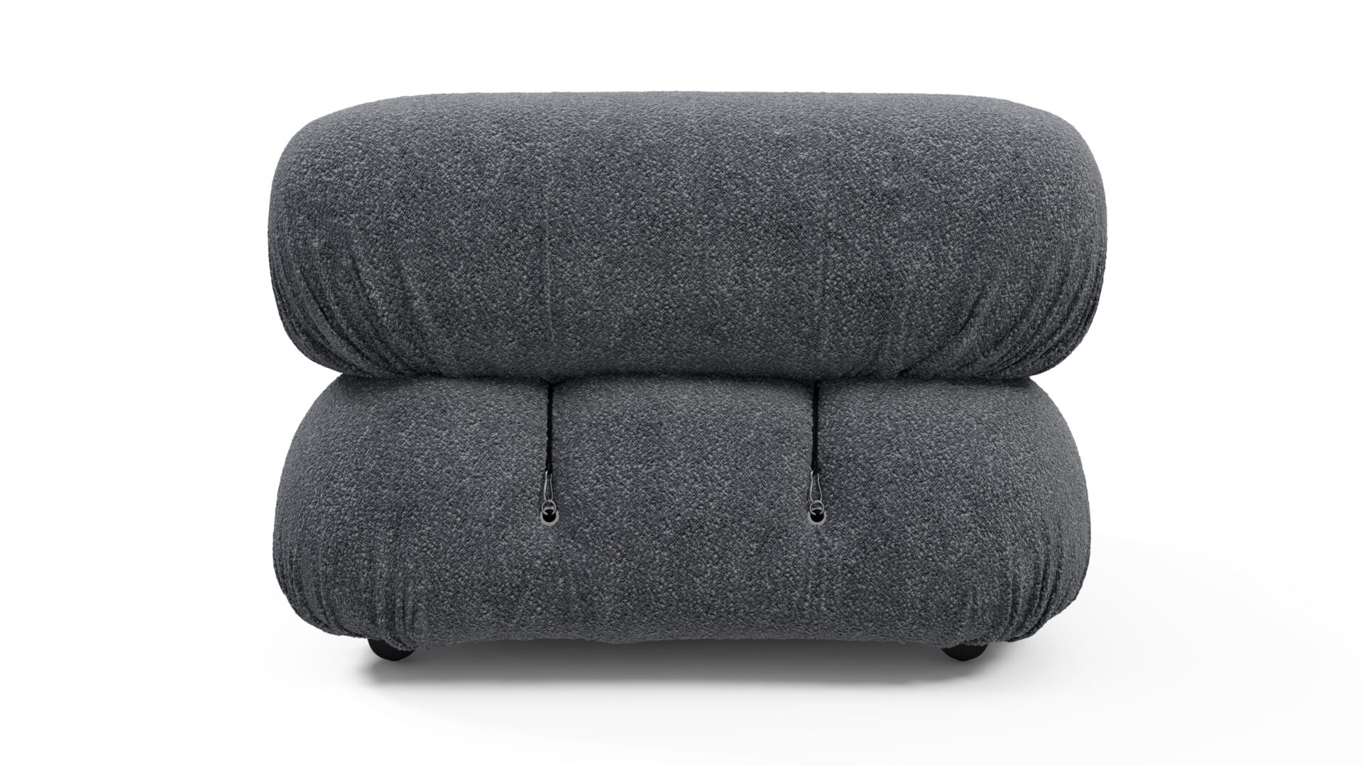 - Modular Instructions: Each section of the Mario Bellini Sofa is modular and is attached with string ties and carabiners. To assemble or rearrange your sofa, simply unclip the carabiners from one ring and attach to a corresponding ring on the module you wish to connect to.