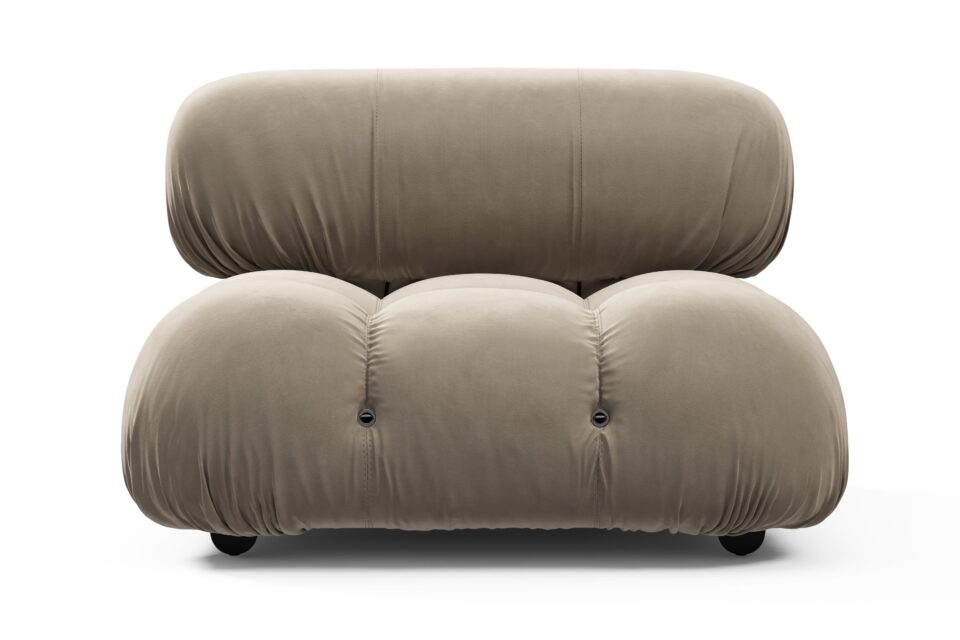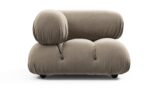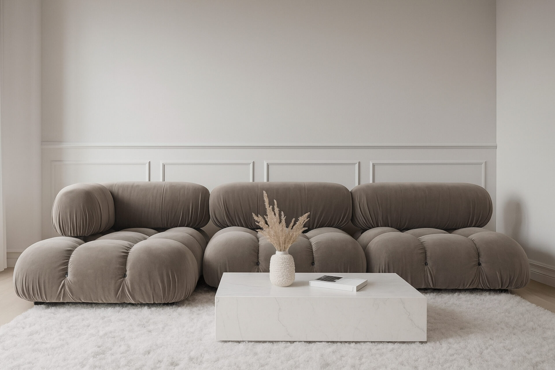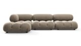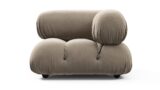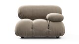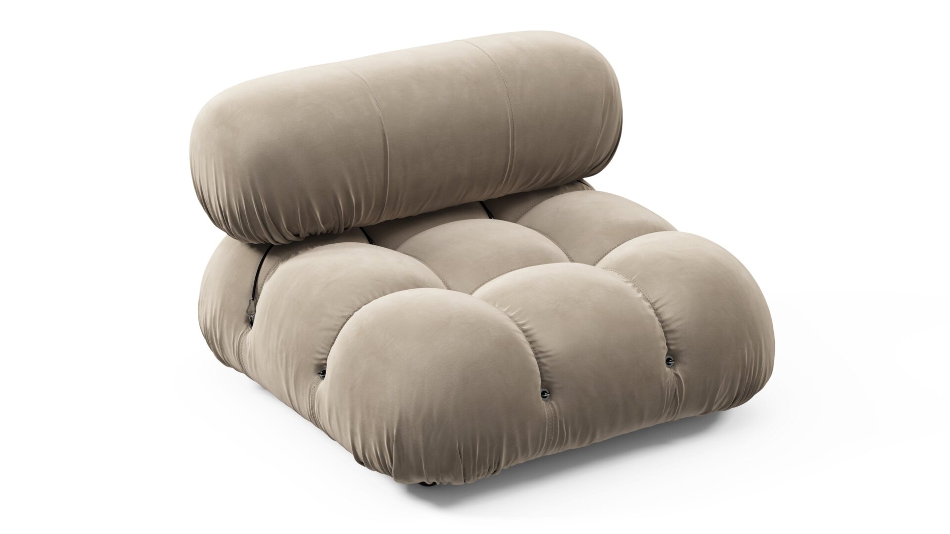 Step back in time to the stylish 1970s with our Bellini sectional sofa, embodying retro vibes while defying traditional bulkiness. Designed for liberation, the modular Bellini offers customization options to suit your room layout and mood effortlessly. The newly beloved Bellini features tie rods and rings for easy rearrangement to match your evolving style preferences. Crafted with a sturdy wooden frame and plush cold-pressed foam enveloped in soft greige velvet, the low-profile Bellini brings relaxed luxury to any setting. Each inviting cushion invites you to unwind and elevate your space with versatile sectional design, promising unmatched style and comfort for a lavish seating experience.