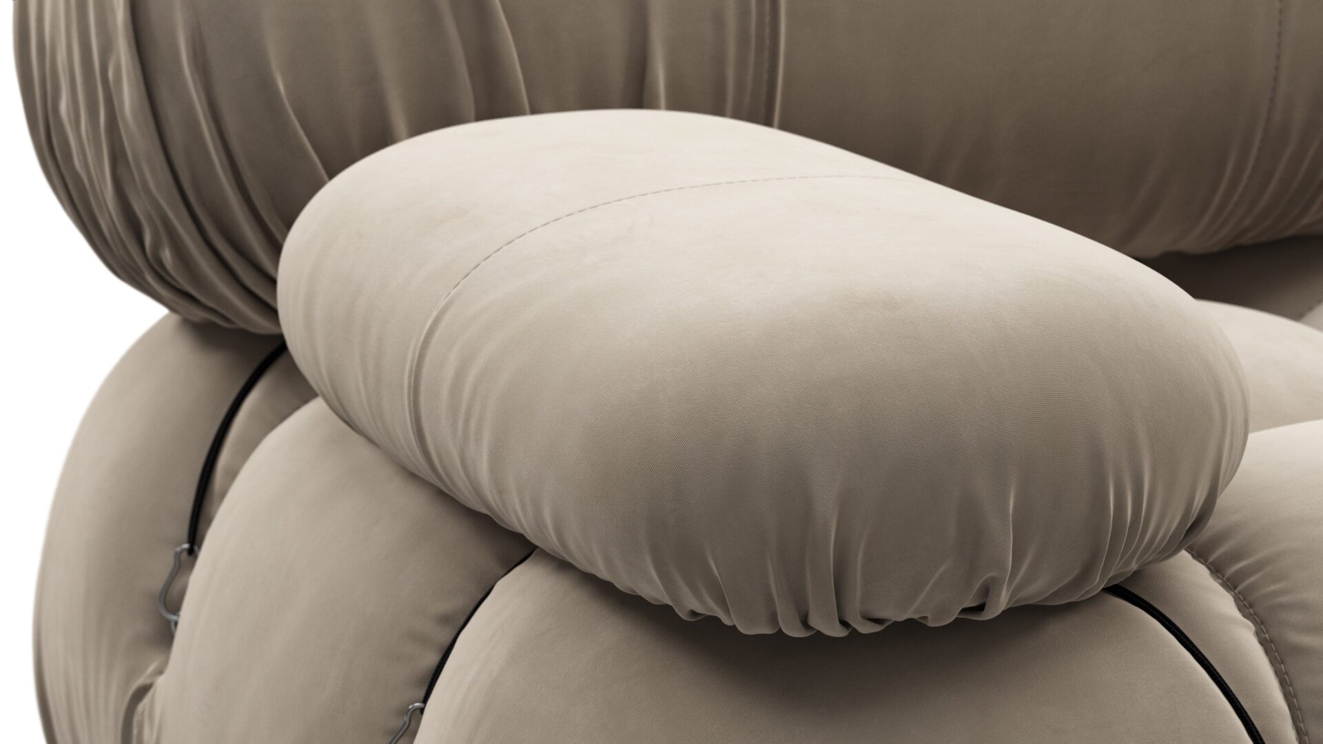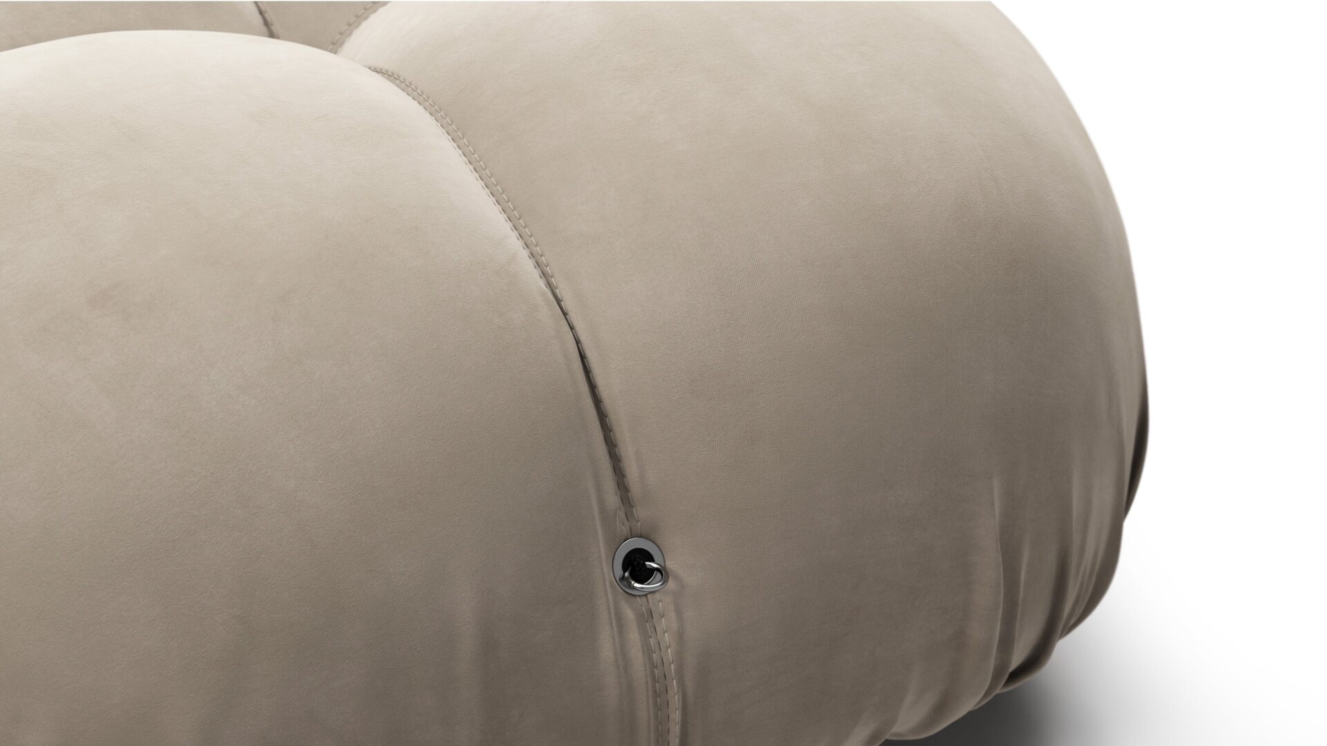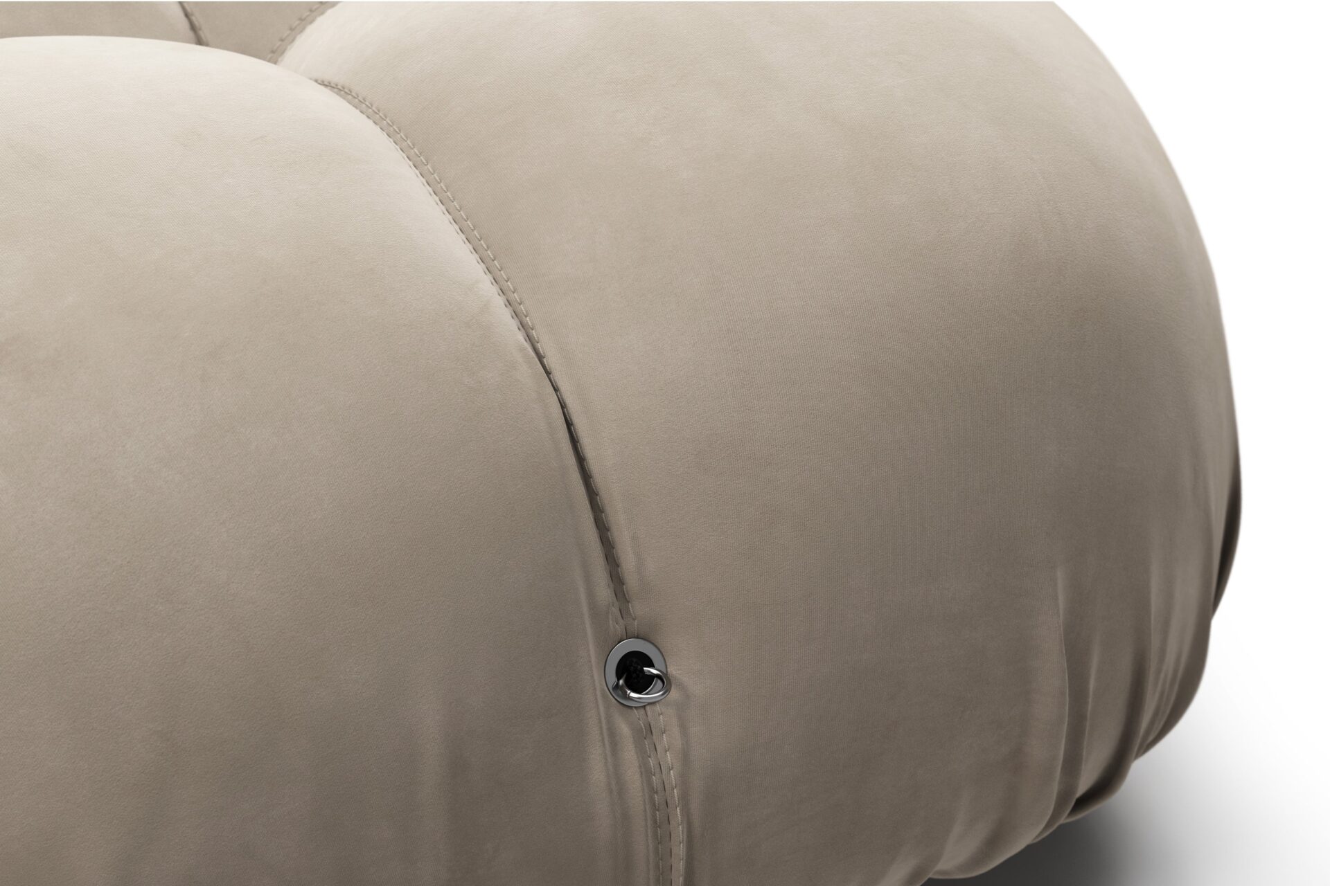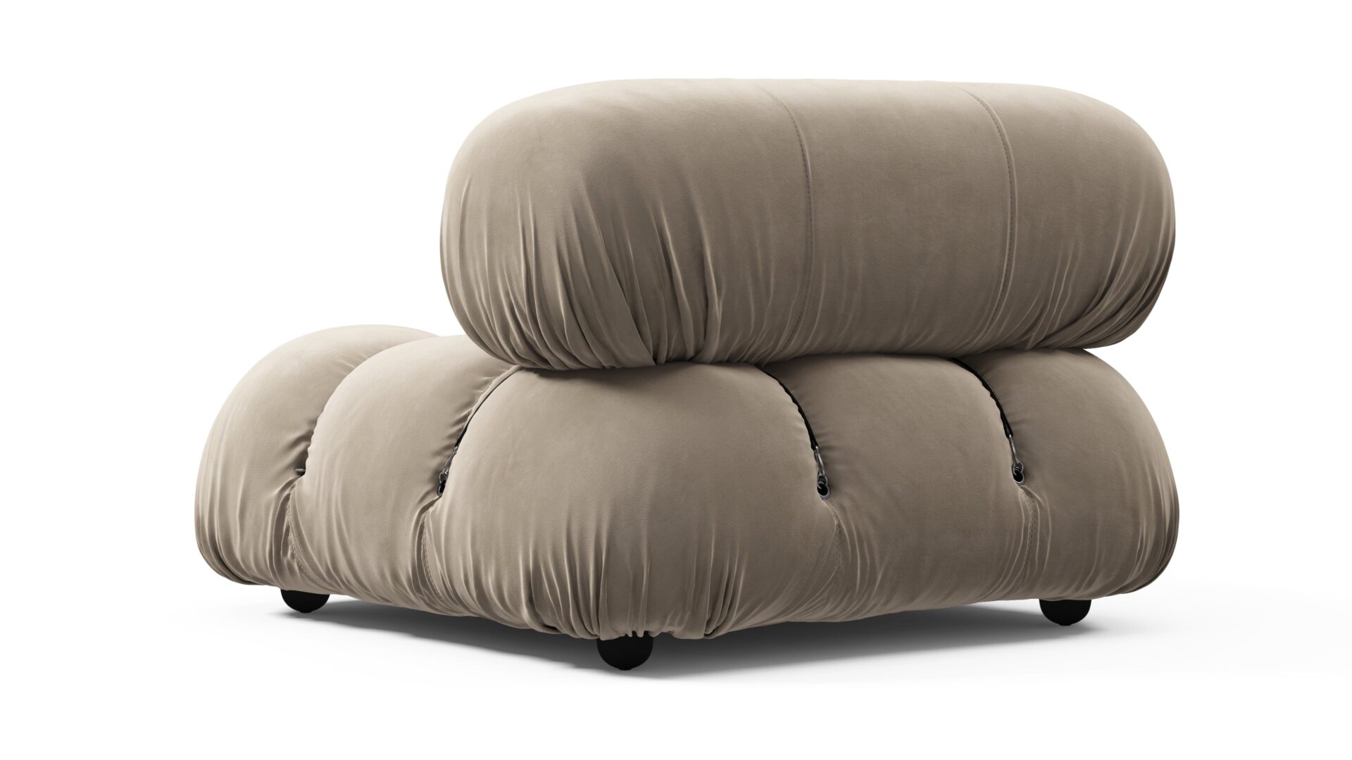Step back in time to the 1970s with the Bellini sectional sofa, a nod to an era of groovy vibes and carefree living with its liberating essence. This modern classic, upholstered in Greige Velvet, offers customizable modular design with tie rods and rings, echoing versatility and adaptability for a personalized touch. Crafted with a sturdy wooden frame and plush cold-pressed foam, the low-profile silhouette exudes relaxed luxury. Each generously cushioned seat invites you to unwind in style, ensuring an opulent and cozy seating experience. The Bellini sectional sofa, a beloved choice among furniture enthusiasts, effortlessly blends into any setting with its varied configurations, embodying a timeless favorite that caters to diverse preferences.