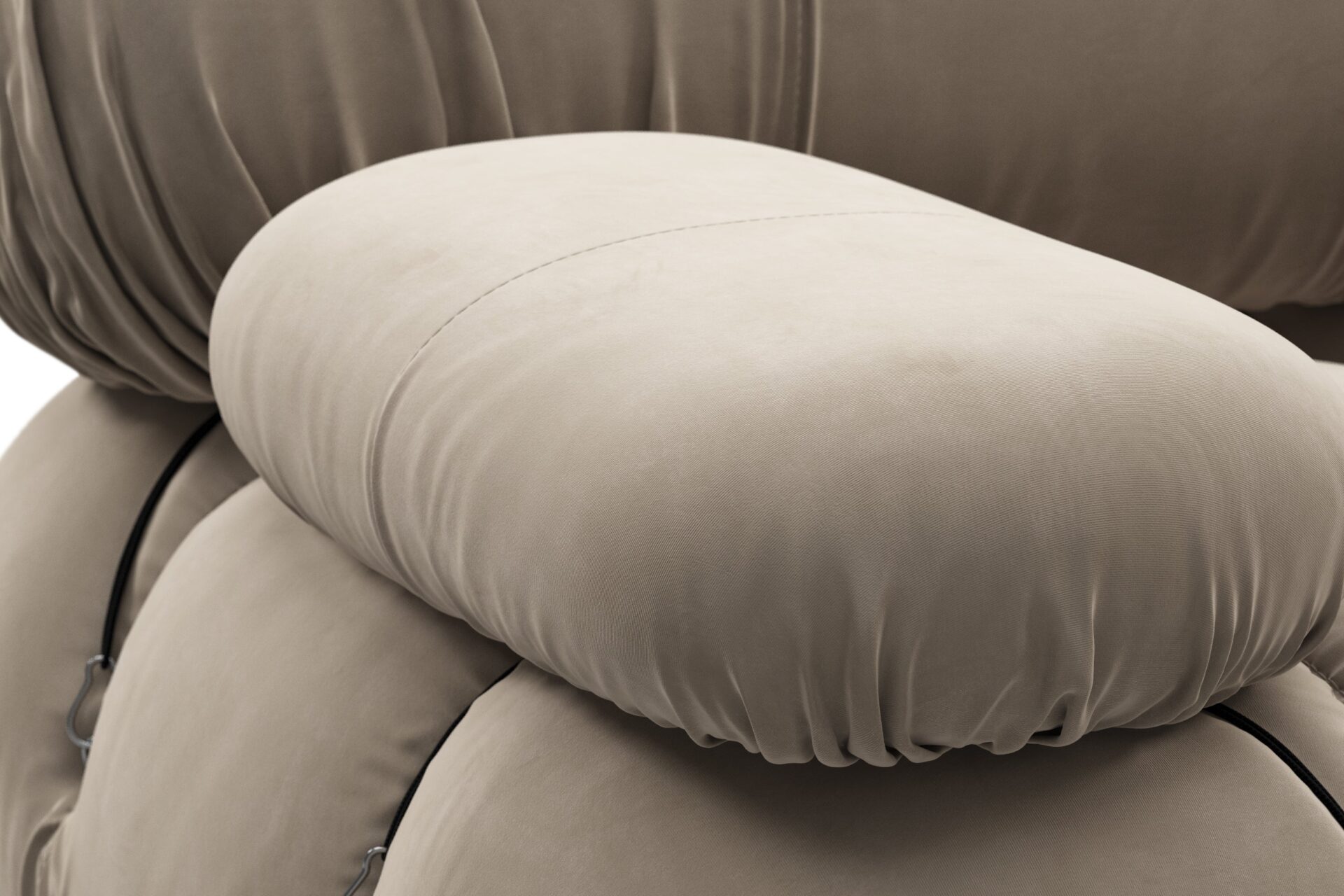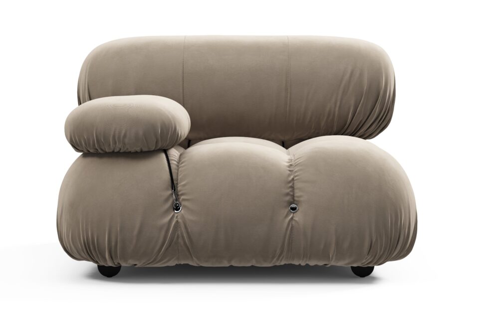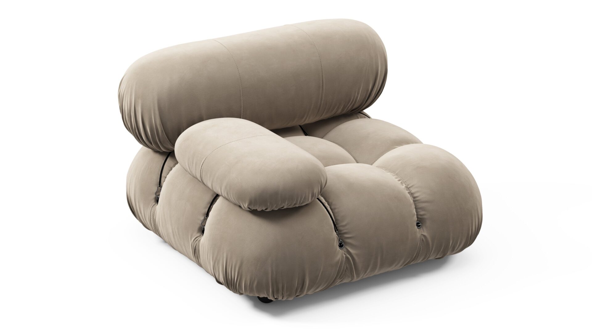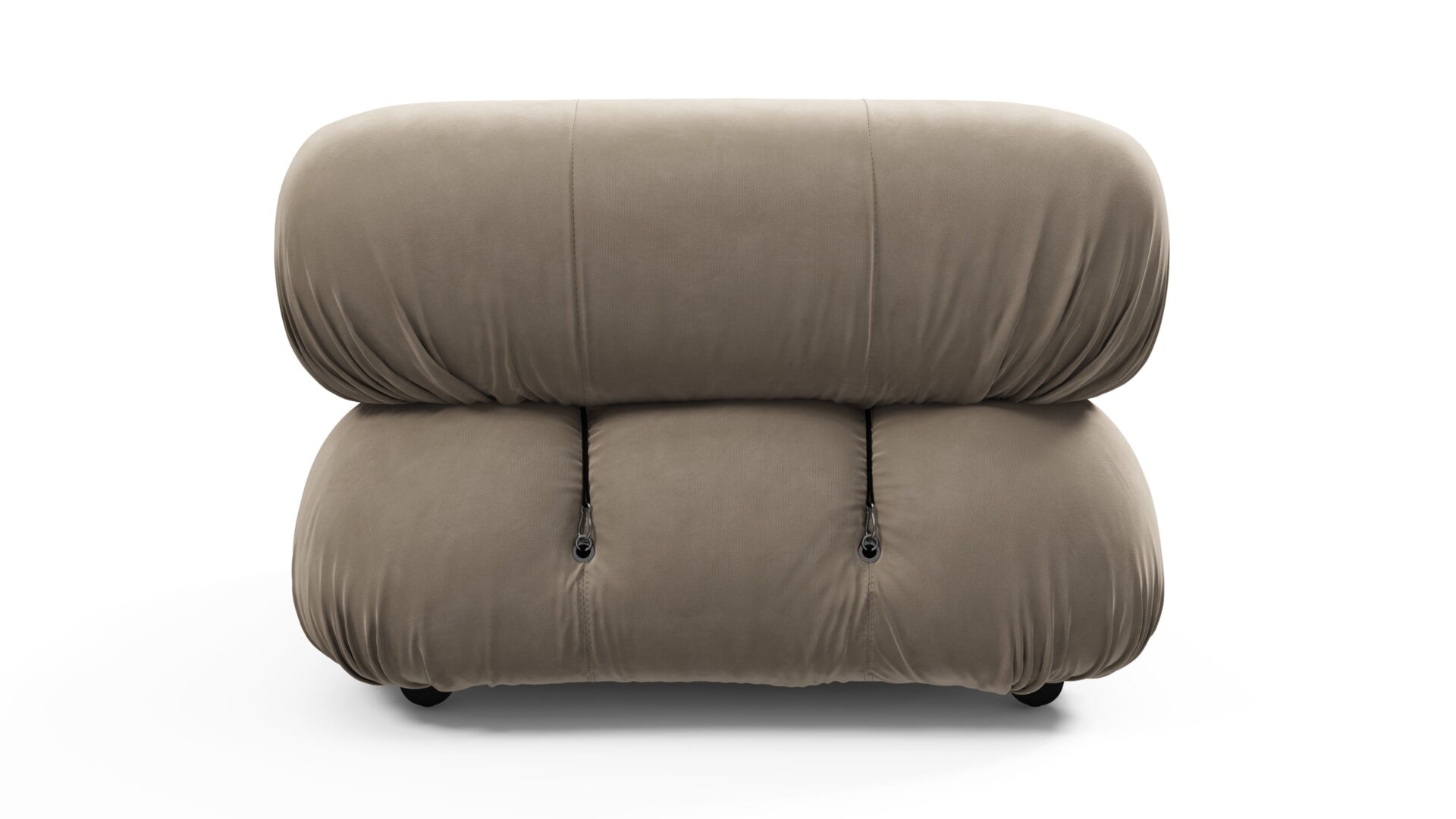 Step back in time to the 1970s with the Bellini sectional sofa, a nod to an era of groovy vibes and carefree living with its liberating essence. This modern classic, upholstered in Greige Velvet, offers customizable modular design with tie rods and rings, echoing versatility and adaptability for a personalized touch. Crafted with a sturdy wooden frame and plush cold-pressed foam, the low-profile silhouette exudes relaxed luxury. Each generously cushioned seat invites you to unwind in style, ensuring an opulent and cozy seating experience. The Bellini sectional sofa, a beloved choice among furniture enthusiasts, effortlessly blends into any setting with its varied configurations, embodying a timeless favorite that caters to diverse preferences.