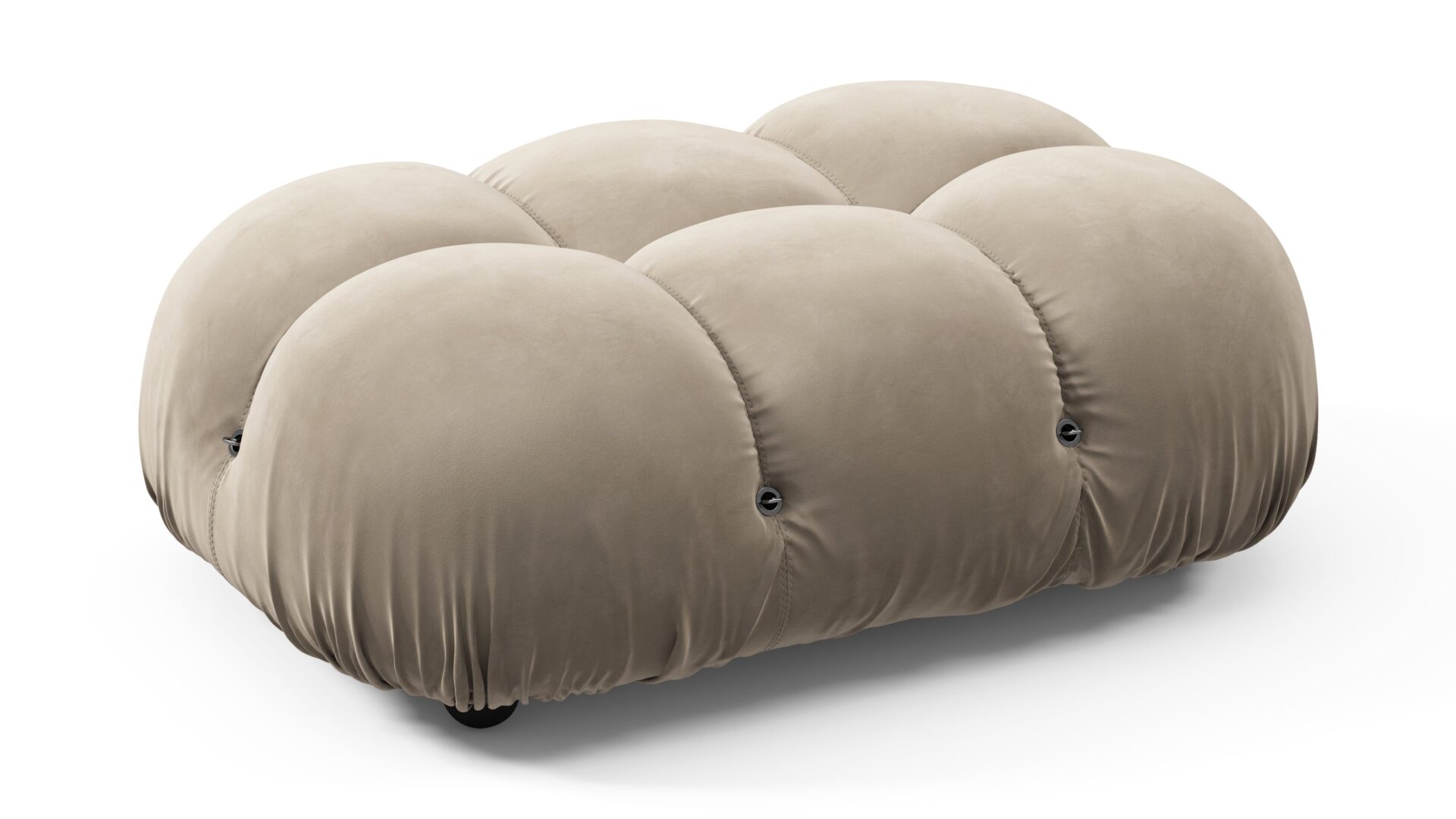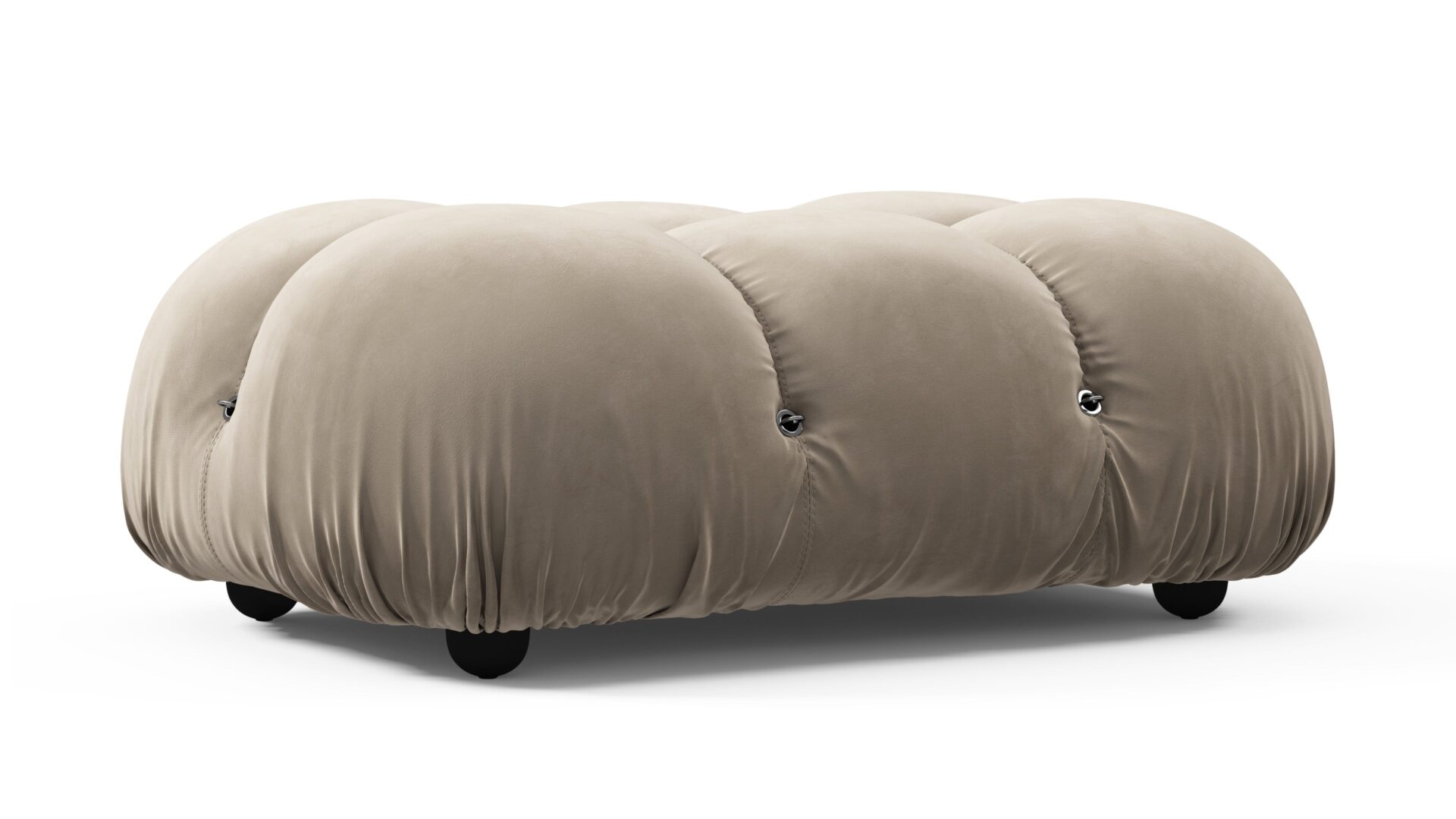 Step into the retro charm of the 1970s with the Bellini sectional sofa, embracing the groovy vibes and carefree spirit of the era. Revamp your living space with its liberating modular design, offering endless configurations to tailor to your layout, style, and mood effortlessly. Crafted with a sturdy wooden frame and plush cold-pressed foam wrapped in soft Greige Velvet fabric, the Bellini exudes relaxed luxury and timeless style. Discover the freedom to rearrange its tie rods and rings at will, adapting to your evolving preferences with ease. Entice yourself with the inviting curves and generous proportions, ensuring a lavish and cozy seating experience for ultimate relaxation. Enjoy the Bellini's versatile sectional layout, offering a blend of comfort and social interaction with limitless configurations to suit your space requirements. Cherish its adaptability to various settings, embodying a timeless favorite that effortlessly complements any aesthetic.