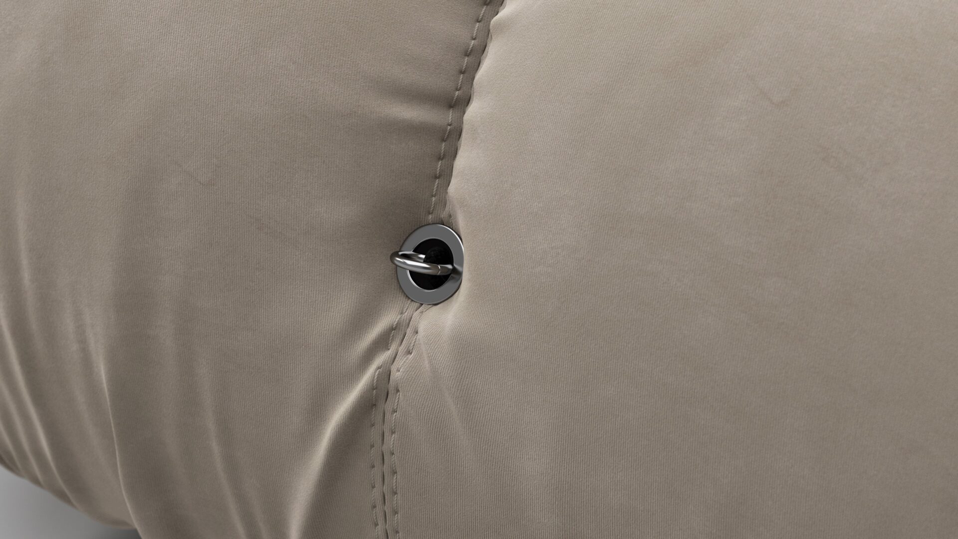 - Modular Instructions: Each section of the Mario Bellini Sofa is modular and is attached with string ties and carabiners. To assemble or rearrange your sofa, simply unclip the carabiners from one ring and attach to a corresponding ring on the module you wish to connect to.