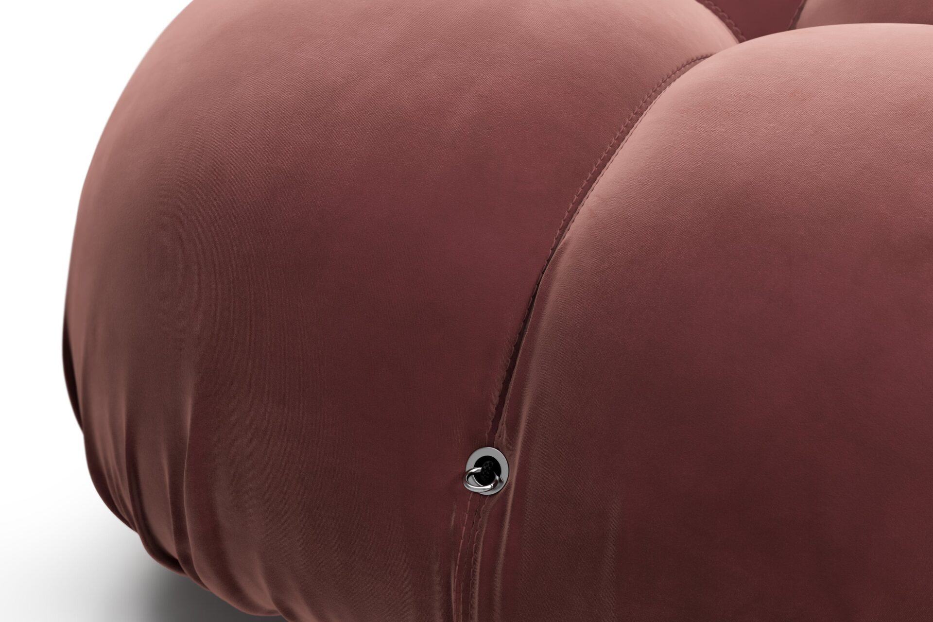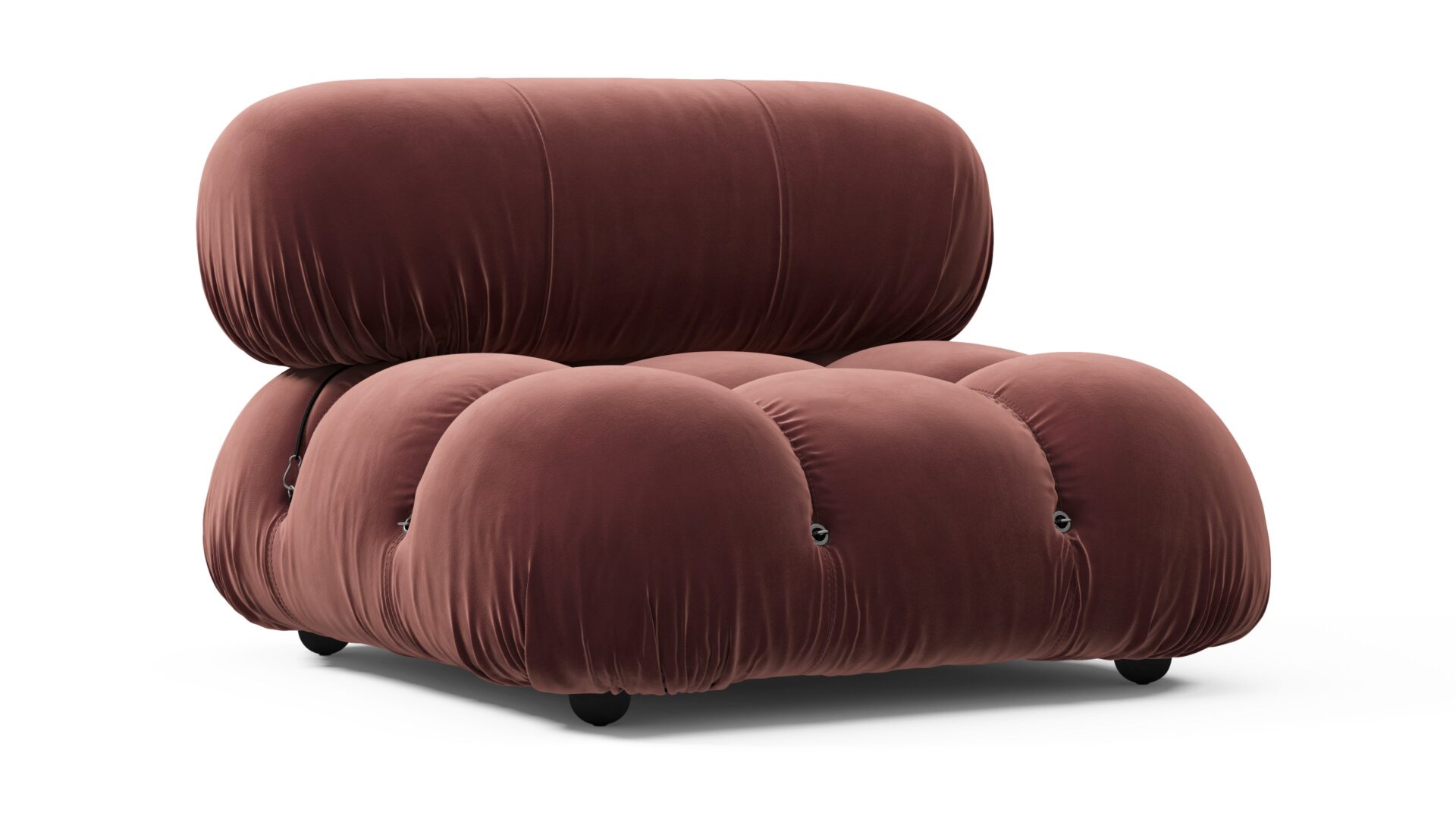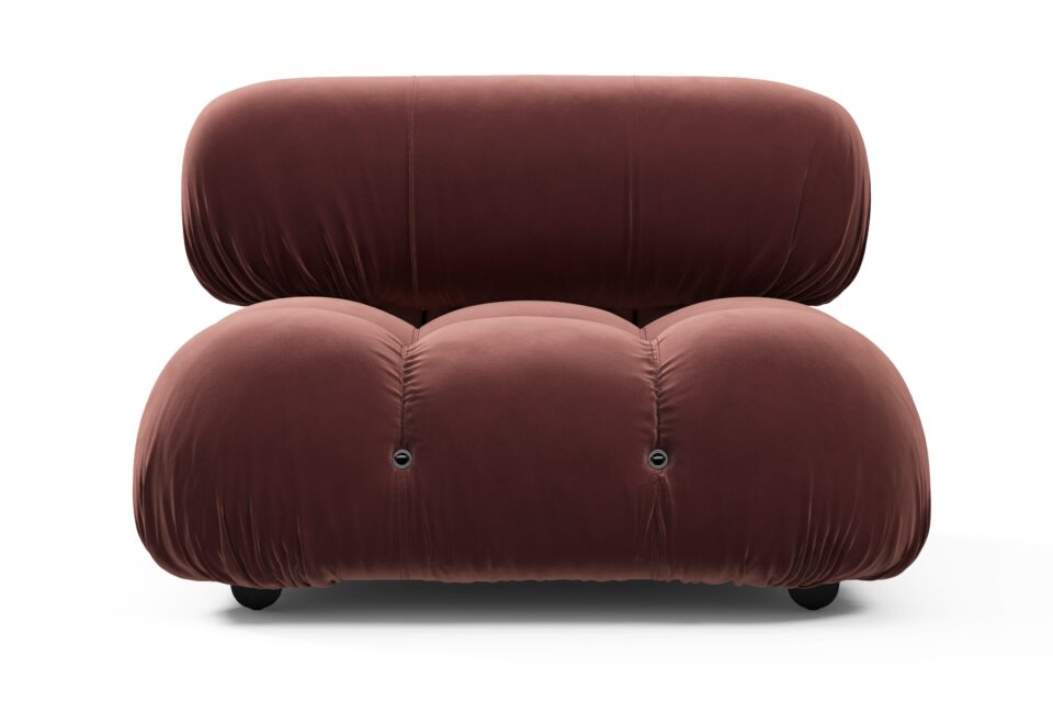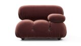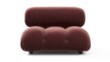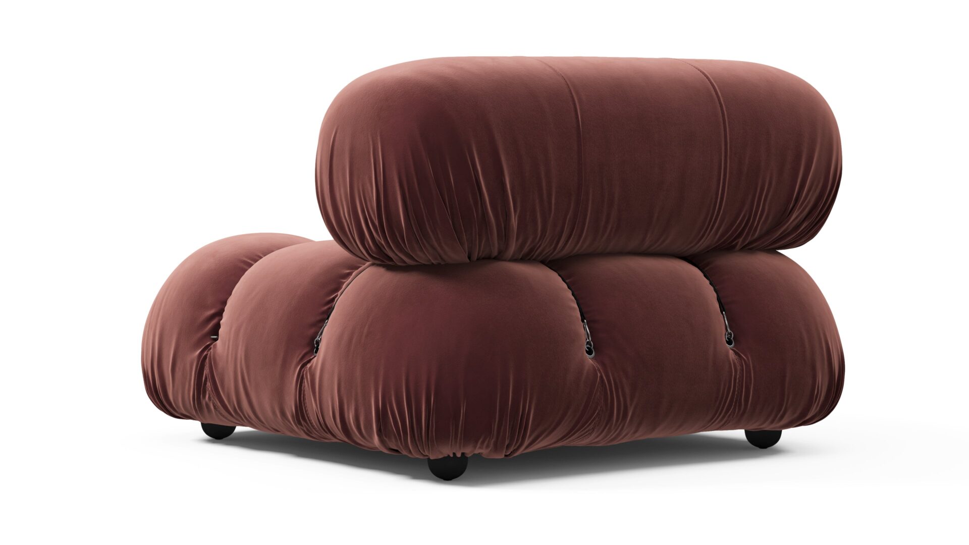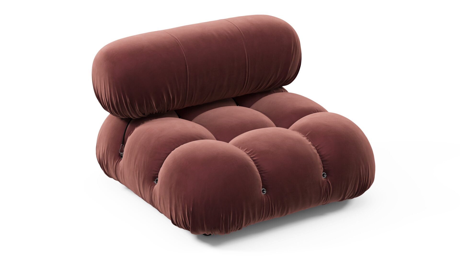 Step back in time to the groovy 1970s with the luxurious Bellini sectional sofa in Maroon Velvet. Embracing liberation and adaptability, this modular sofa offers a personalized touch to your living space. Crafted with a sturdy wooden frame and plush cold-pressed foam enveloped in soft velvet, the low-profile silhouette and inviting cushions invite you to relax in style and comfort. A favorite among furniture enthusiasts, the Bellini's tie rods and rings allow effortless rearrangement to match your evolving preferences, delivering endless configurations for a lavish and cozy seating experience.