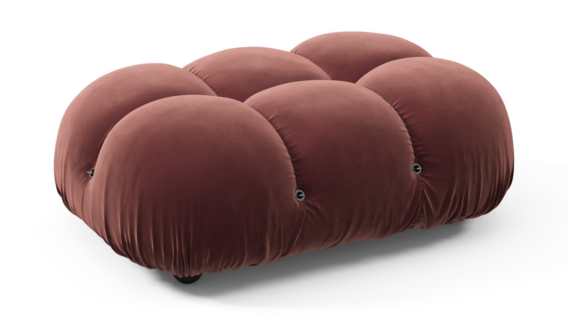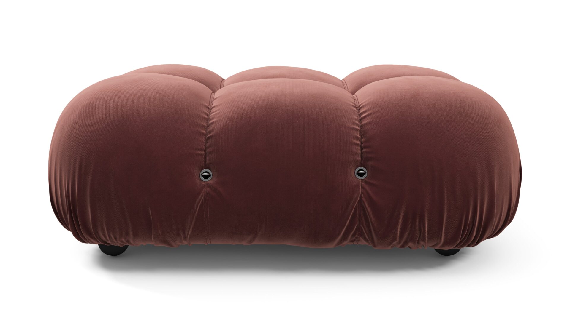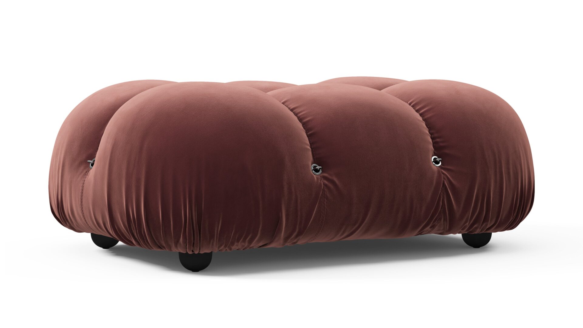 Step back into the funky 70s with the Bellini sectional sofa, exuding retro vibes and free-spirited living. Its modular design offers customizable layouts without a full makeover. Adored by a new wave of furniture lovers, the Bellini features tie rods and rings for easy reconfiguration. Crafted with a sturdy wooden frame, plush cold-pressed foam, and luxurious maroon velvet, this low-profile stunner invites stylish relaxation.