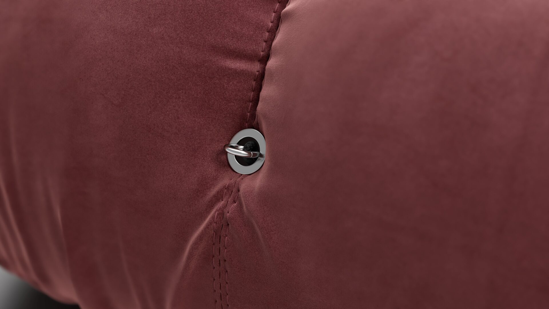 - Modular Instructions: Each section of the Mario Bellini Sofa is modular and is attached with string ties and carabiners. To assemble or rearrange your sofa, simply unclip the carabiners from one ring and attach to a corresponding ring on the module you wish to connect to.