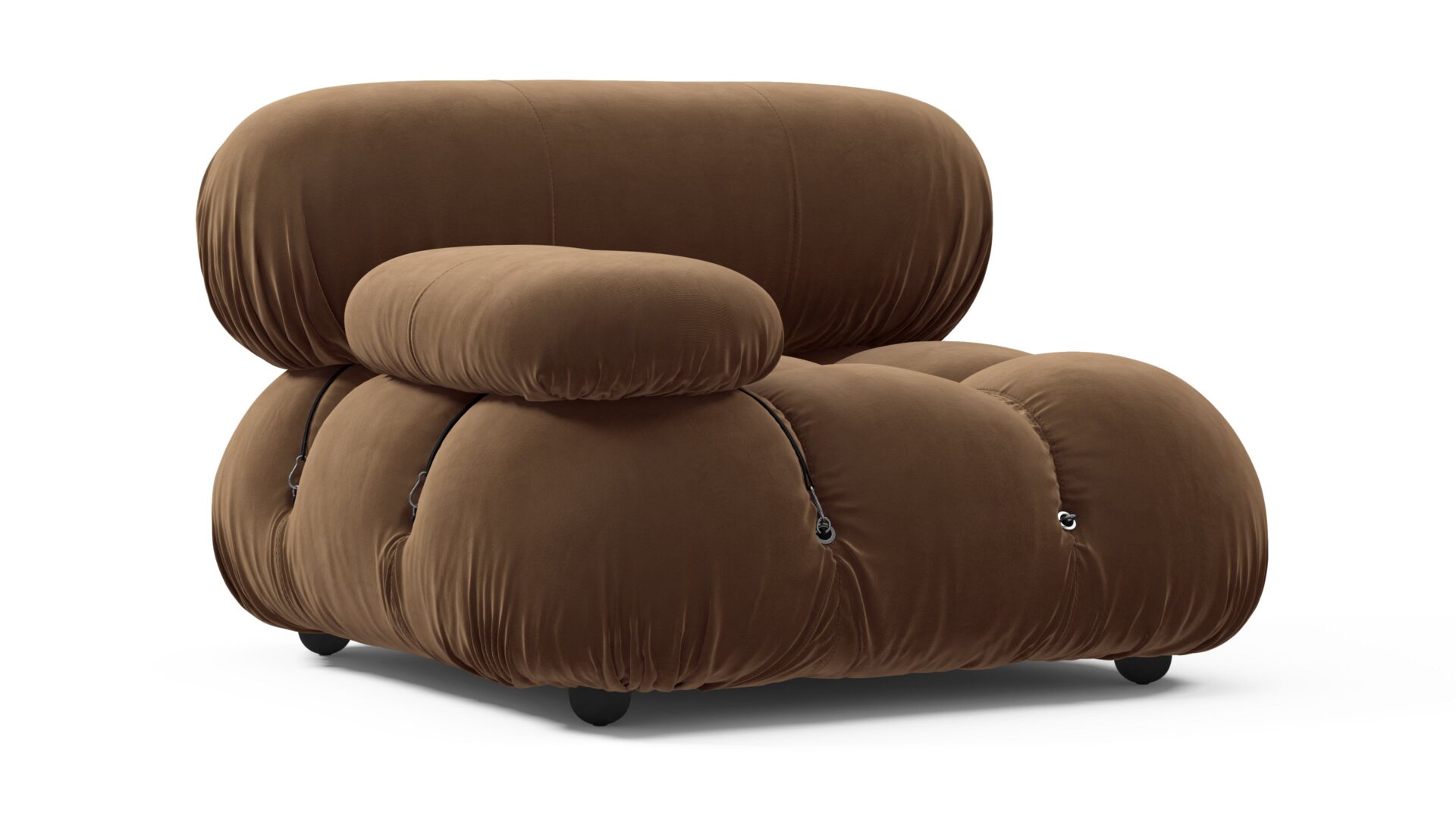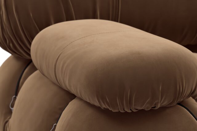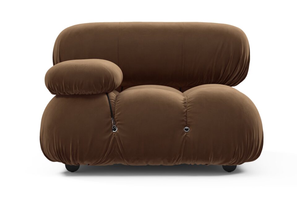 Step back to the 1970s with the Bellini sectional sofa, a nod to a time of groovy vibes and carefree living. Breaking the mold, the Bellini brings a sense of freedom to your living area. Crafted with a robust wooden frame and plush cold-pressed foam enveloped in soft Mocha Velvet, this versatile sofa's modular design lets you effortlessly tailor it to your room's layout, style, and mood for a personalized touch of relaxed luxury.