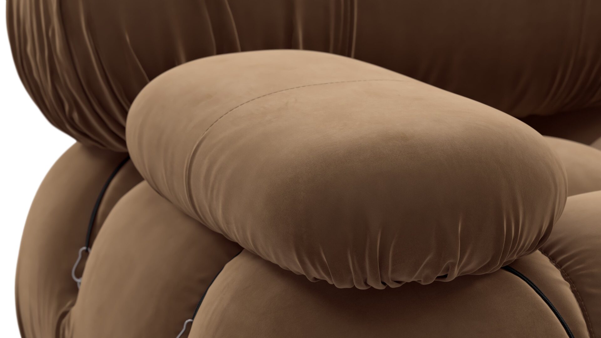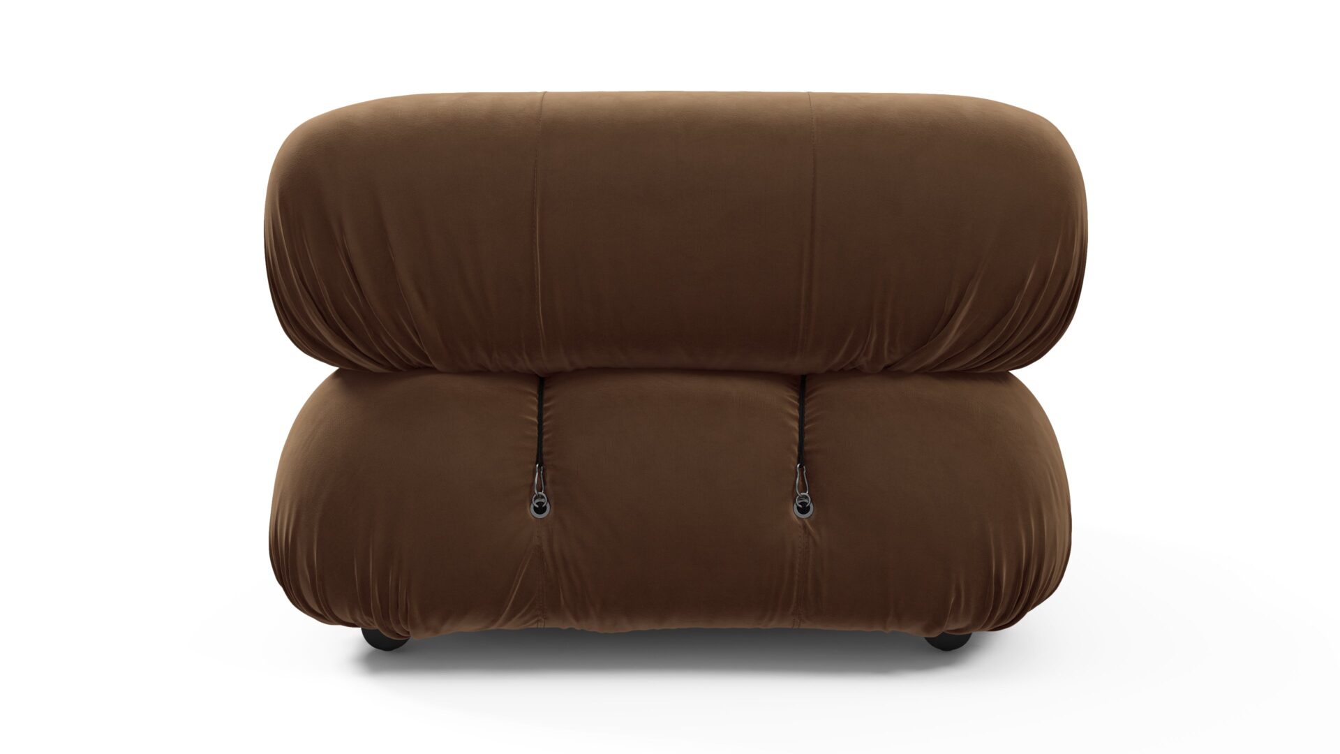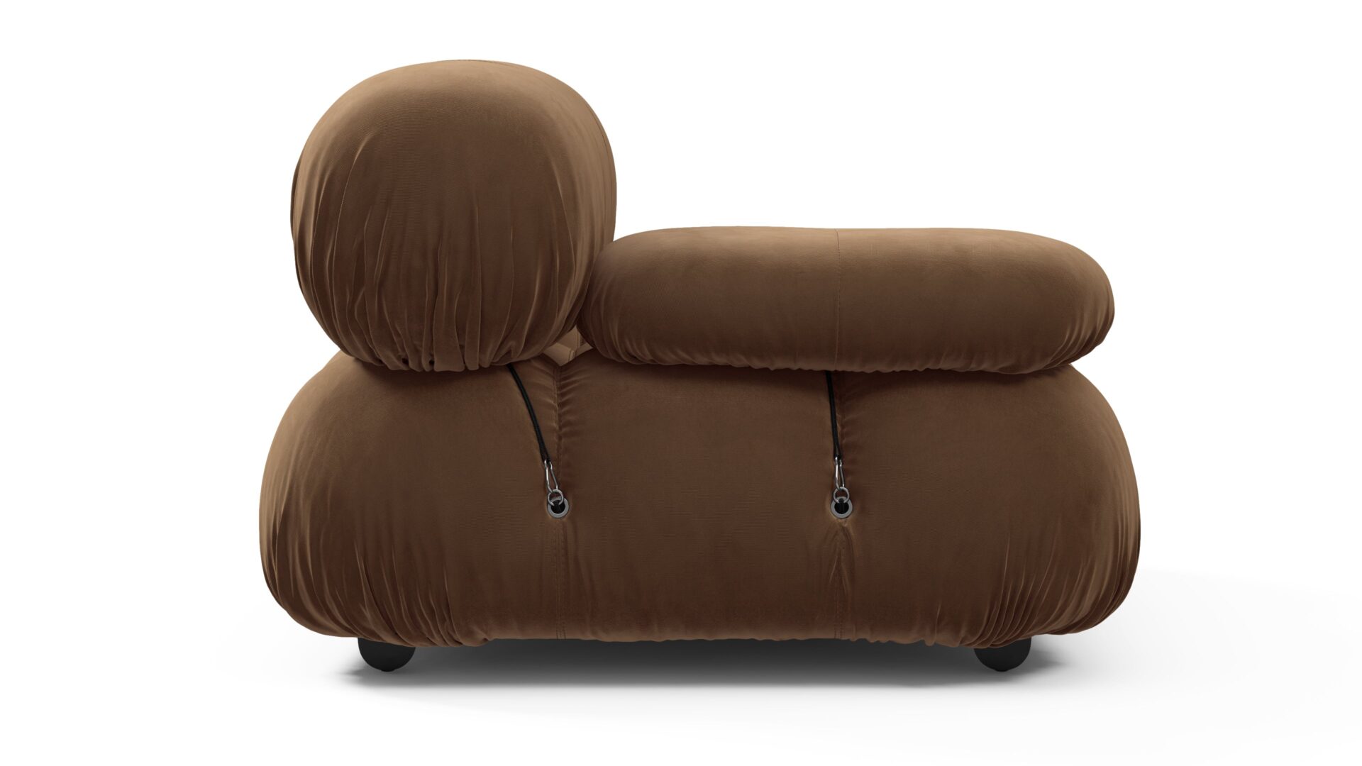 - Modular Instructions: Each section of the Mario Bellini Sofa is modular and is attached with string ties and carabiners. To assemble or rearrange your sofa, simply unclip the carabiners from one ring and attach to a corresponding ring on the module you wish to connect to.