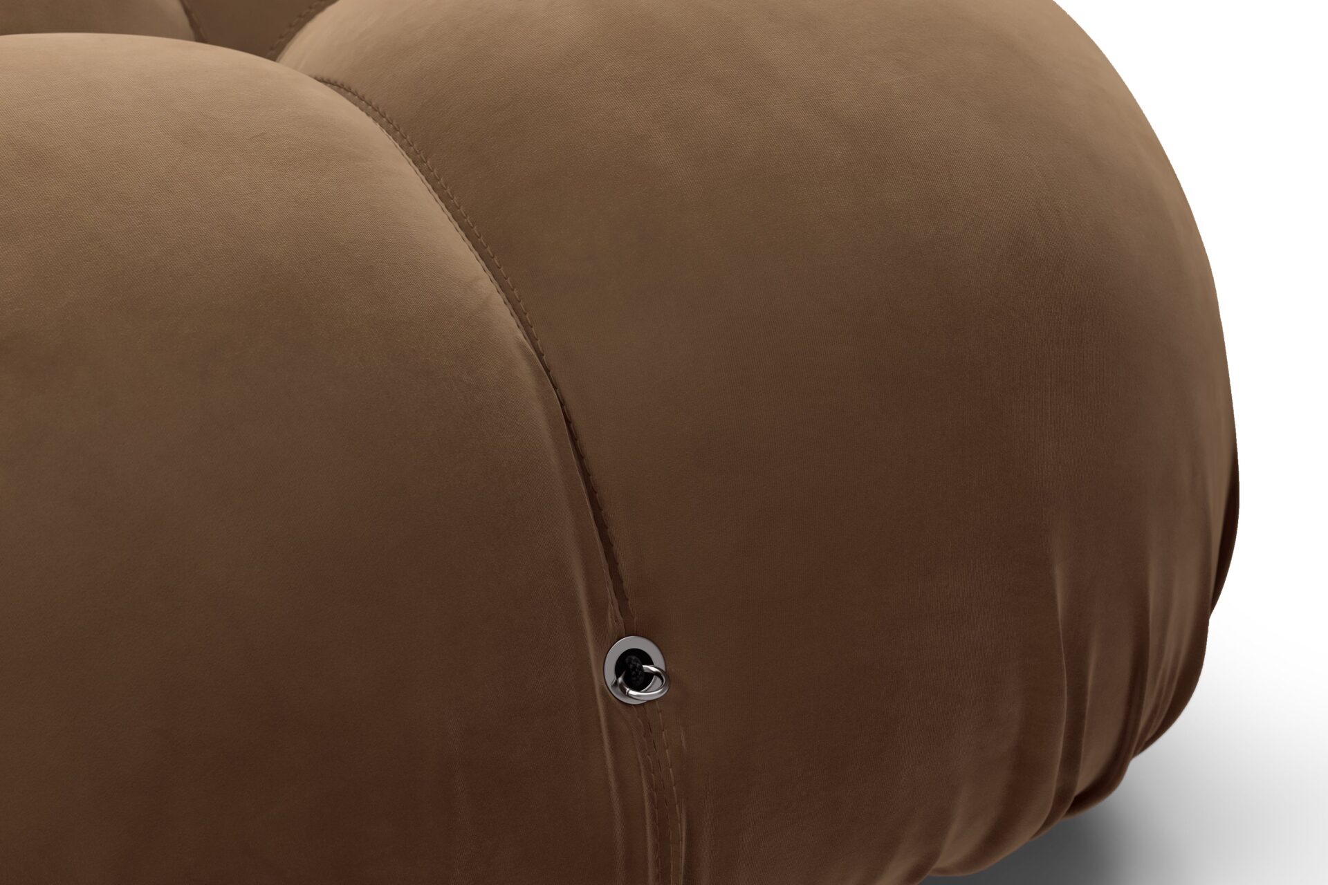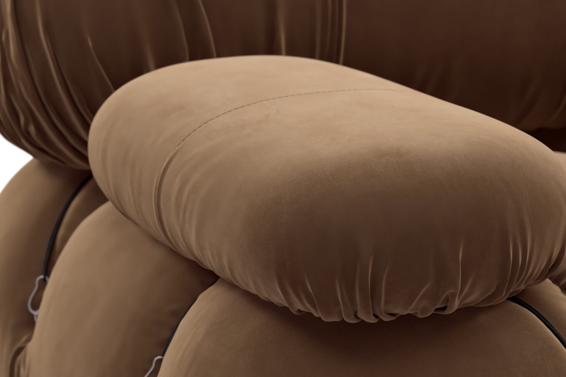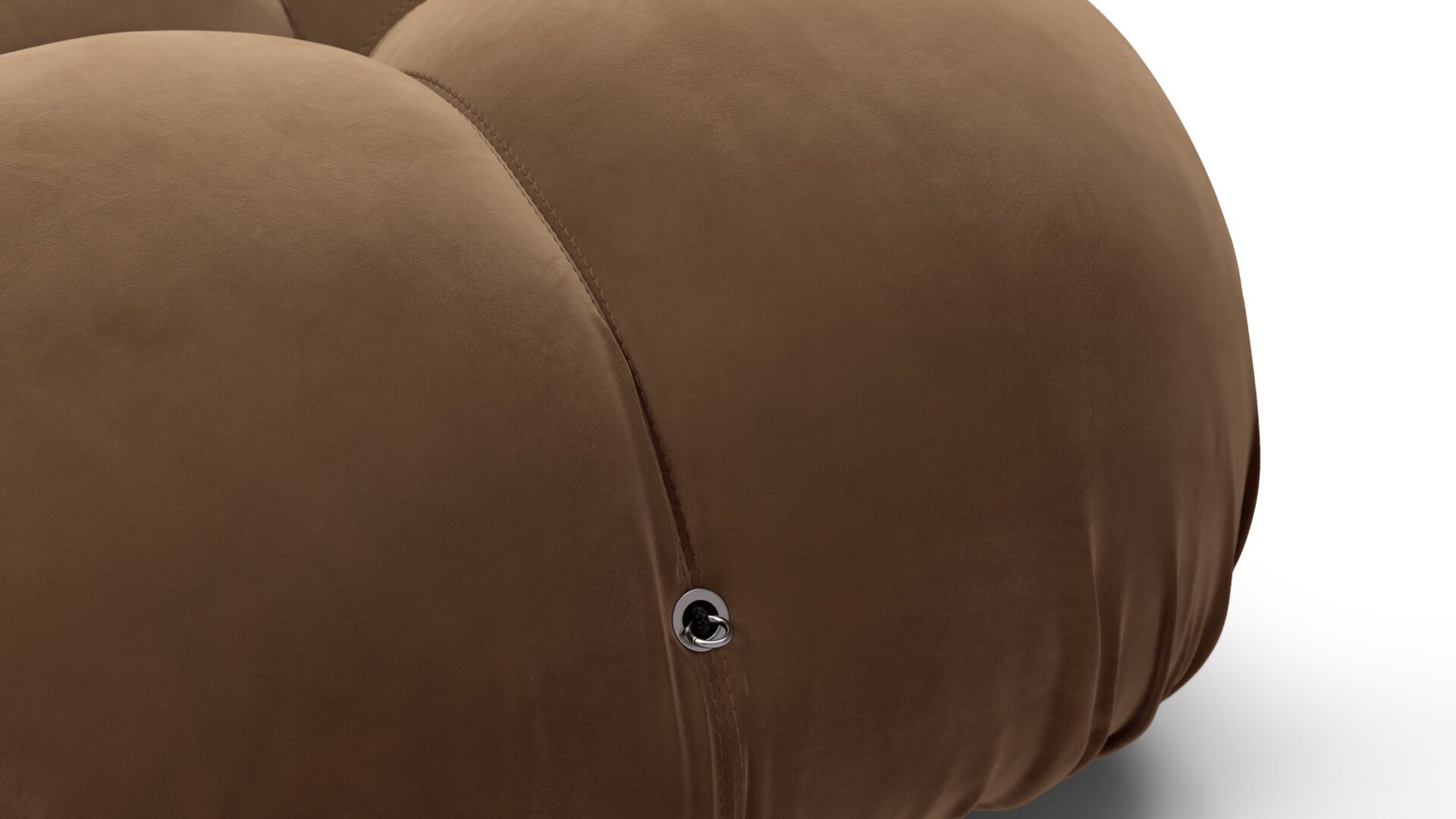 - Modular Instructions: Each section of the Mario Bellini Sofa is modular and is attached with string ties and carabiners. To assemble or rearrange your sofa, simply unclip the carabiners from one ring and attach to a corresponding ring on the module you wish to connect to.