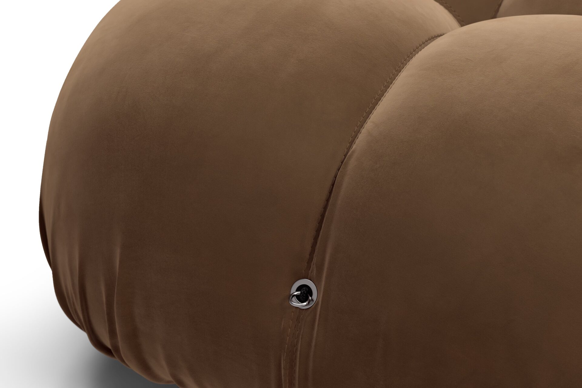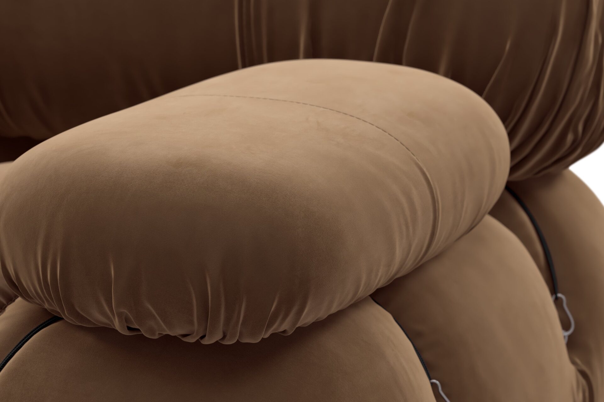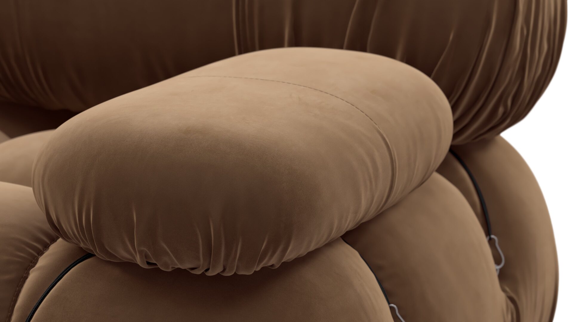 - Modular Instructions: Each section of the Mario Bellini Sofa is modular and is attached with string ties and carabiners. To assemble or rearrange your sofa, simply unclip the carabiners from one ring and attach to a corresponding ring on the module you wish to connect to.