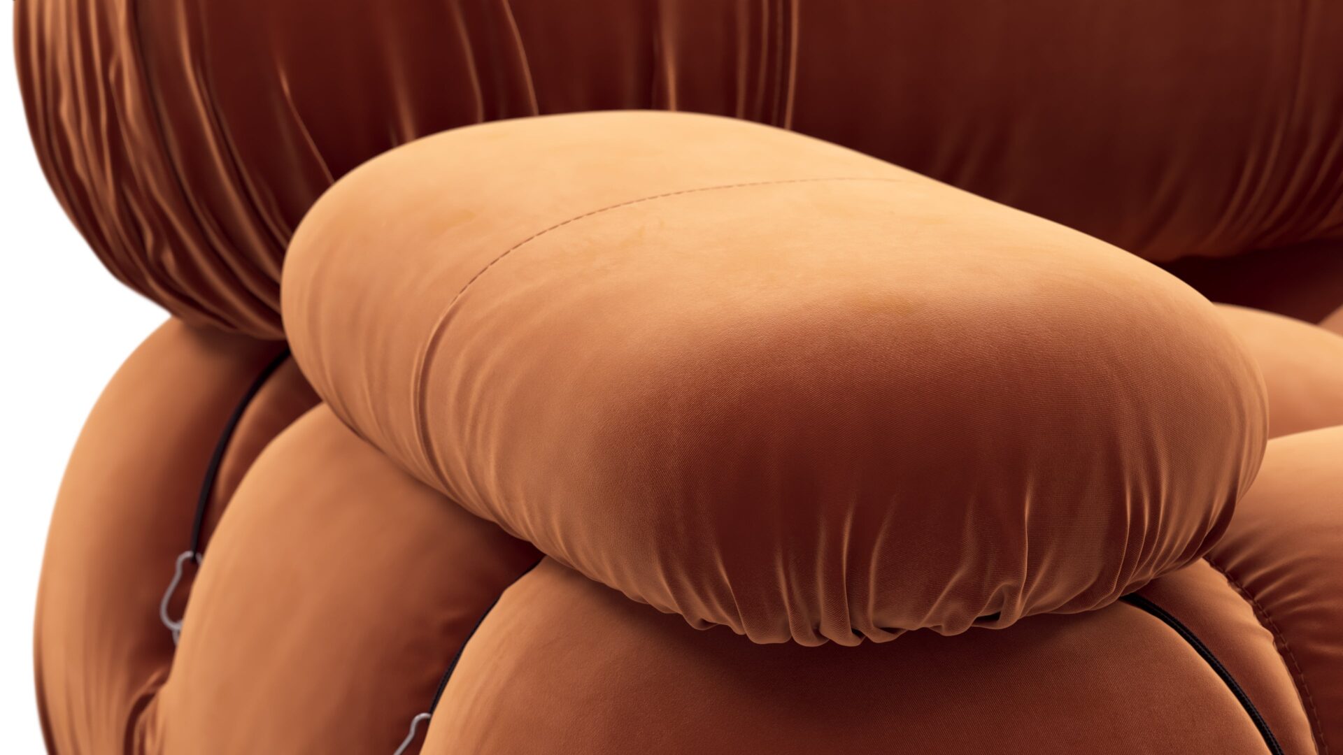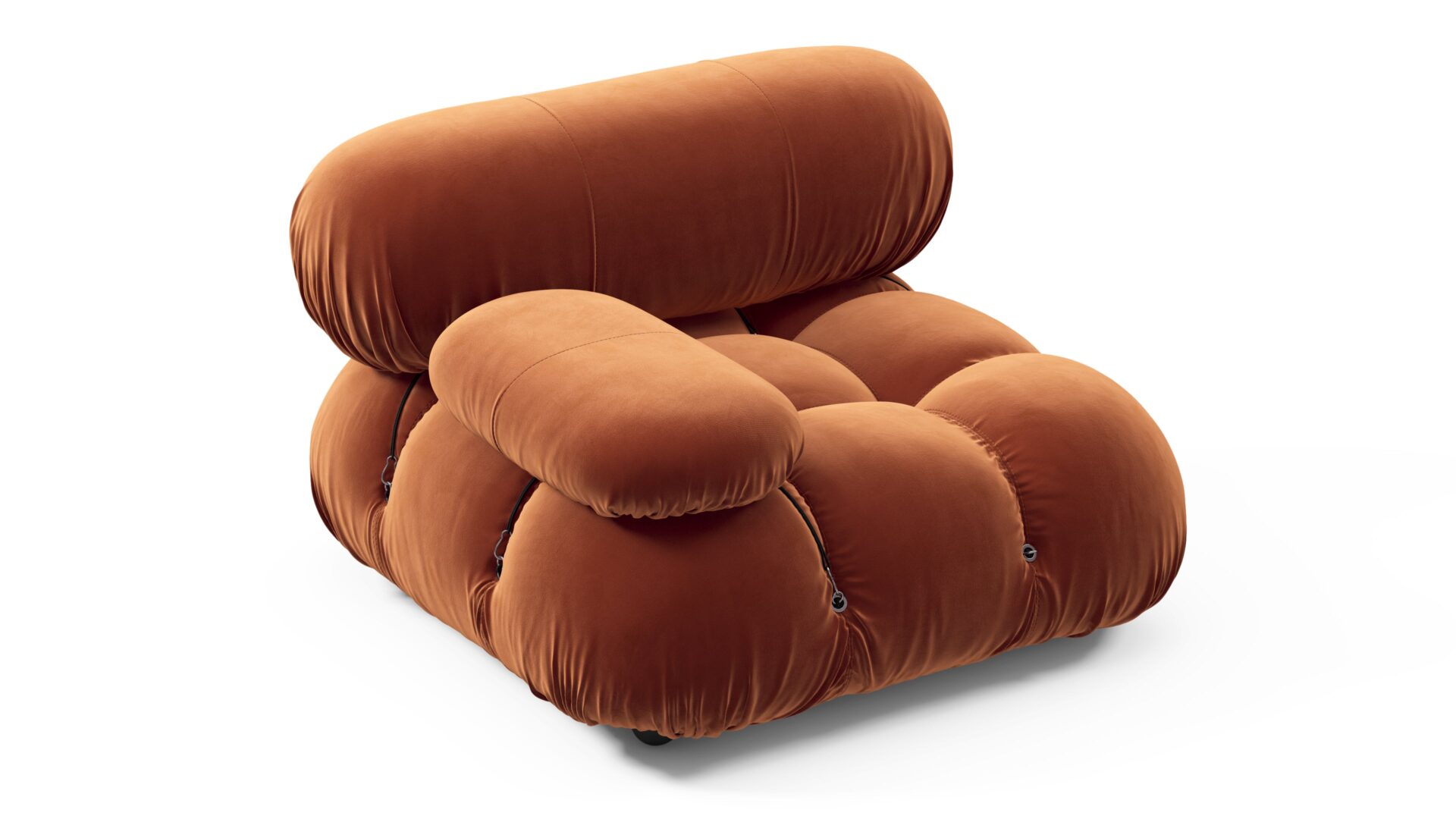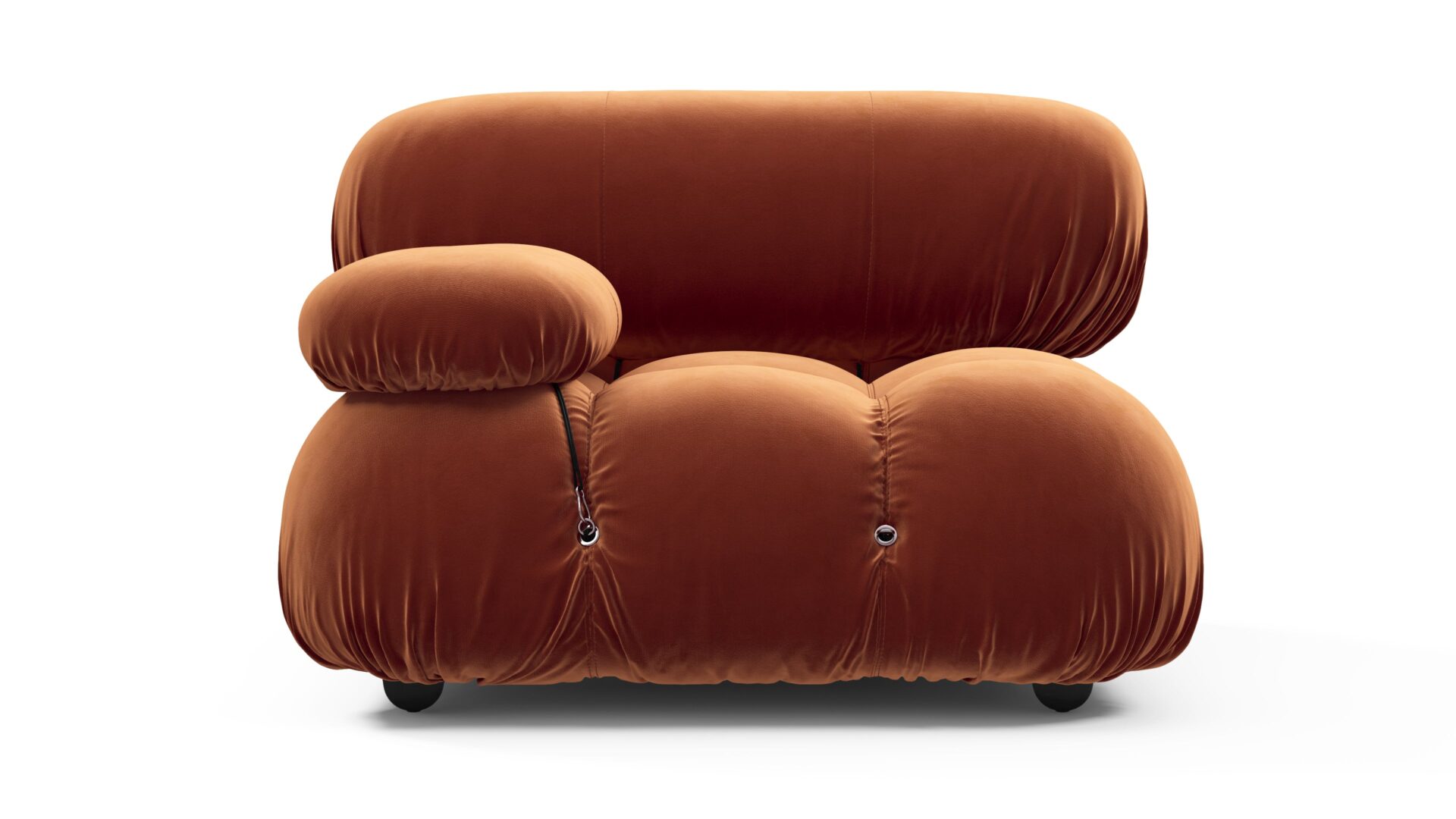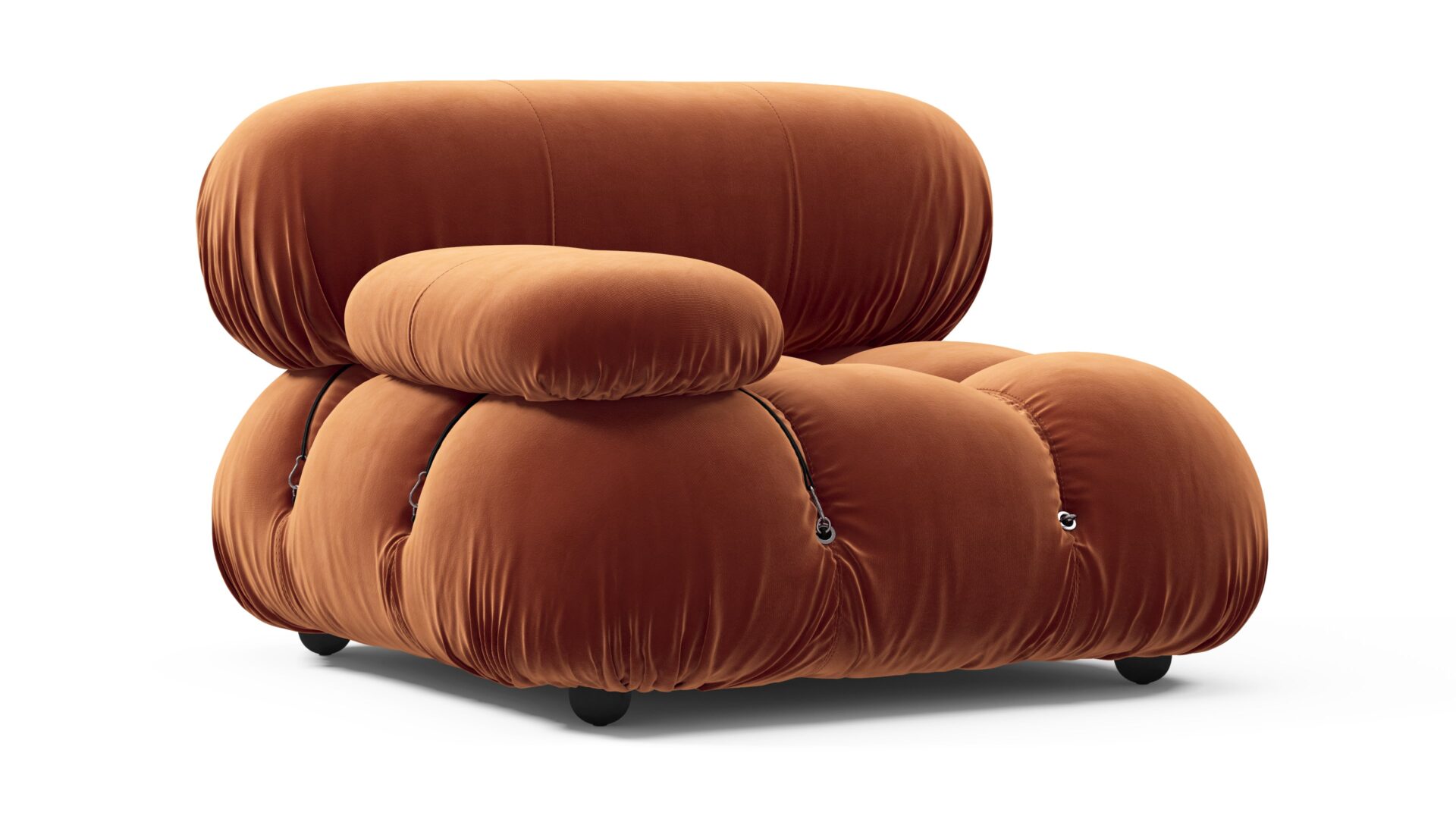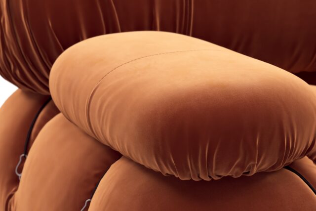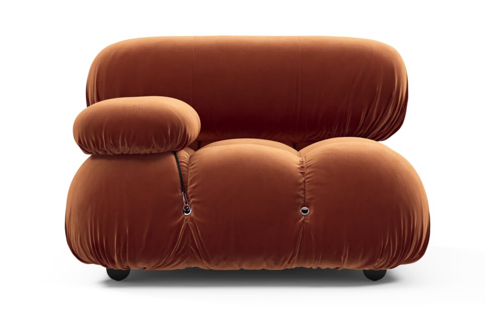 Step back into the 1970s with the Bellini sectional sofa, exuding groovy vibes and carefree living. An ode to liberation, this iconic piece allows customizable configurations to suit your room layout, style, and mood effortlessly. Embraced by a new generation, it features tie rods and rings for easy rearrangement. Upholstered in Spice Velvet, the Bellini's low-profile silhouette and plush cushions offer relaxed luxury, delivering unparalleled style and comfort.