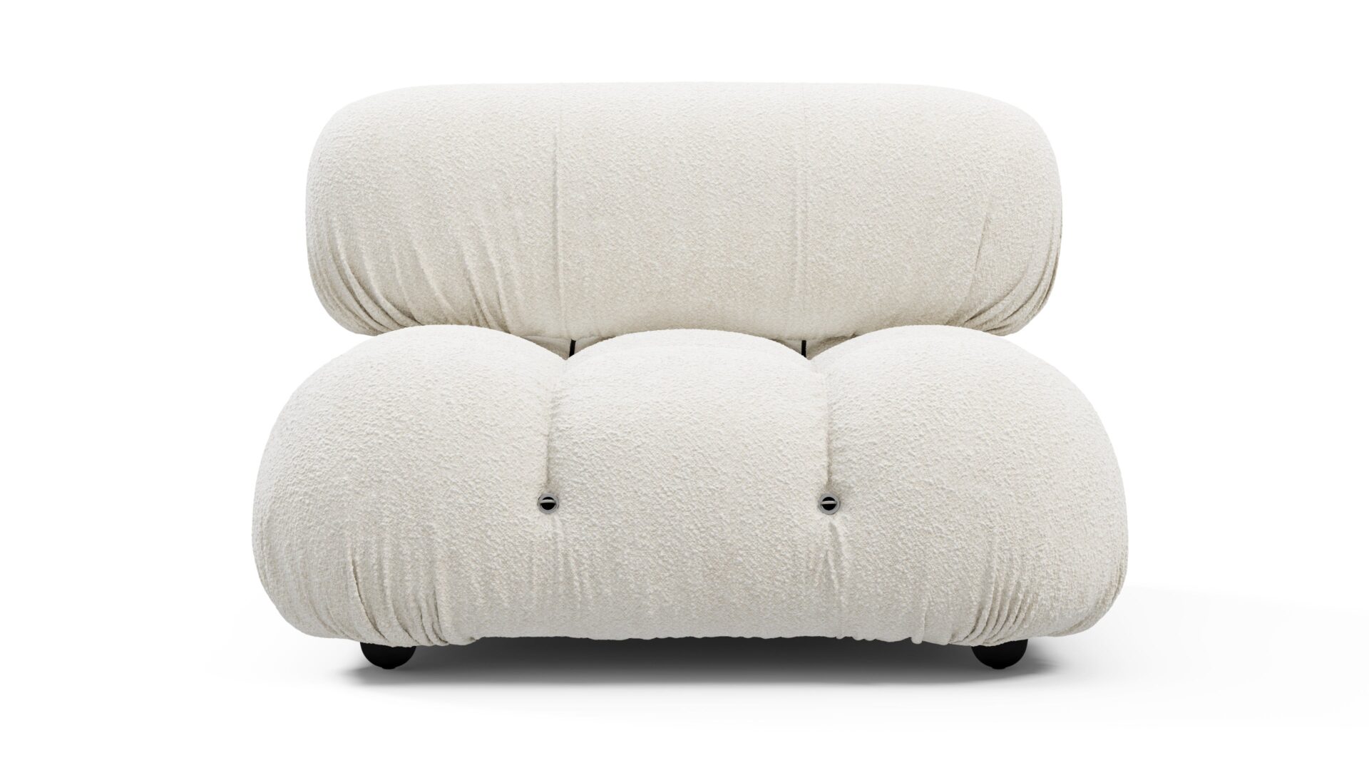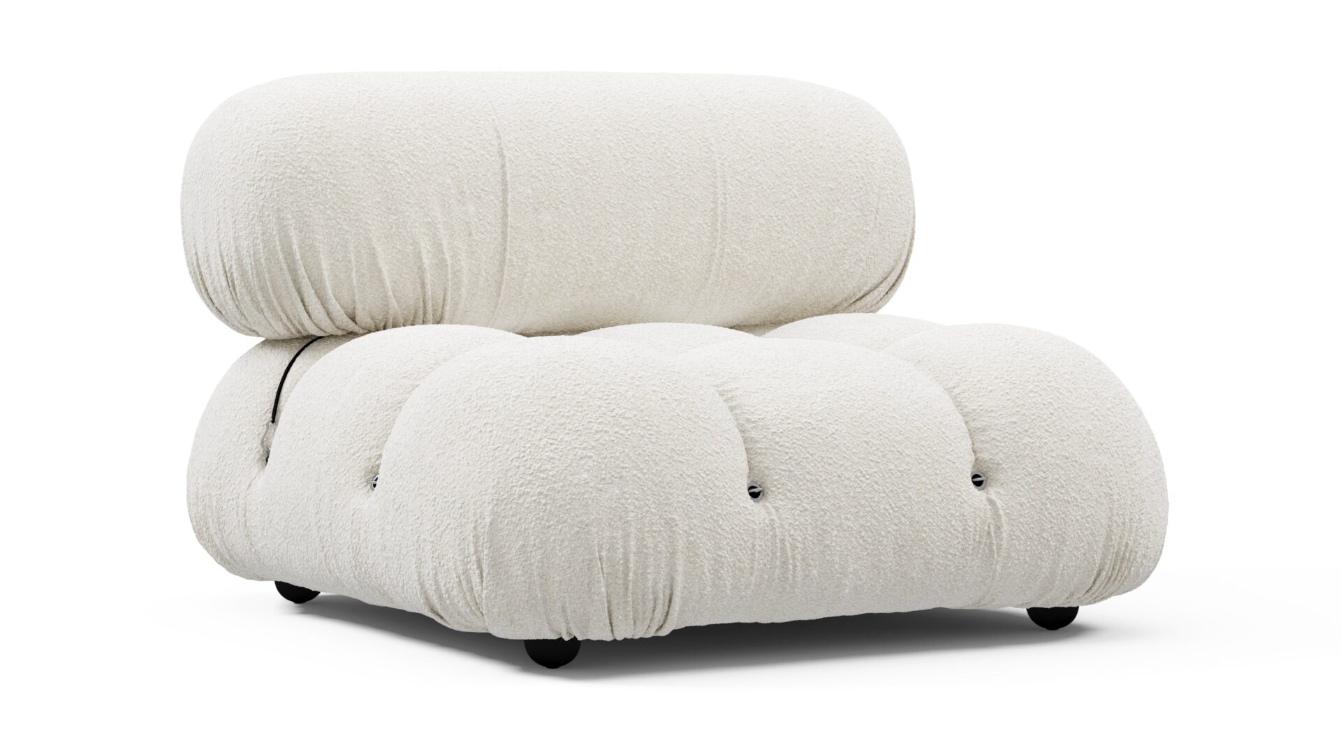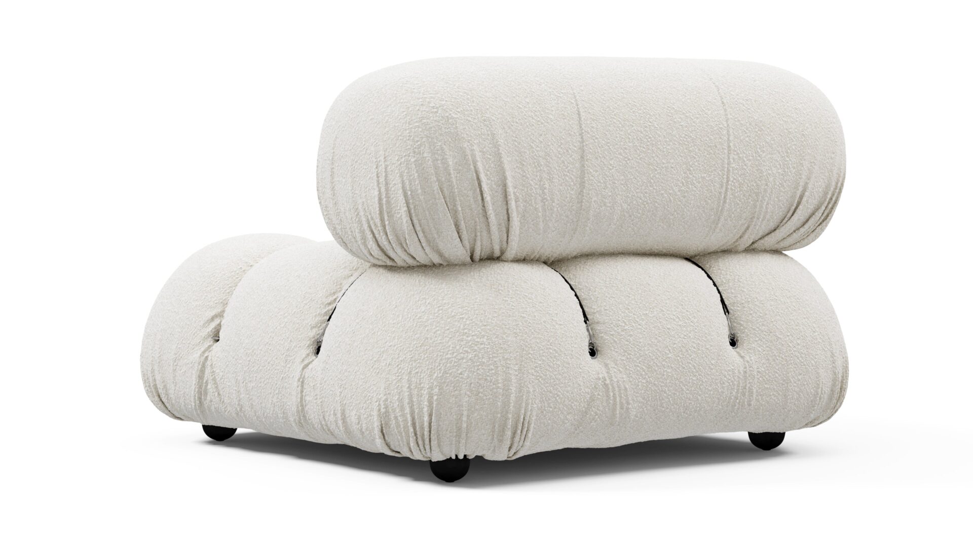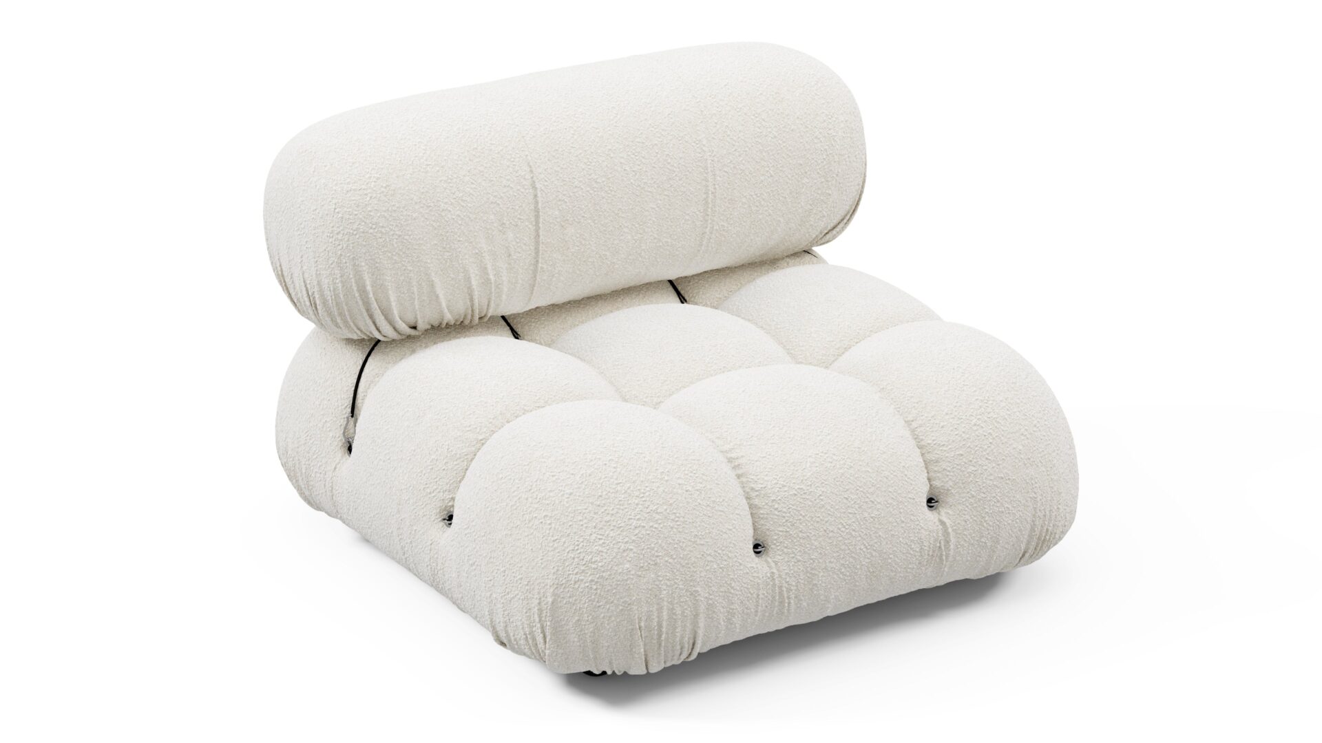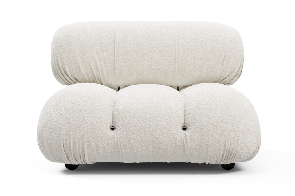 Step into the retro charm of the 1970s with the Bellini sectional sofa, embodying a spirit of freedom and individuality. Its modular design allows for effortless customization to suit your space, style, and mood. Crafted with a sturdy wooden frame and plush cold-pressed foam wrapped in soft White Boucle fabric, the Bellini exudes relaxed luxury, inviting you to unwind in style with its low-profile silhouette. Discover endless configurations with tie rods and rings that enable easy separation and rearrangement, giving you the flexibility to adapt your sofa to your evolving preferences. Cherished by a new generation for its liberating essence, the Bellini offers the perfect blend of style and comfort for any setting, making it a must-have addition for furniture enthusiasts seeking versatile and chic seating options.