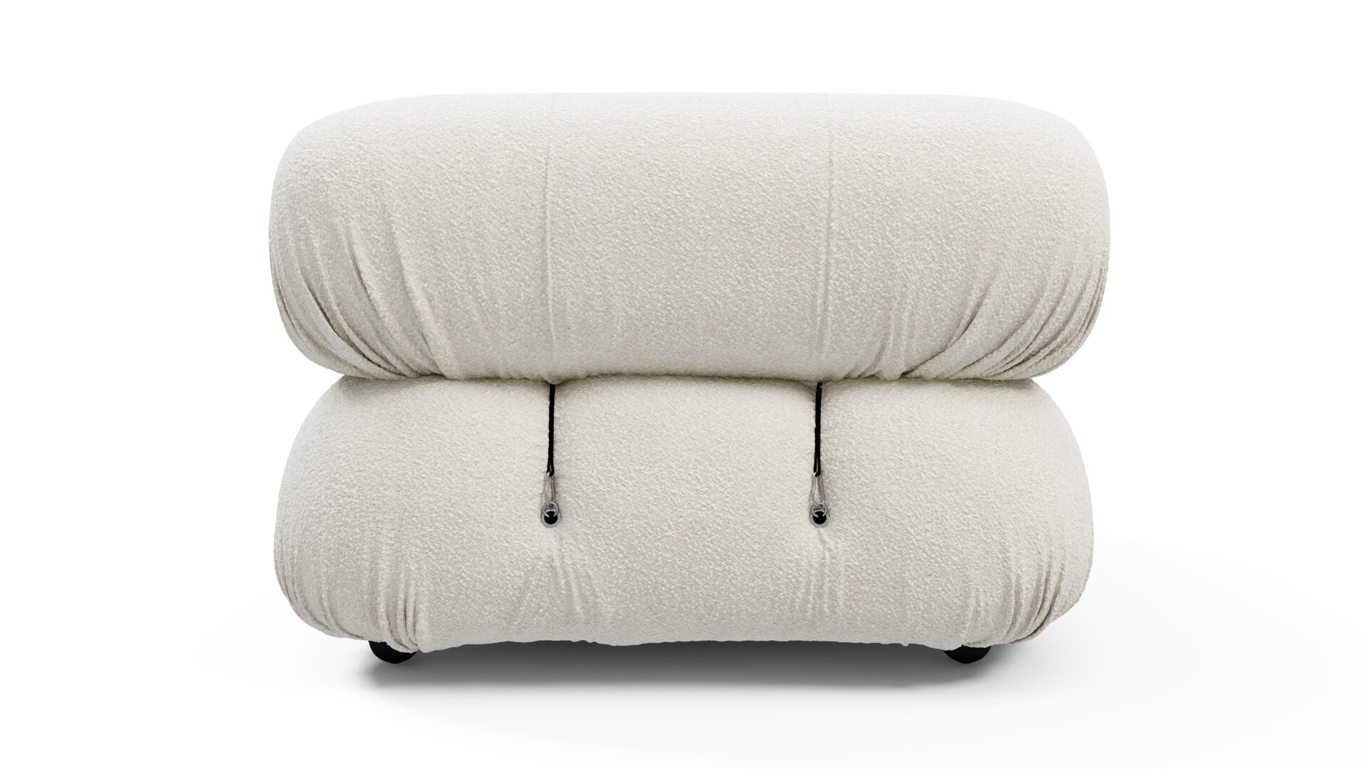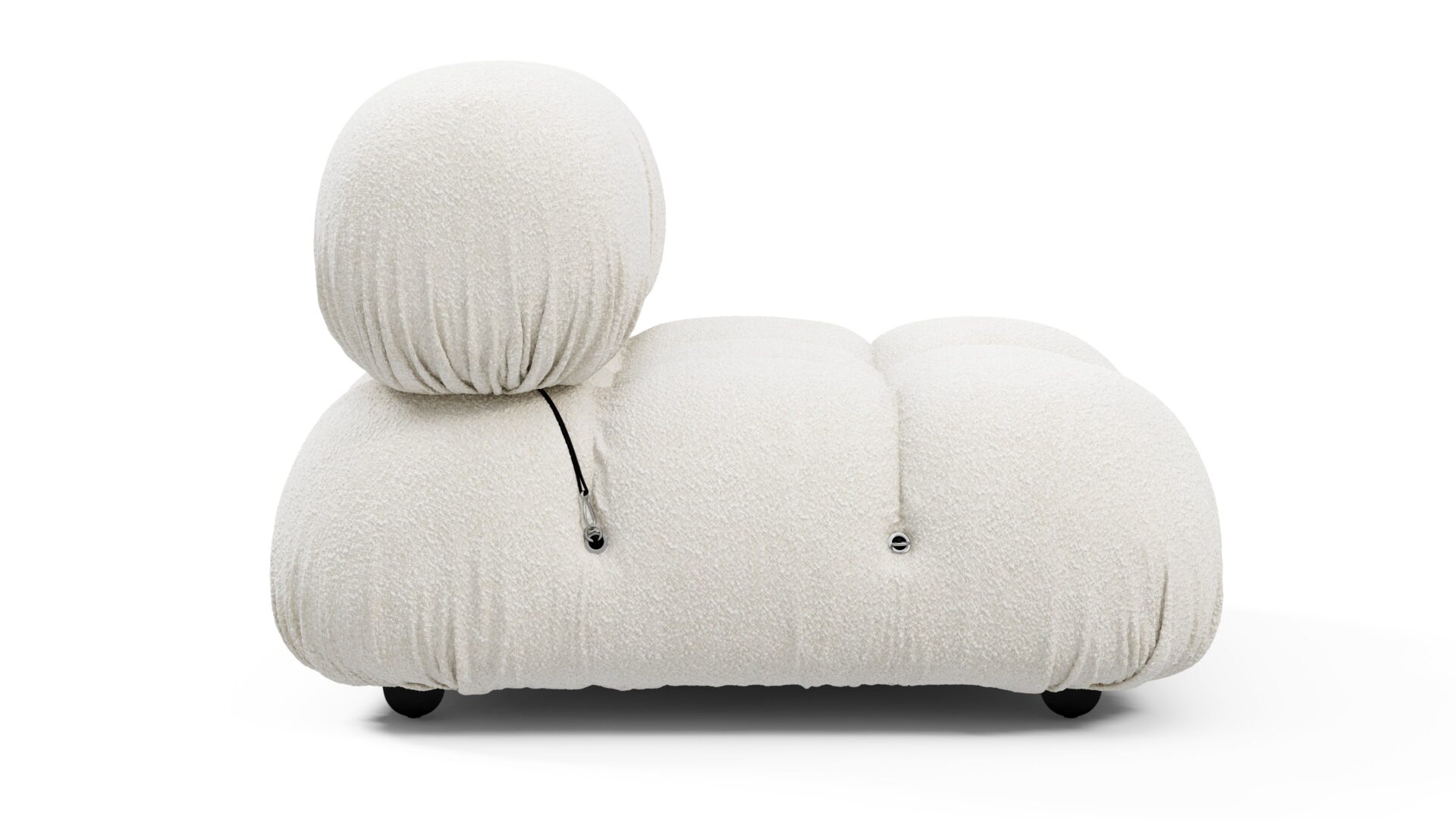 - Modular Instructions: Each section of the Mario Bellini Sofa is modular and is attached with string ties and carabiners. To assemble or rearrange your sofa, simply unclip the carabiners from one ring and attach to a corresponding ring on the module you wish to connect to.