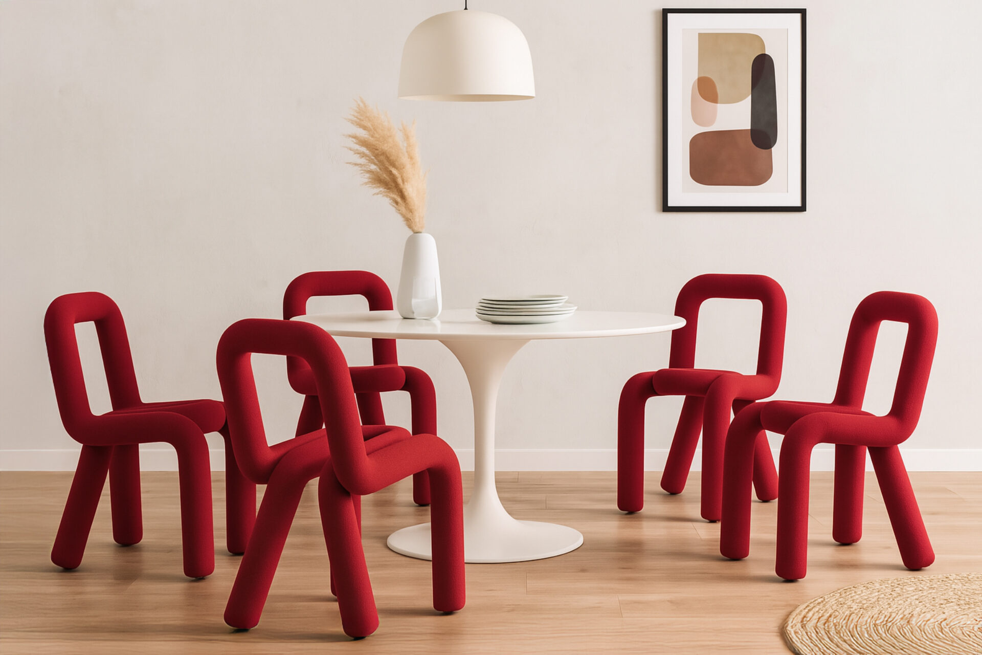 Elevate any room with The Bold Chair in striking Red, a captivating piece that blends art and functionality effortlessly. Experience fearless design and exceptional comfort in this chair that transforms spaces with its bold presence. Embrace its avant-garde silhouette, challenging conventional standards with its unique style that adds an artistic charm to modern living spaces.