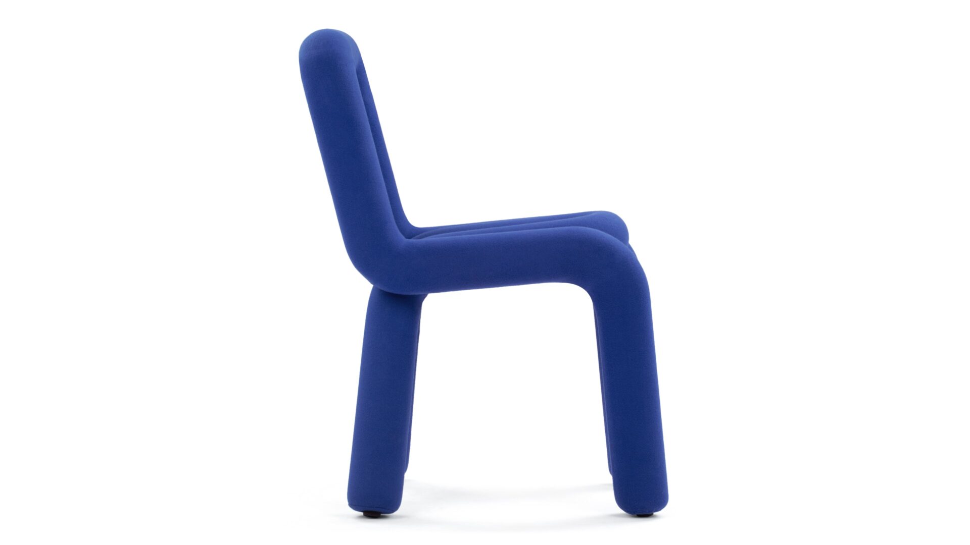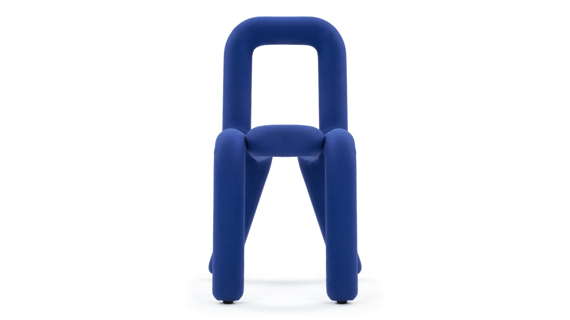 Elevate any space with The Bold Chair, a fearless piece blending art and functionality. This eye-catching chair disrupts norms with its innovative design, merging bold visual appeal with supreme comfort. Crafted with ultramarine wool upholstery, it embodies class and creativity, offering a dash of artistic charm and a genuine expression of modern design.