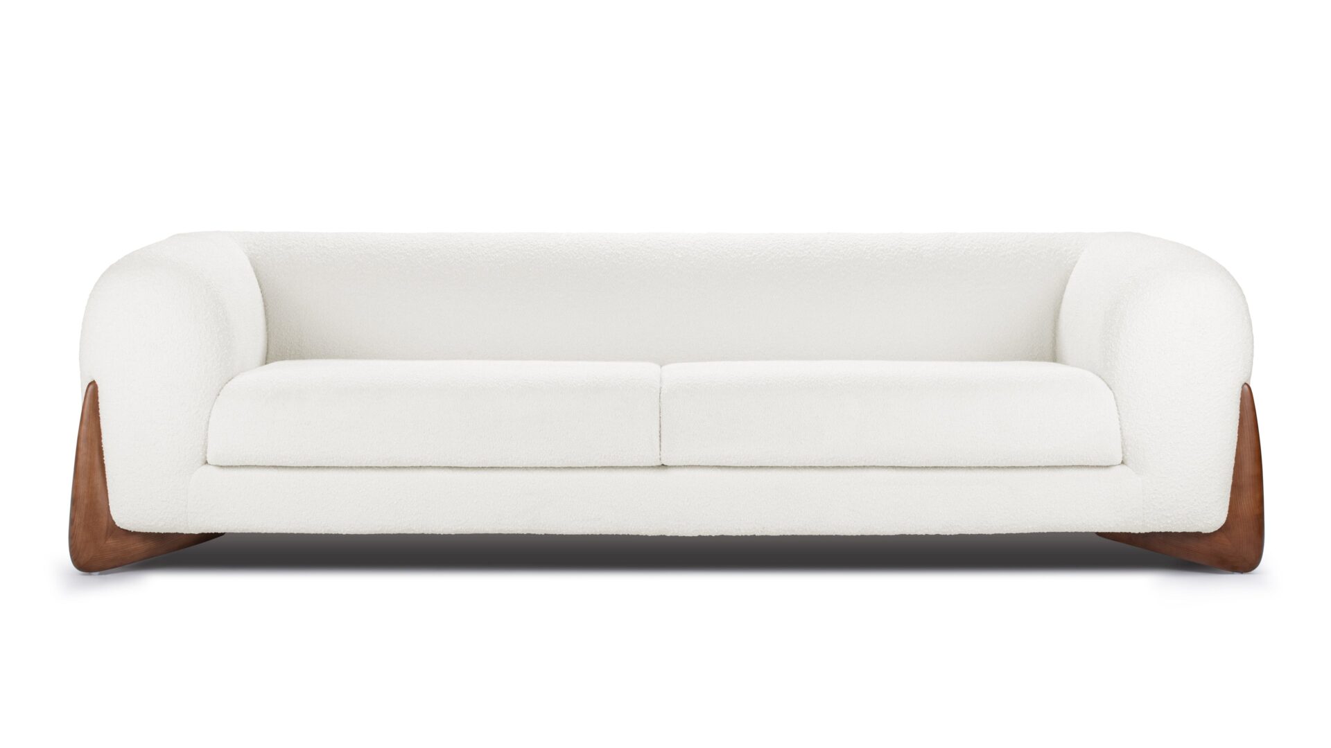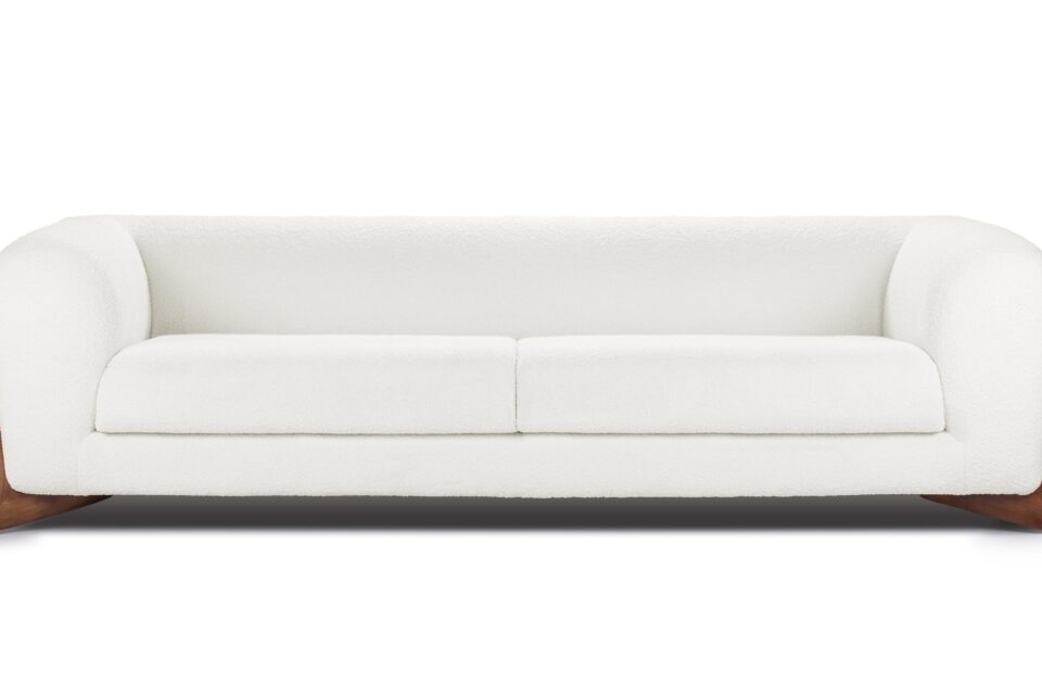 Experience the elegance of the Breton Sofa, crafted with luxurious white bouclé wool upholstery and complemented by elegant walnut legs. This sofa embodies a fusion of opulence and timelessness, delivering a harmonious balance of sophistication and comfort. Treat yourself to the ultimate amalgamation of style and relaxation with the Breton Sofa. Elevate your decor with this outstanding furniture piece that beckons you to relax in elegance.