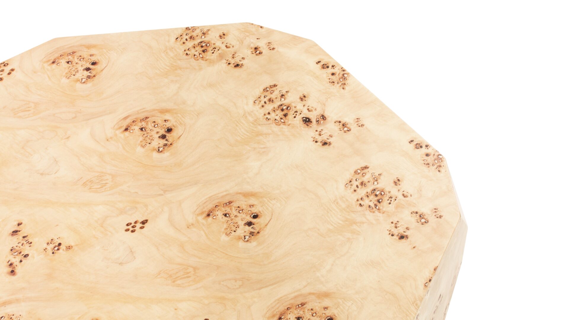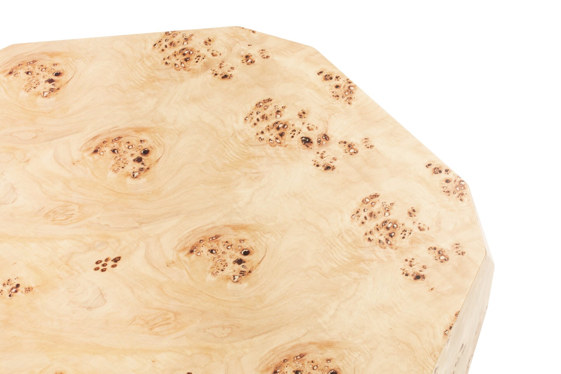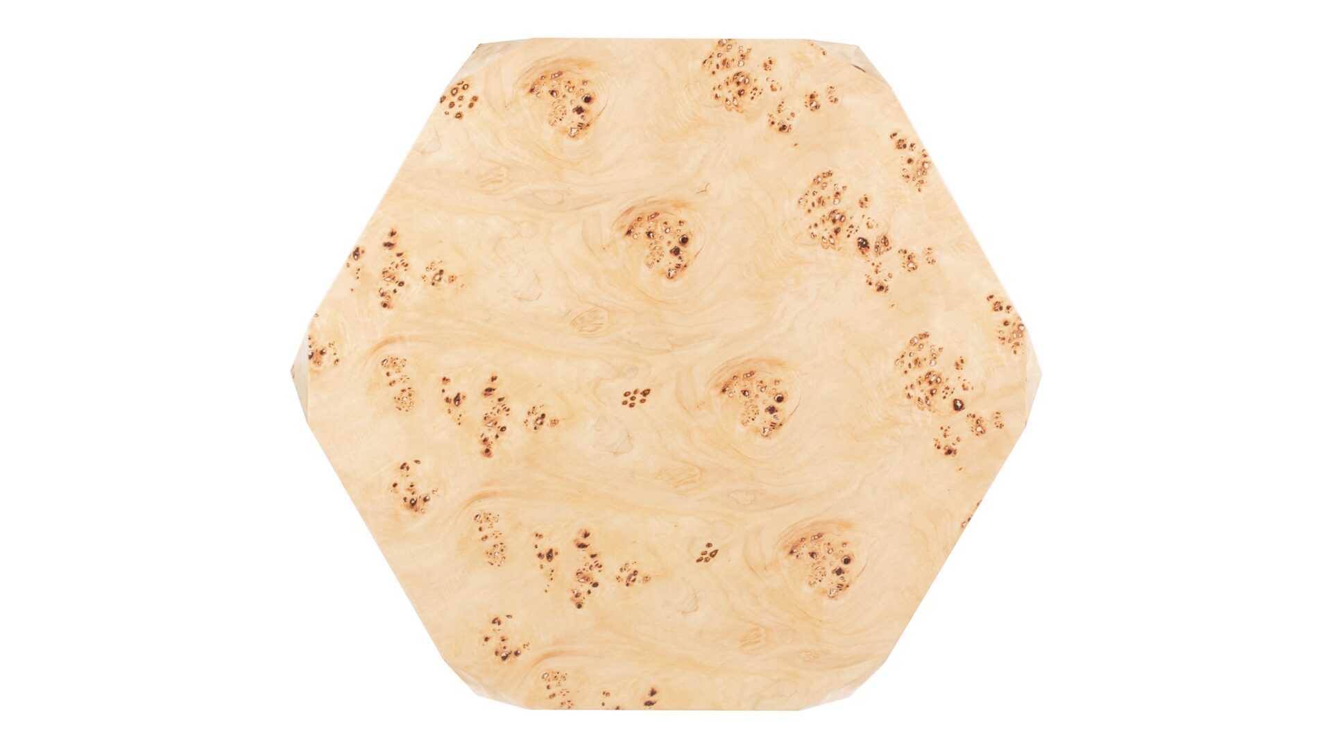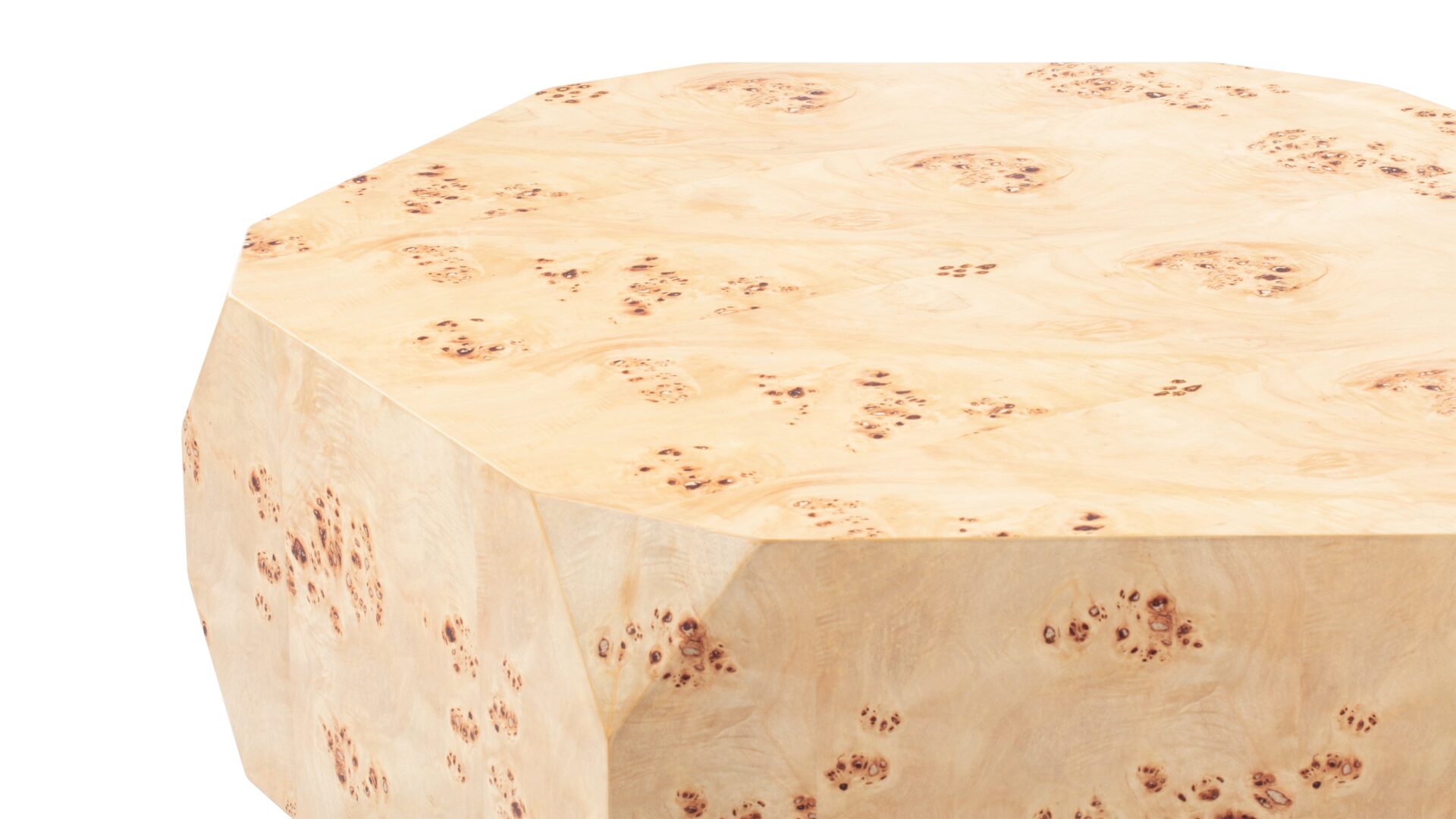 Introducing the Callie Coffee Table, a stunning display of modern aesthetics seamlessly melded with natural beauty. Precision-crafted to perfection, this exceptional furniture piece enhances any space with its unique charm and sophisticated allure. The table's captivating faceted geometric shape creates a visually striking silhouette, exuding contemporary elegance. Elevate your decor with the natural beauty of burl wood showcased in the distinct Callie Coffee Table, destined to be a timeless focal point in any room.