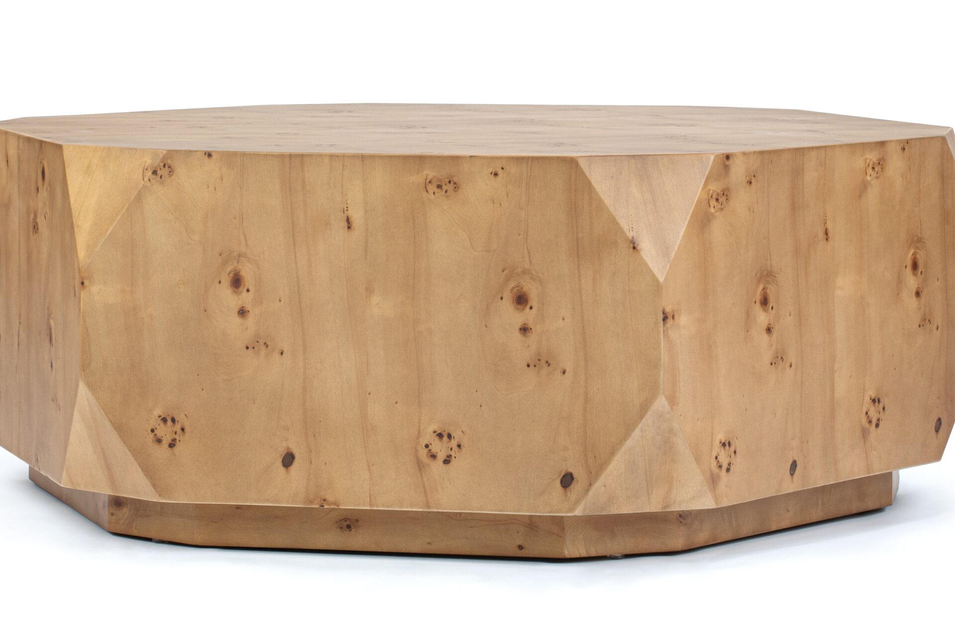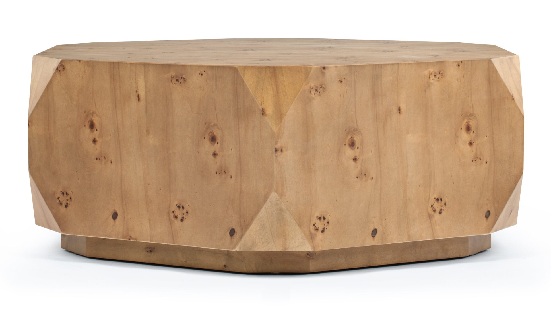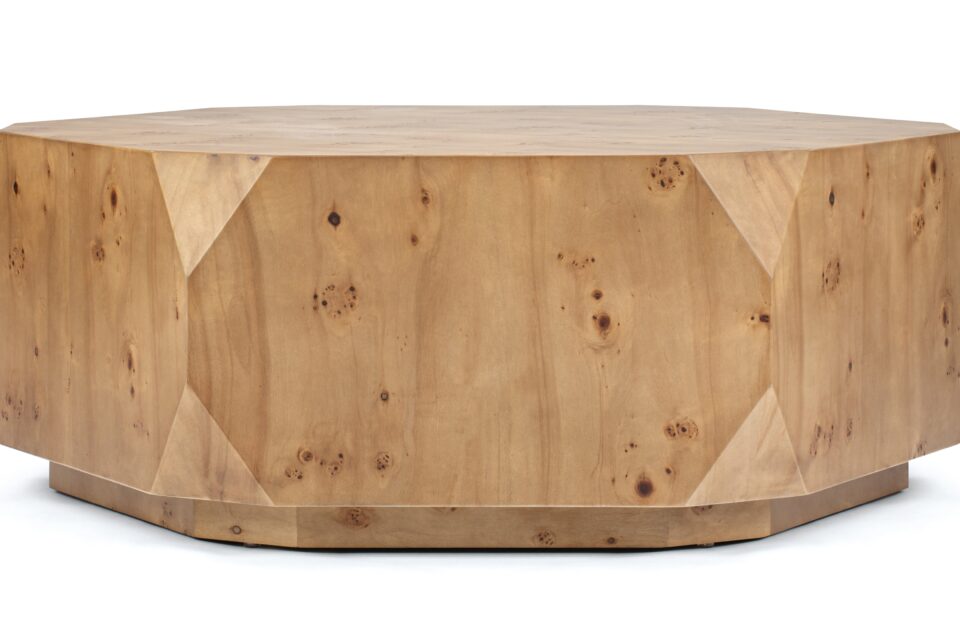 Introducing the stunning Callie Coffee Table, showcasing a flawless fusion of modern flair and natural allure. Crafted with precision, this exceptional piece boasts a captivating walnut finish that accentuates its captivating geometric shape. Elevate any room with its exquisite burl wood veneer, exquisite craftsmanship, and sleek lines, ensuring it becomes a timeless focal point in your décor.