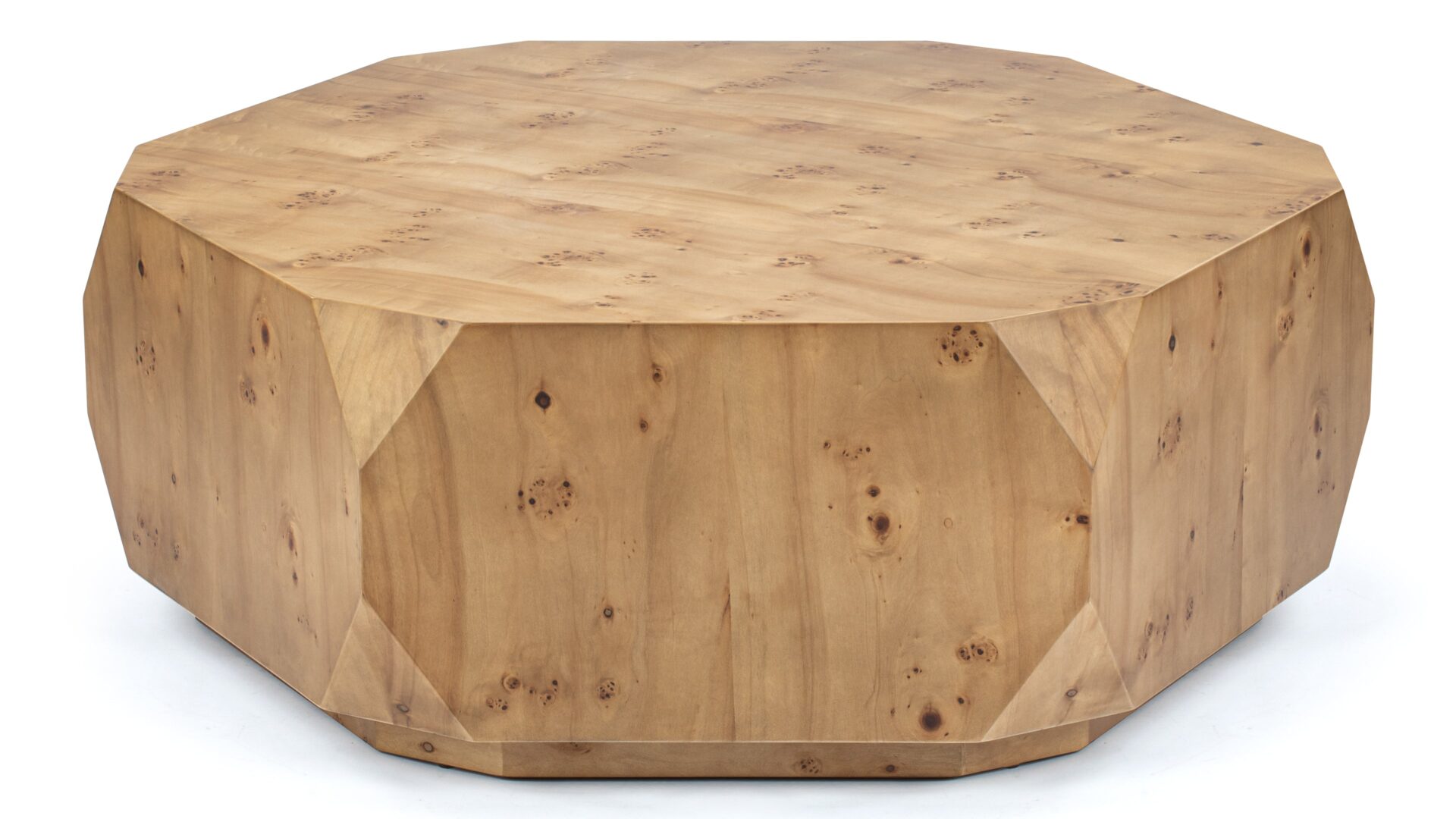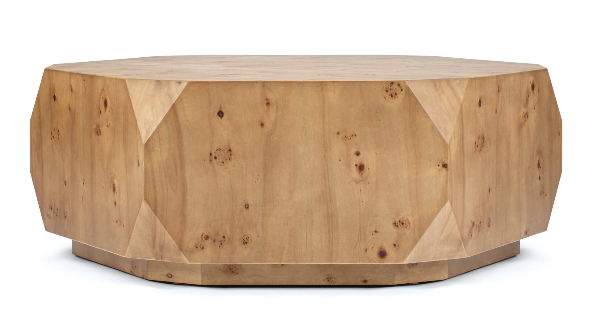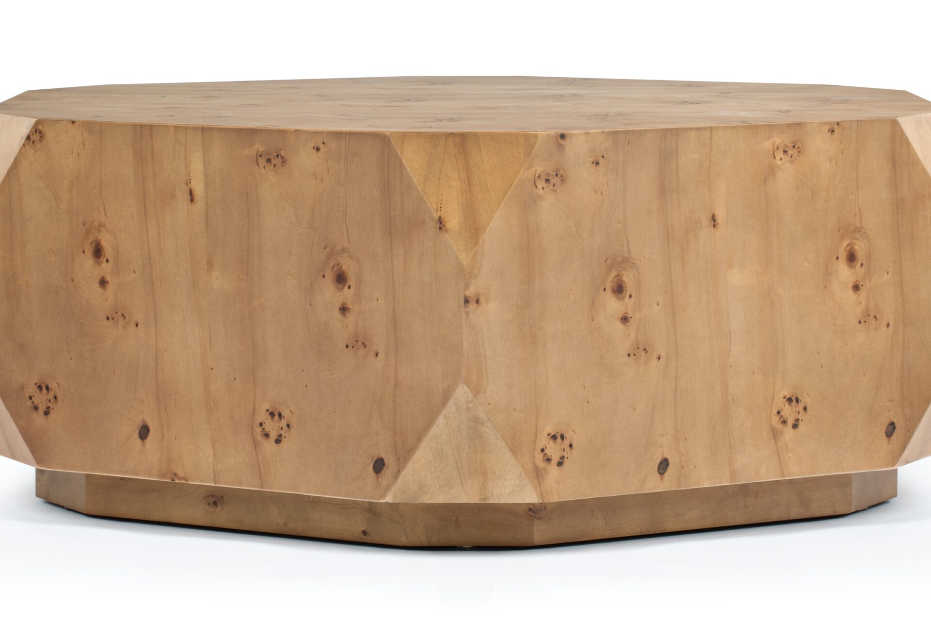 Introducing the stunning Callie Coffee Table, showcasing a flawless fusion of modern flair and natural allure. Crafted with precision, this exceptional piece boasts a captivating walnut finish that accentuates its captivating geometric shape. Elevate any room with its exquisite burl wood veneer, exquisite craftsmanship, and sleek lines, ensuring it becomes a timeless focal point in your décor.