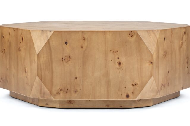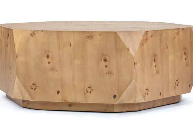 Elevate your living space with the distinctive Callie Coffee Table featuring a remarkable burl wood veneer finish. The exquisite veneer highlights the inherent beauty of the wood, revealing mesmerizing swirling patterns and intricate grains that enhance the minimalist design of the table.