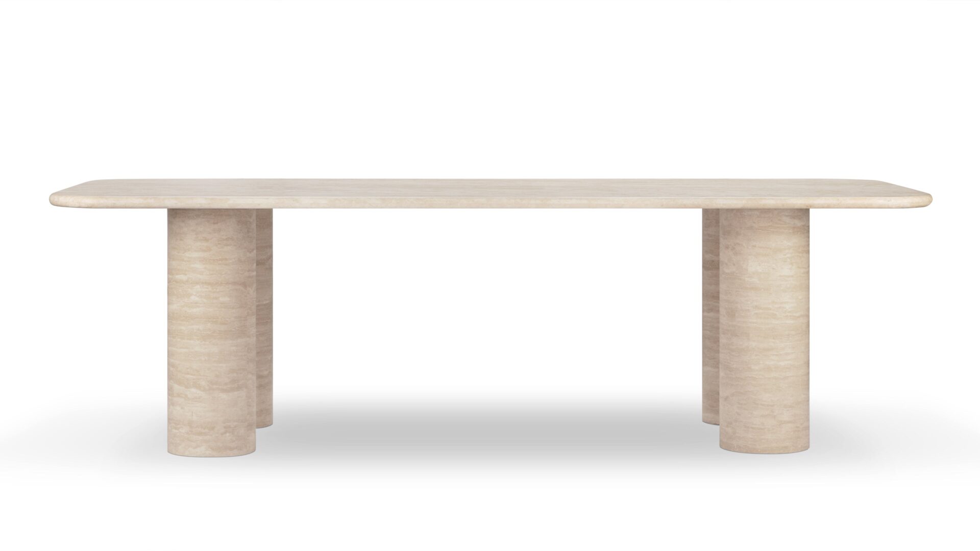 Experience the perfect blend of durability and style with the Cato Dining Table, where the enduring quality of travertine showcases its resilience over time. The inherent variations in the stone elevate its allure, guaranteeing that this table will stand as a timeless centerpiece in your home for years to come.