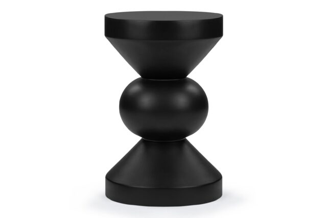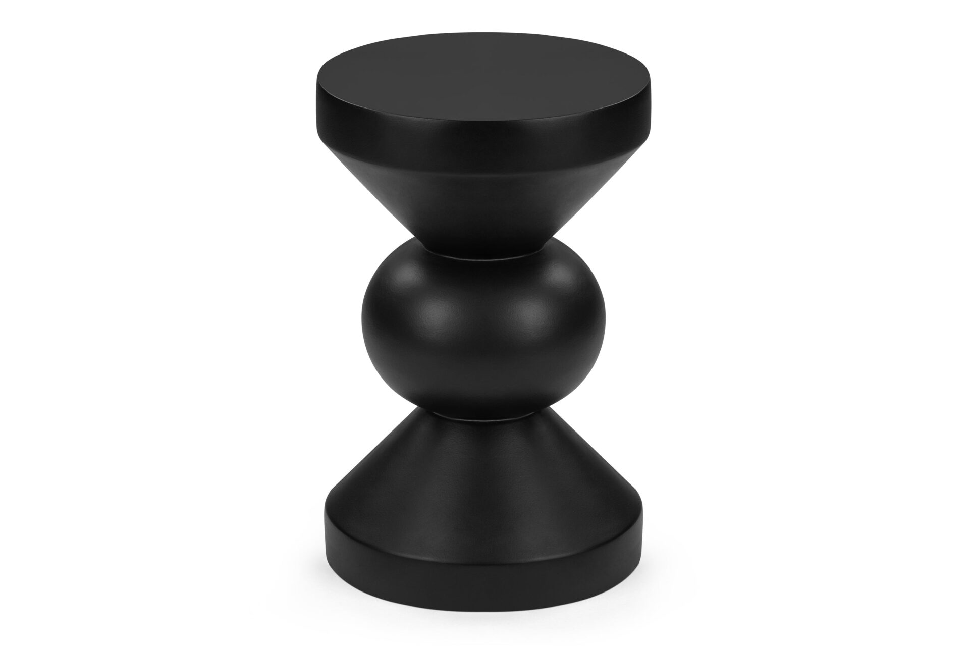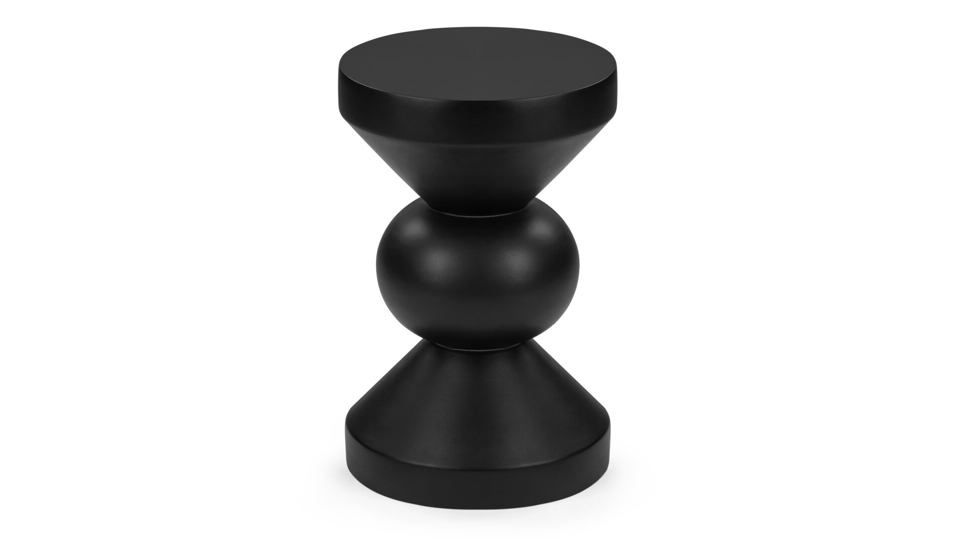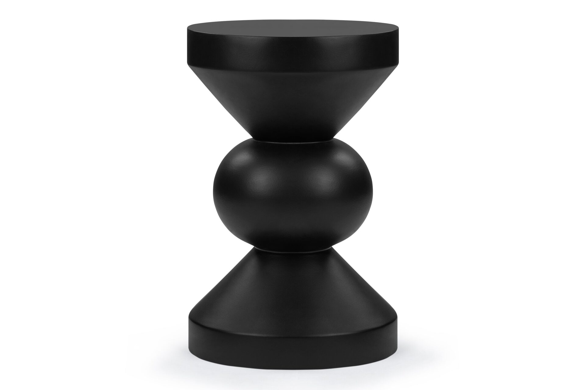 Introducing the Chess Side Table, a contemporary geometric piece crafted from durable black concrete. With its striking design featuring a conical base and top, along with a spherical center, this table boasts a modern appeal perfect for indoor and outdoor use. Its sturdy build ensures long-lasting quality, making it a stylish and functional addition to any space.