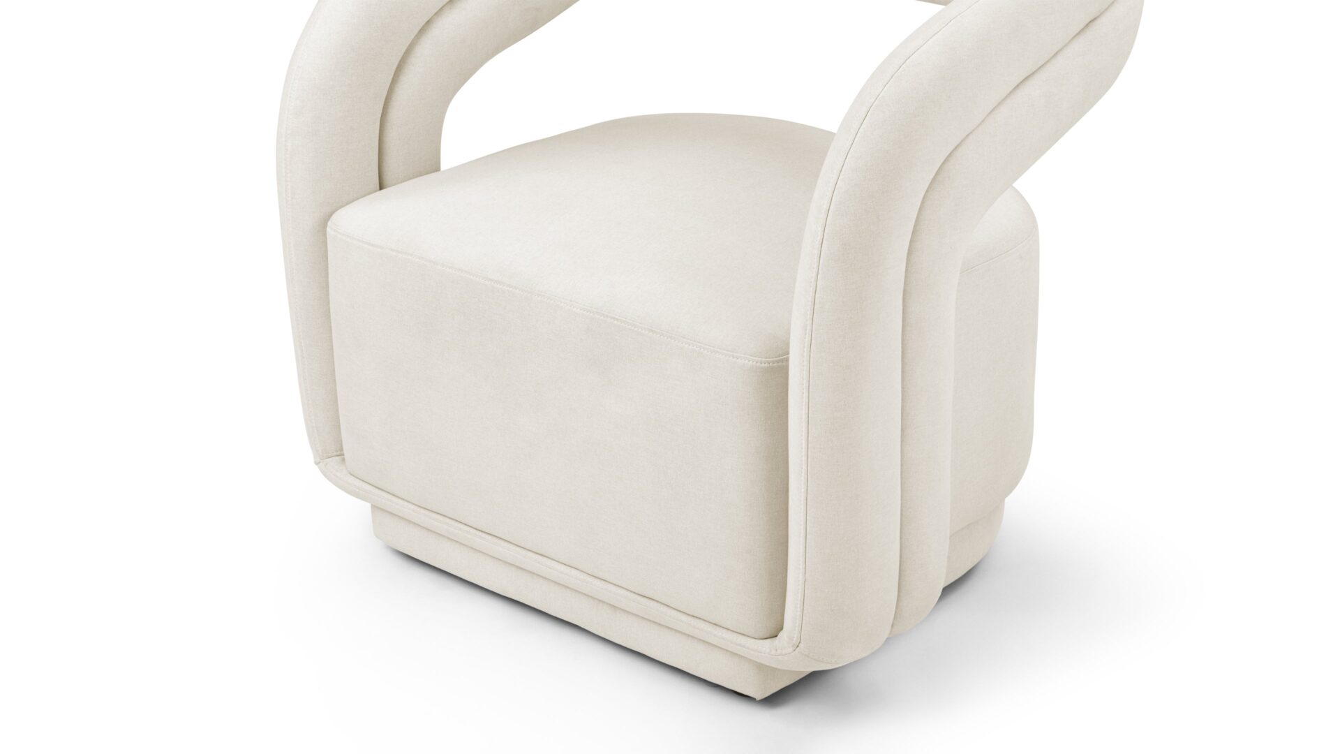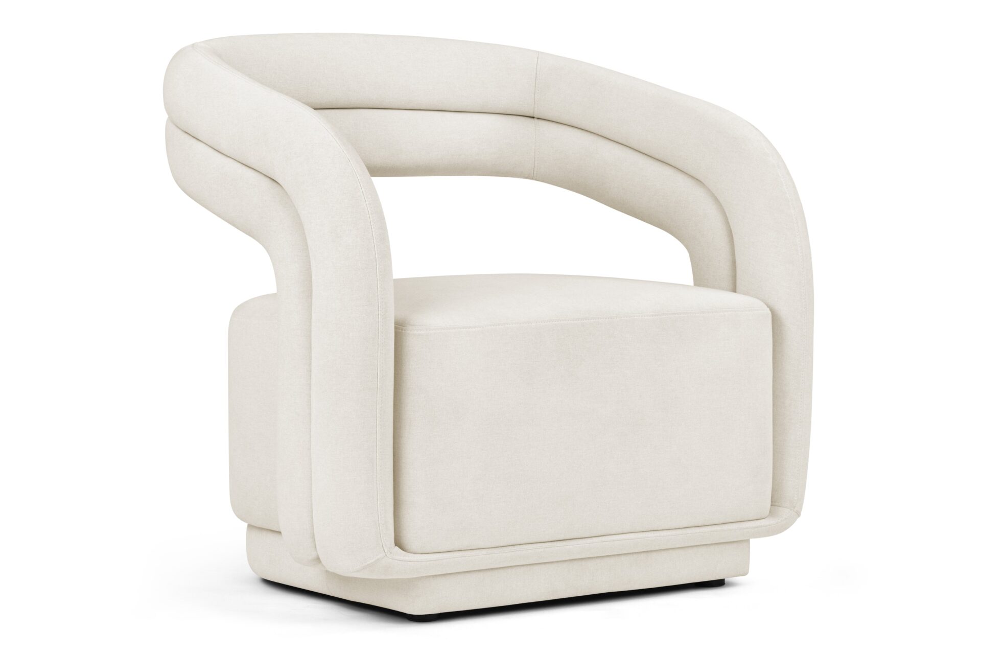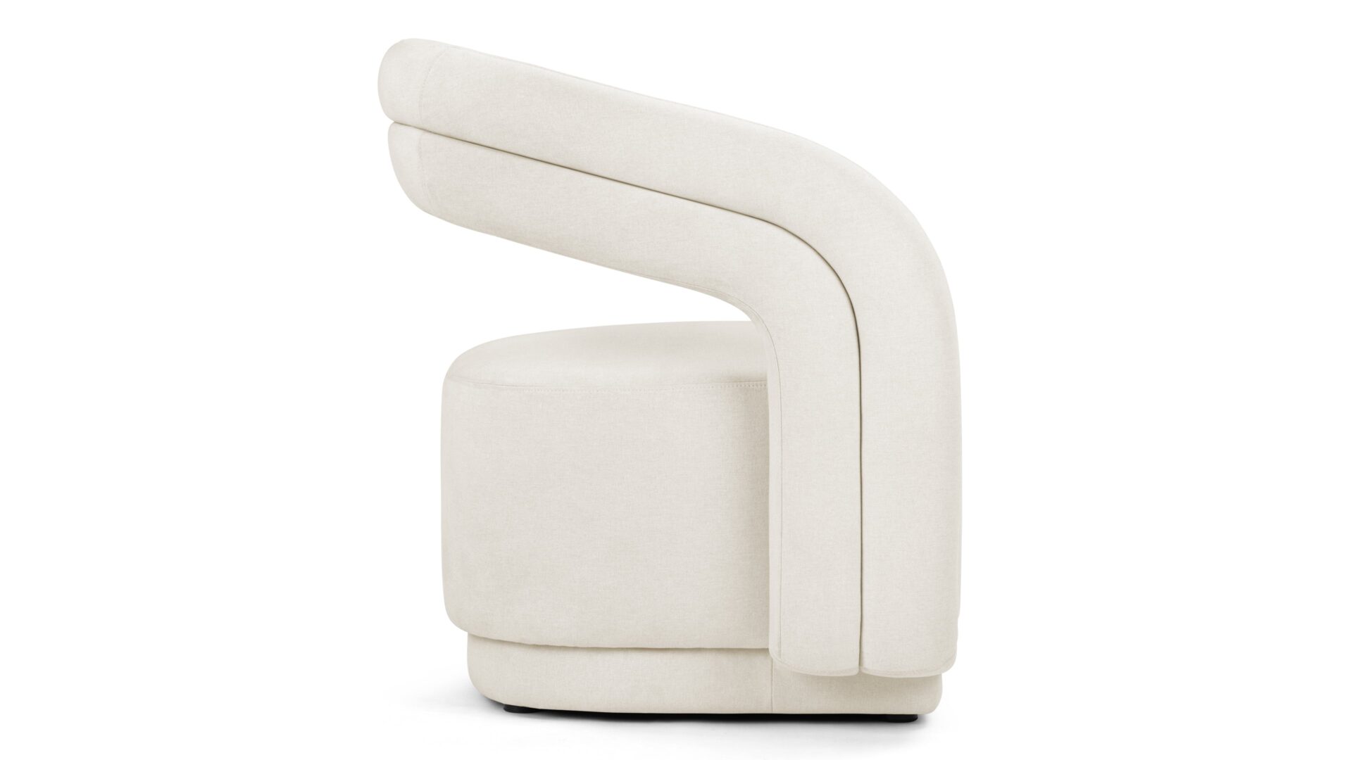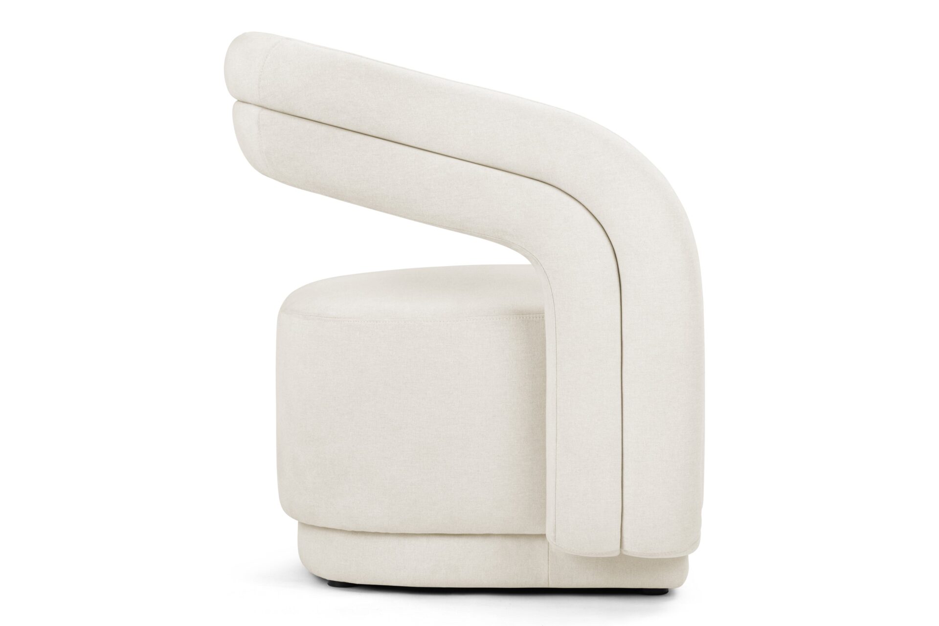Discover the versatility and style of the Chloe Lounge Chair, a chic piece crafted to harmonize with a variety of interior decor styles due to its neutral fabric. Featuring a distinctive round backrest merging seamlessly into curved armrests that gracefully flow into the chair's sleek frame, this chair's contemporary and substantial design is right on trend, infusing a modern flair into any room.