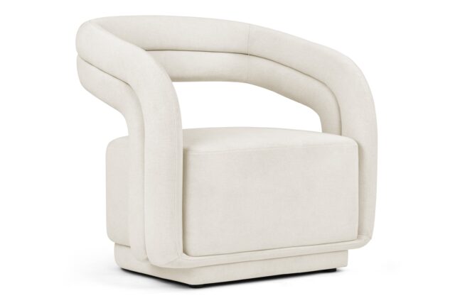 Uncover the chic and versatile Chloe Lounge Chair, featuring a round backrest seamlessly flowing into curved armrests and a sleek frame, adding a modern touch to any room. Its boxy silhouette ensures comfort and the ability to create striking seating arrangements. This contemporary piece blends style and comfort flawlessly, making it perfect for any living space.