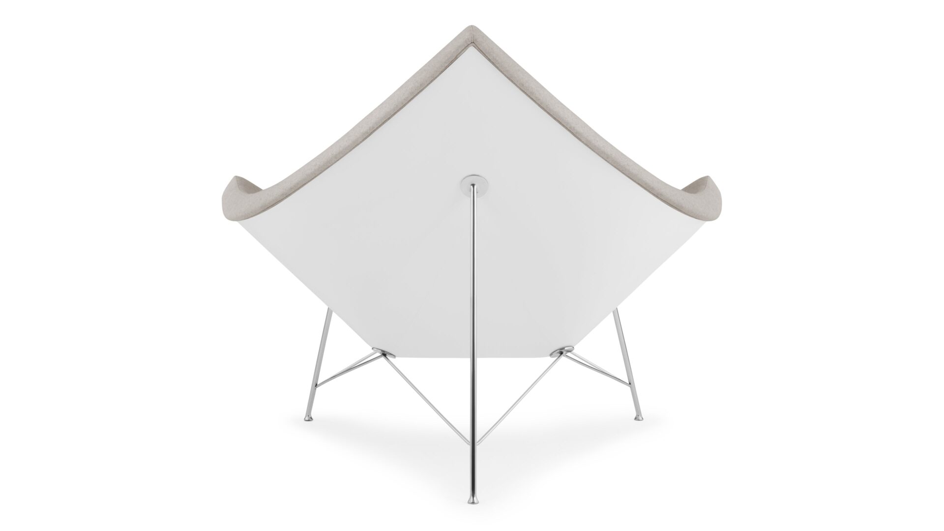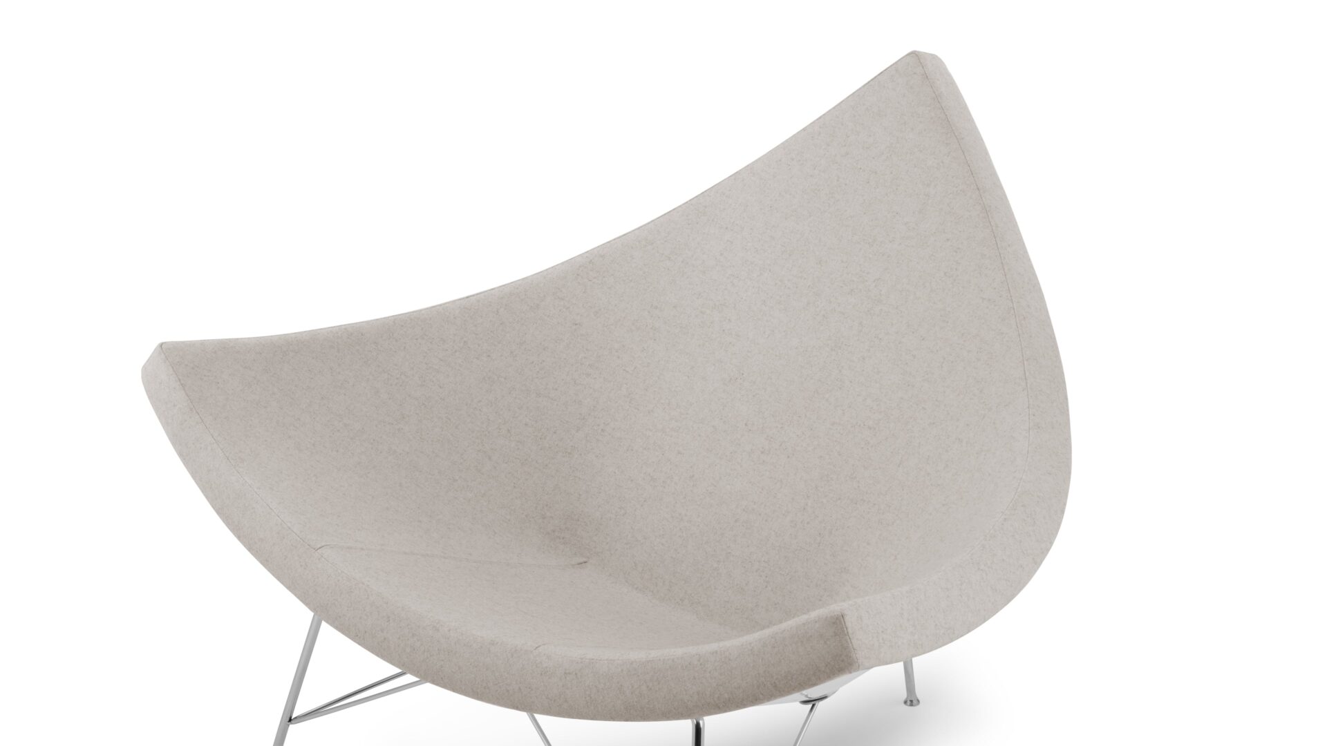 Make a statement with the iconic Coconut Chair, inspired by the shape of a coconut segment. Crafted with premium wheat gray wool and durable fiberglass, this unique chair boasts a playful spirit and supreme comfort. Perfect for various settings, its stylish design and quality materials ensure long-lasting appeal for both lounging and aesthetics.