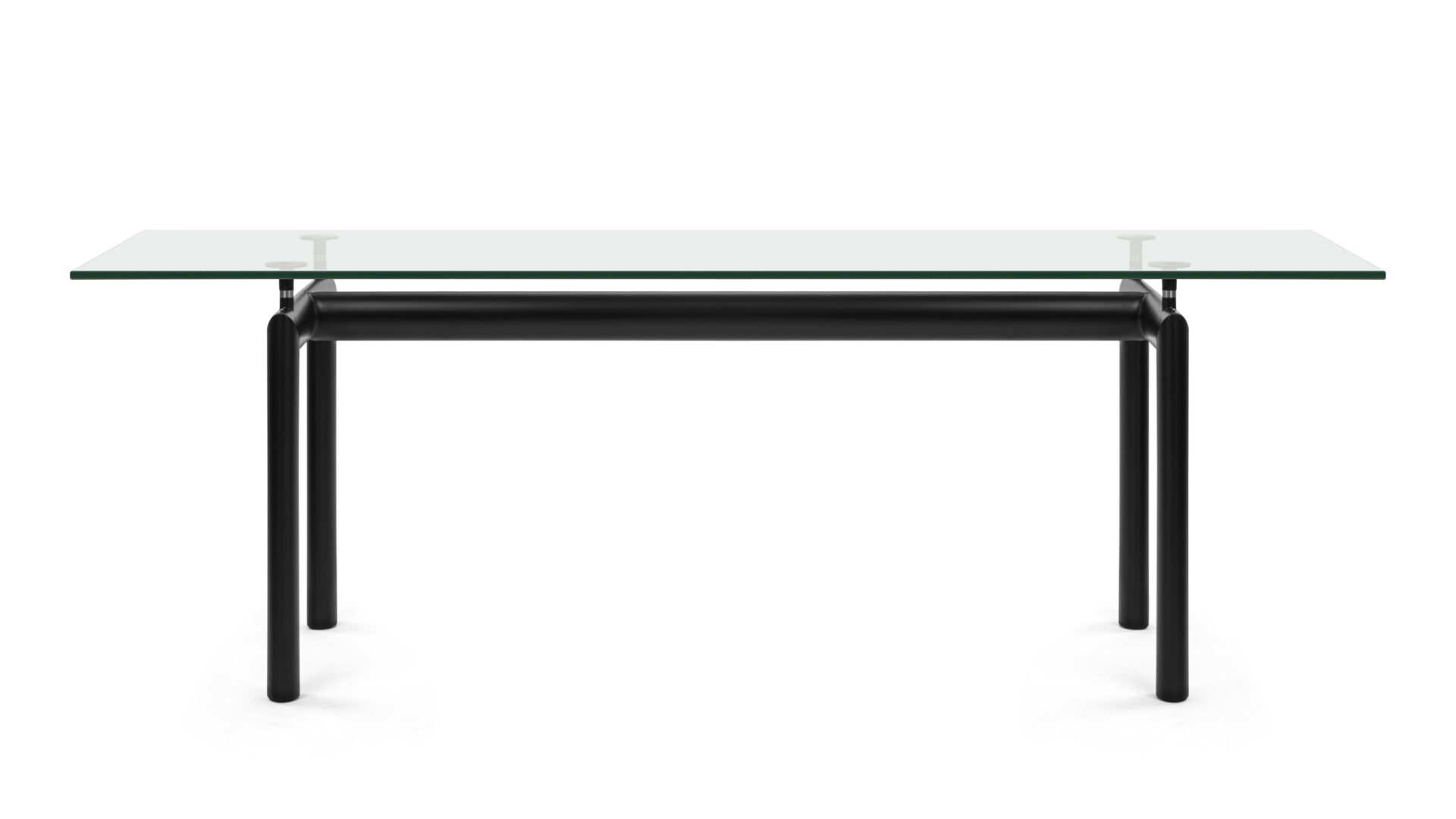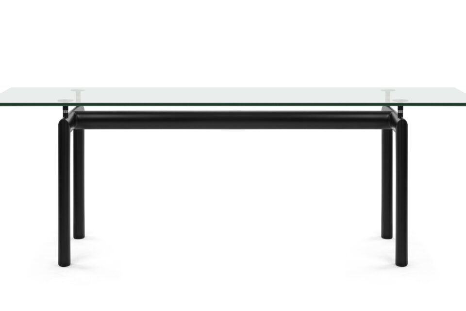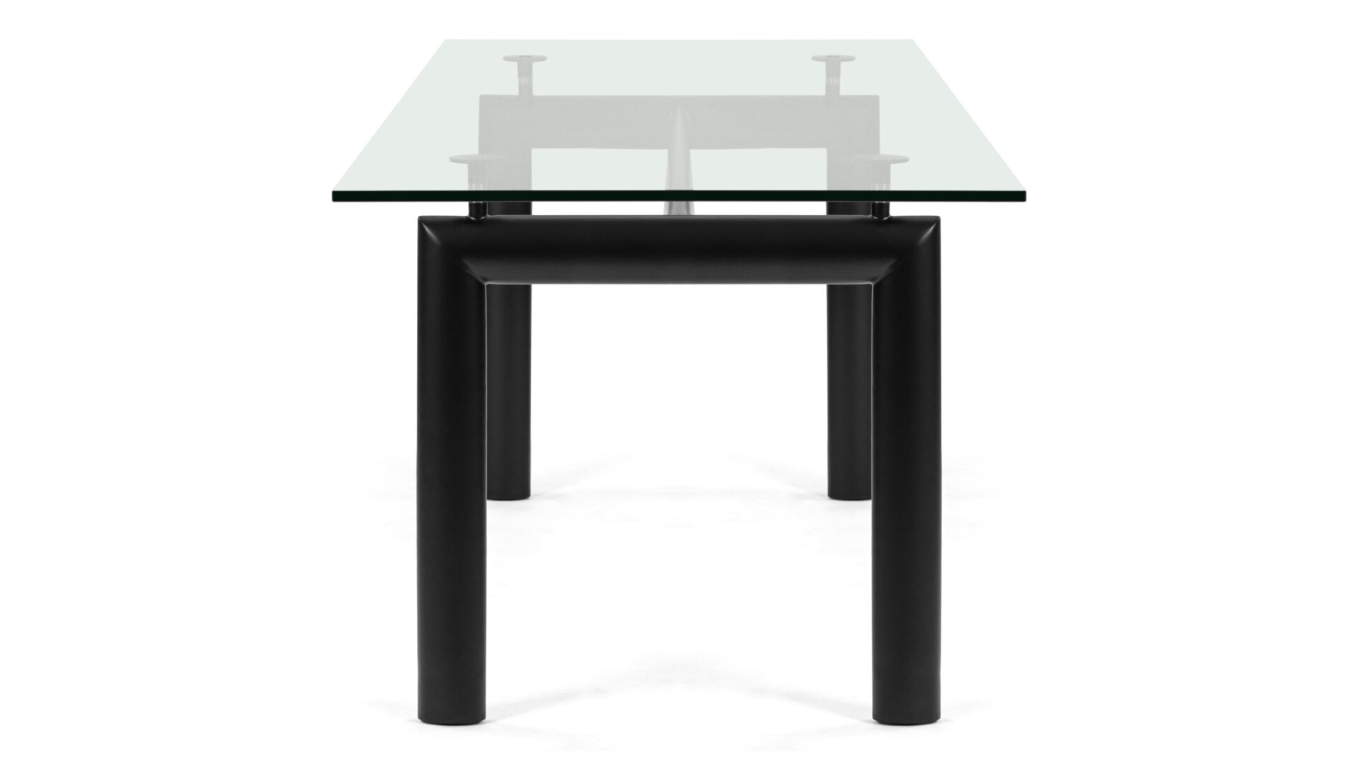 Elevate your dining space with the sophisticated Corbusier Dining Table in timeless Black. This iconic piece embodies contemporary elegance and minimalist design ethos, featuring a sturdy tubular steel frame and premium tempered glass tabletop. Crafted with sleek lines and geometric simplicity, it effortlessly enhances any interior decor, making it a valuable investment for your home.
