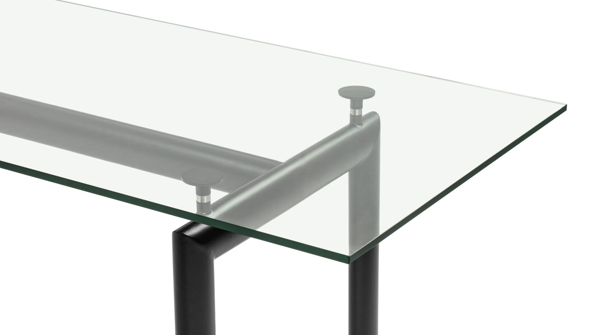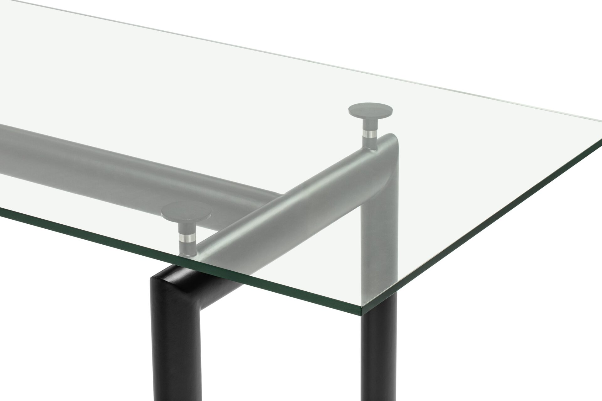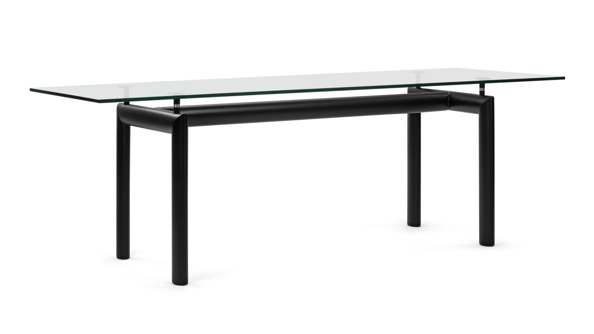 Elevate your dining space with the sophisticated Corbusier Dining Table in timeless Black. This iconic piece embodies contemporary elegance and minimalist design ethos, featuring a sturdy tubular steel frame and premium tempered glass tabletop. Crafted with sleek lines and geometric simplicity, it effortlessly enhances any interior decor, making it a valuable investment for your home.