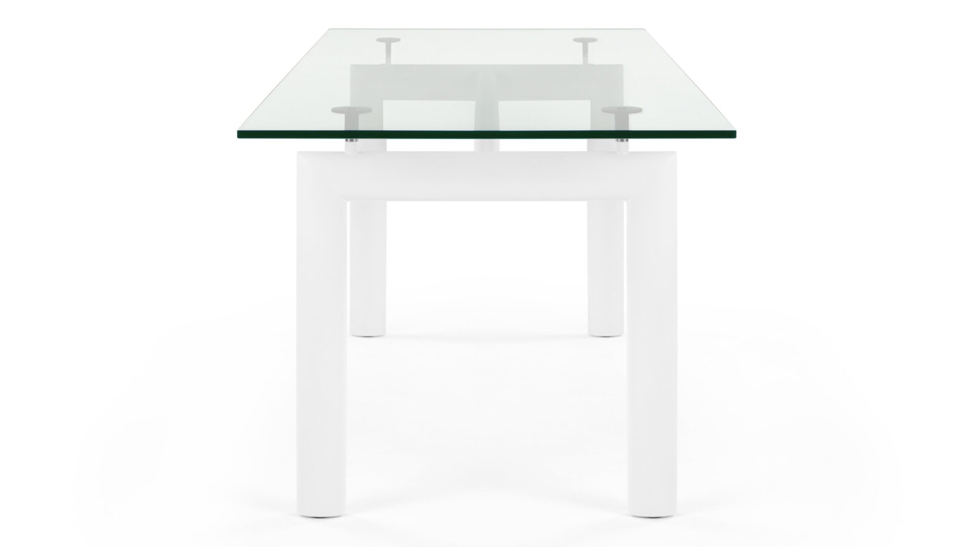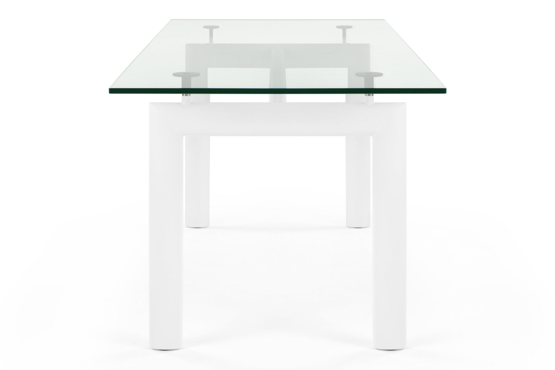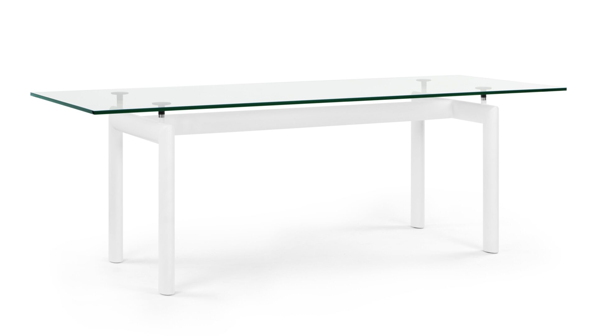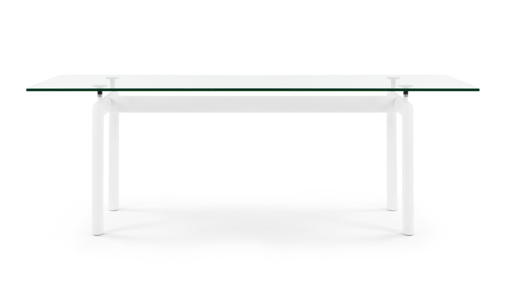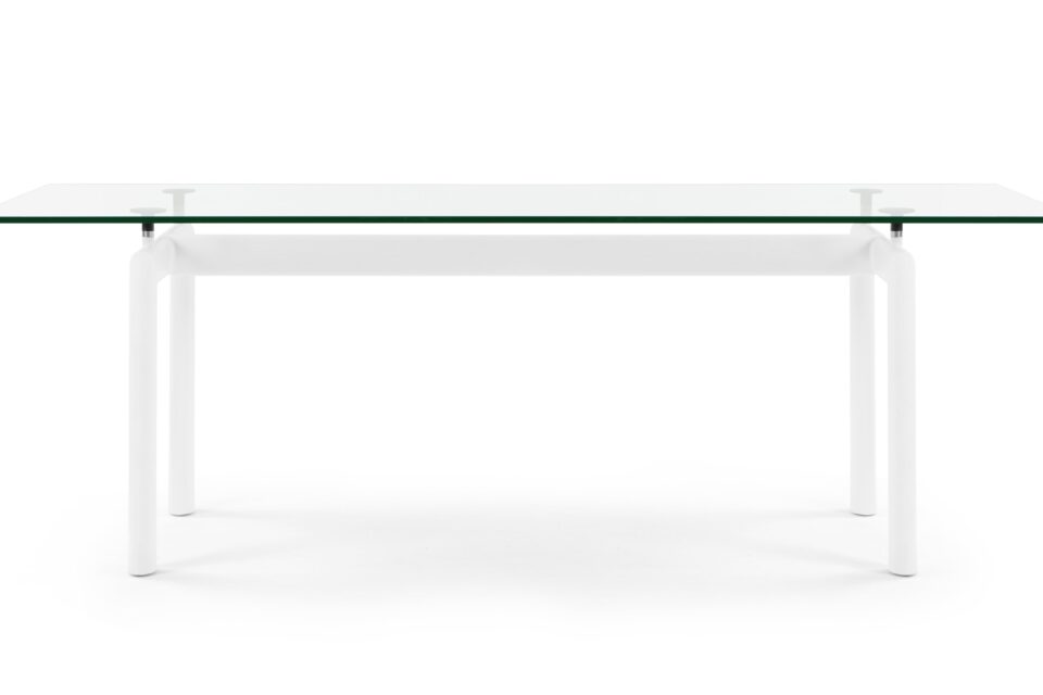 Elevate your dining space with the timeless Corbusier Dining Table in White, a blend of contemporary elegance and minimalist design. Featuring a sturdy tubular steel frame and premium tempered glass tabletop, this iconic piece embodies sophistication and functionality. Enhance your interior decor with this enduring symbol of mid-century modern style.