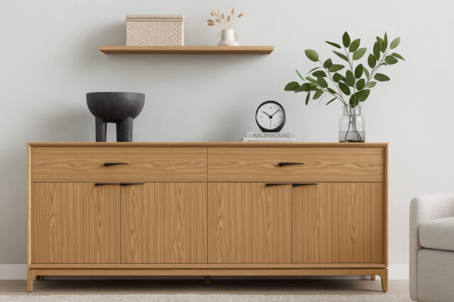 The Credenza Ash has a design that catches the eye without overshadowing other furniture pieces.