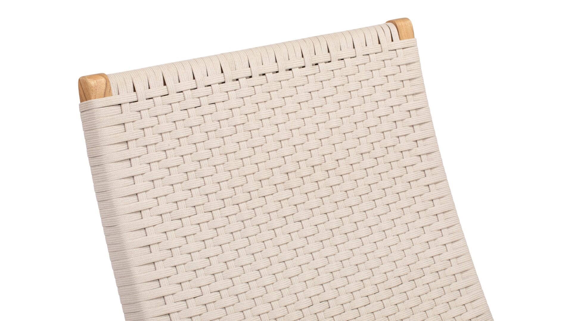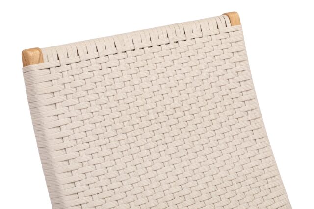 Experience the exquisite blend of luxurious teak wood and delicate colored woven elements in our chair. Its graceful curves and smooth edges create a refined and welcoming look.