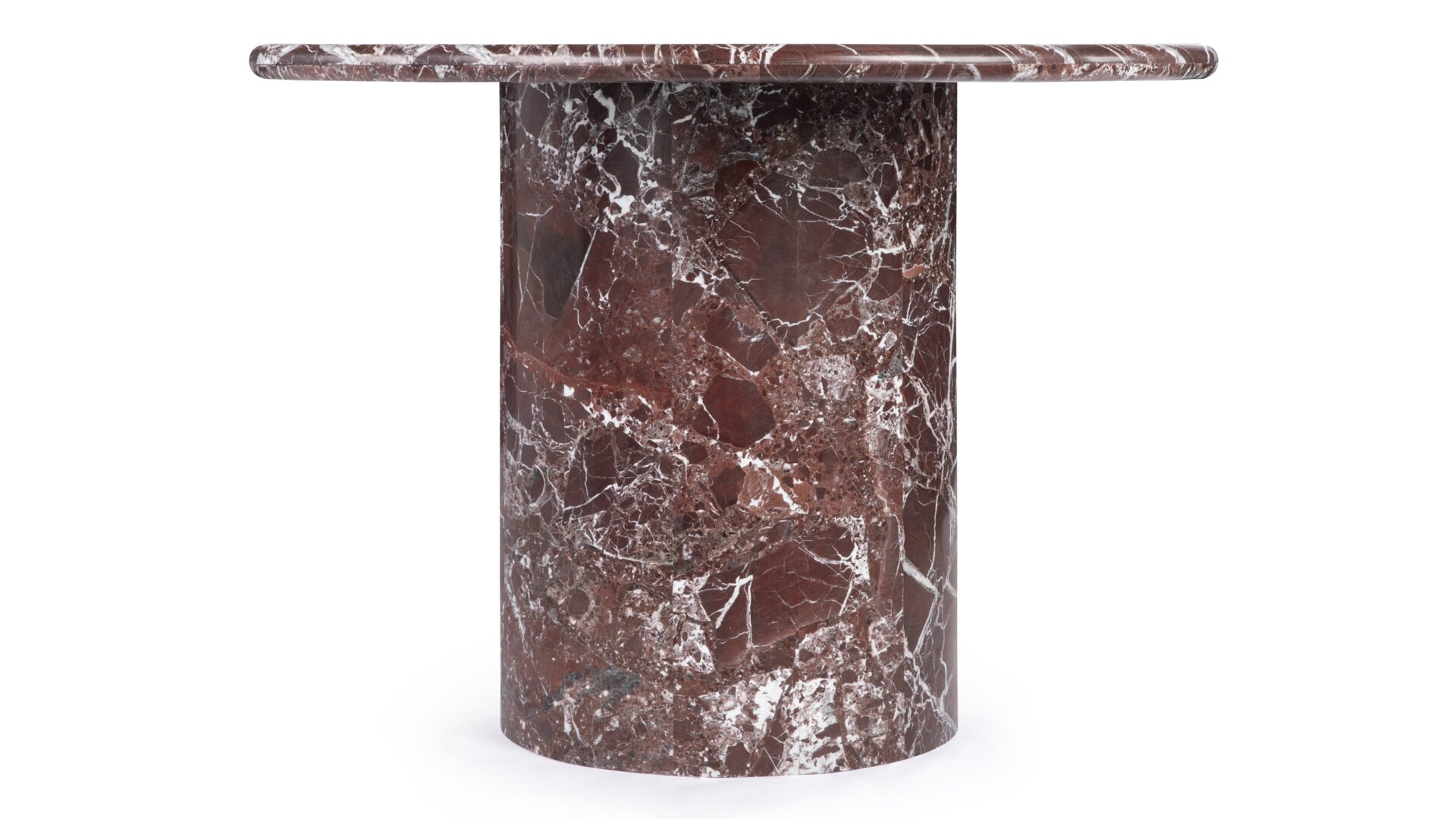 Elevate your dining experience with the luxurious Dante dining table, featuring exquisite Rosso Levanto Marble. Standing as the ultimate statement piece, this modern twist on the traditional double pedestal table adds a contemporary touch to upscale interiors. With unique variations in appearance, including distinct color patterns and natural veining, this opulent piece exudes classic elegance redefined for modern living.