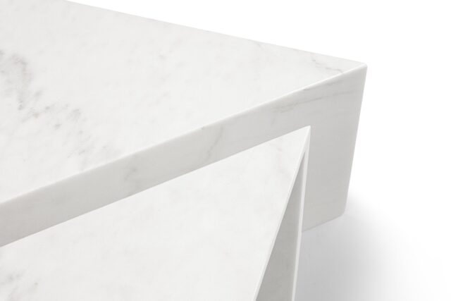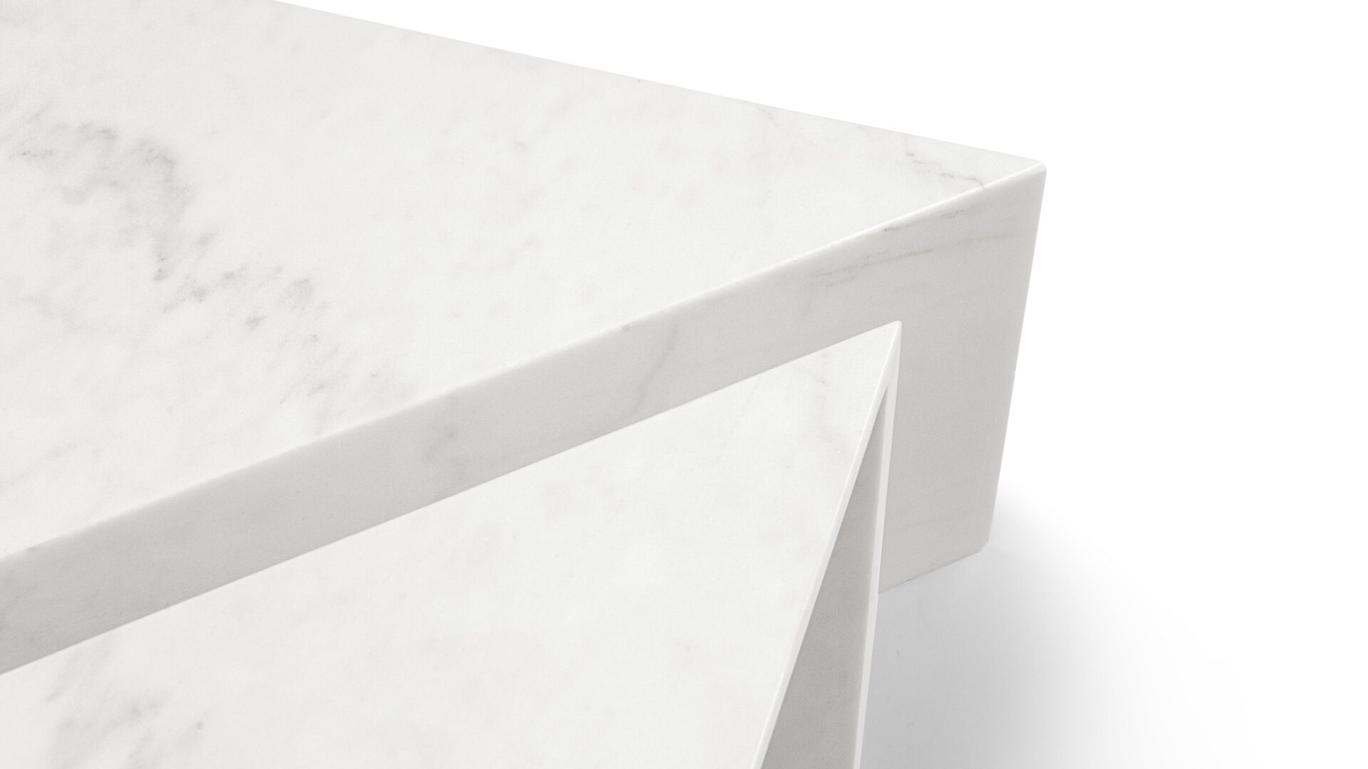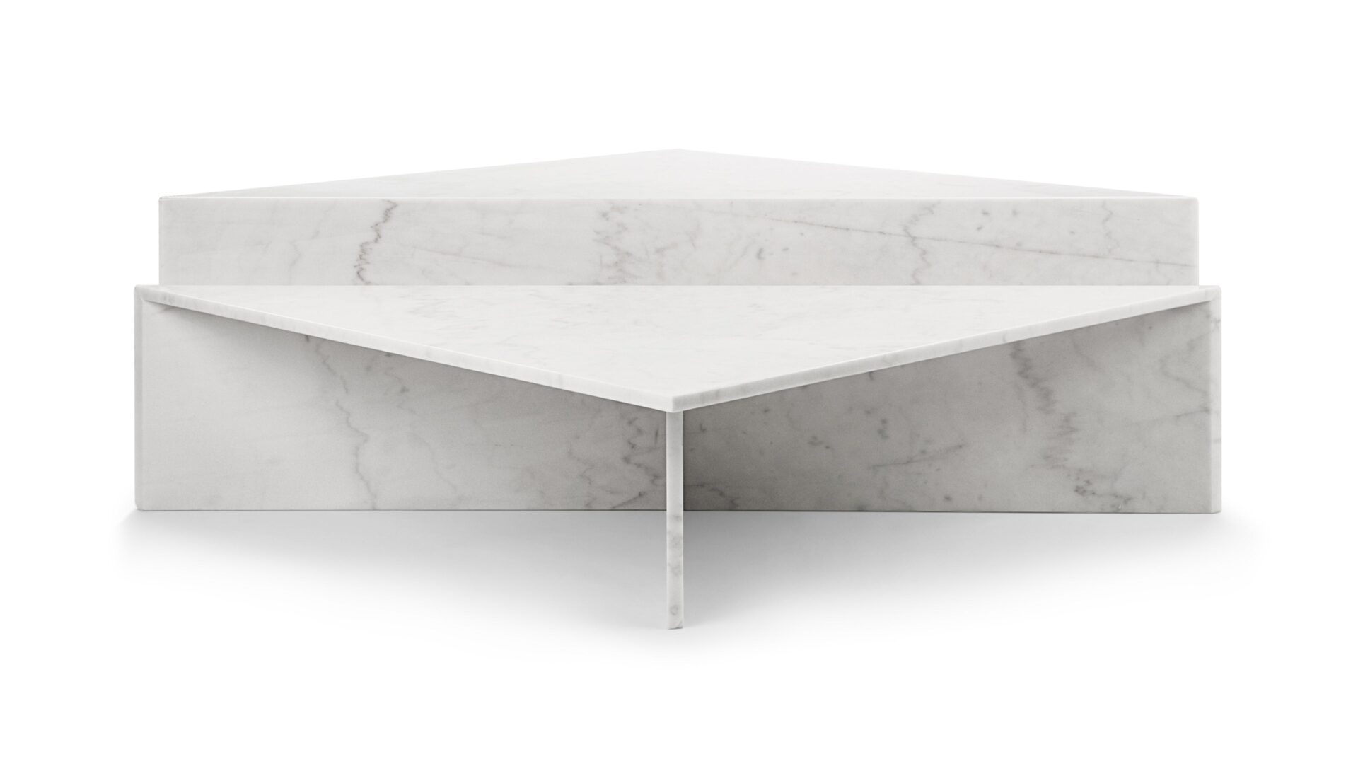 The Dea coffee table set elegantly combines form and function, featuring two marble tables that can be used together or separately. Crafted from premium white marble with graceful gray veining, the Dea coffee tables exude luxury and sophistication. Their assorted heights and angular design create a chic centerpiece, offering a practical spot for a coffee cup and a book. With its timeless allure and sophisticated aesthetic, this coffee table set effortlessly complements both modern and traditional interiors. As marble is a natural, refined material, each piece is inherently unique, showcasing subtle veining, delightful color variations, and charming distinctive characteristics.
