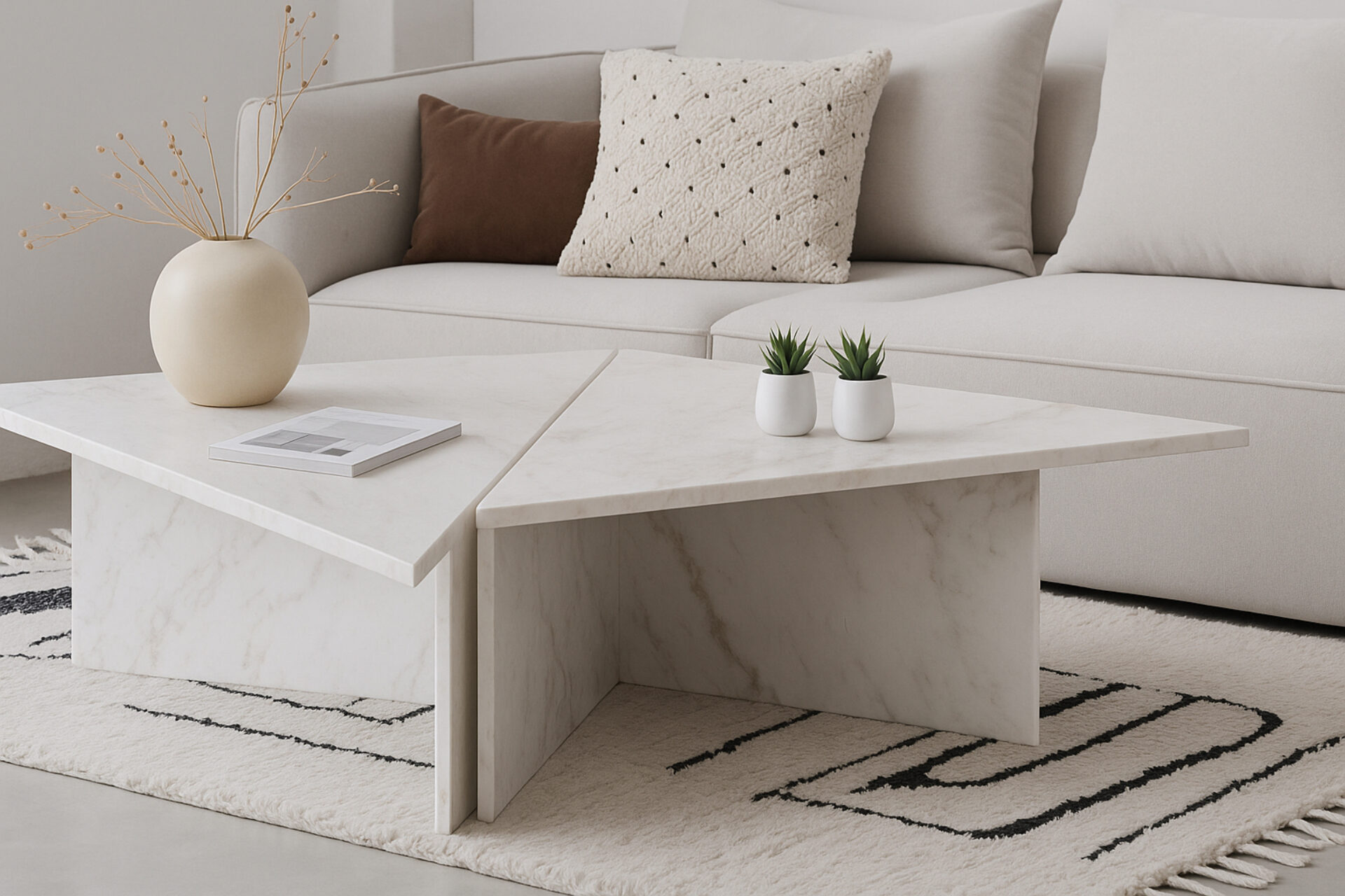 Elevate your living space with the captivating Dea coffee table set. Crafted with luxurious materials and a sleek angular form, this set serves as the perfect centerpiece. Its simple yet refined design adds a touch of luxury to any interior decor, making it a versatile style chameleon.