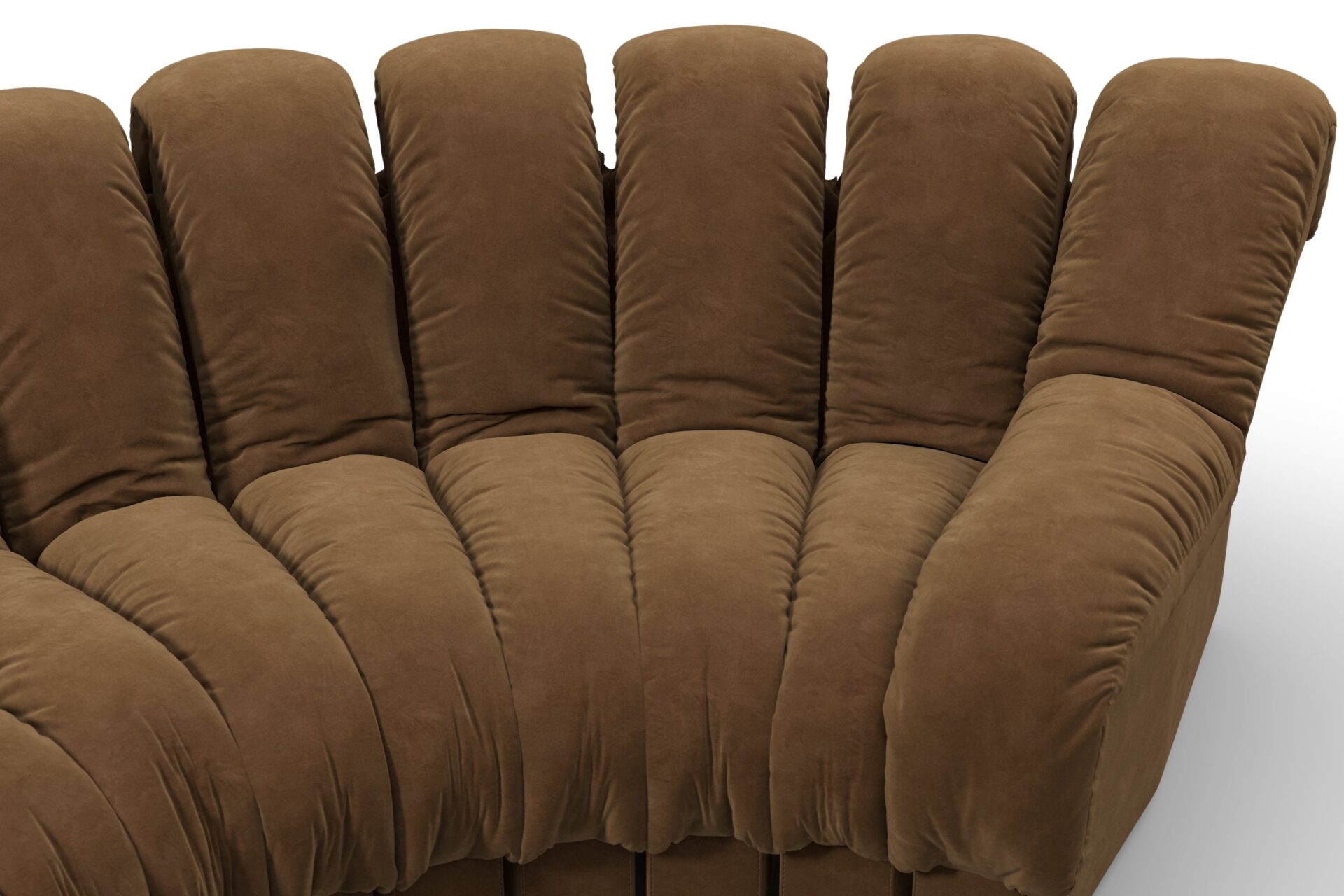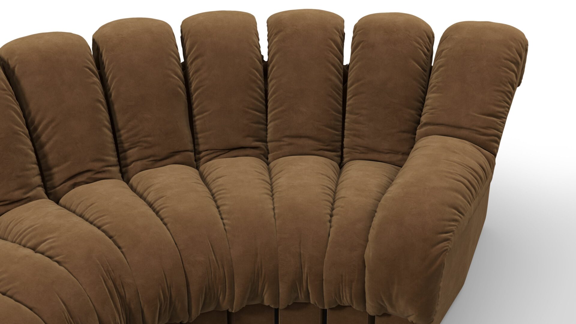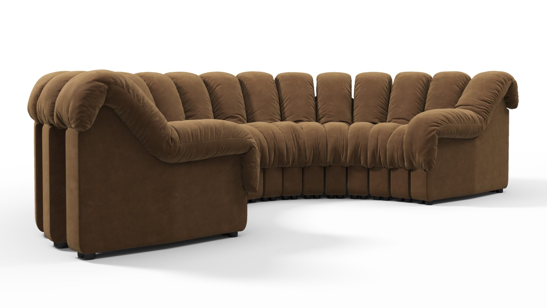Elevate your space with the DS 600 Sofa, a stylish sectional masterpiece that embodies innovation and visionary design from the '70s. Commanding attention with its bold proportions and sleek lines, this sofa encourages conversation and exploration in any room. Crafted with luxurious Brown Vegan Suede, it offers unmatched comfort and timeless elegance, creating a personalized seating layout that reflects your distinctive style.