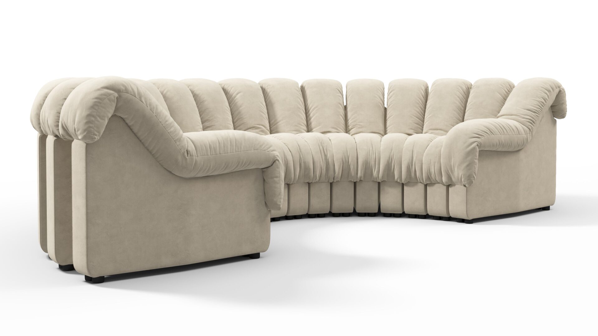 Elevate your space with the avant-garde DS 600 Sofa, a masterpiece of visionary craftsmanship, all in Eggshell Vegan Suede. This luxurious sectional sofa draws inspiration from the bold 1970s styles, offering infinite versatility and versatile seating options. Meticulously designed with lavish materials and attention to detail, it redefines modern furniture with its architectural elegance and timeless appeal.