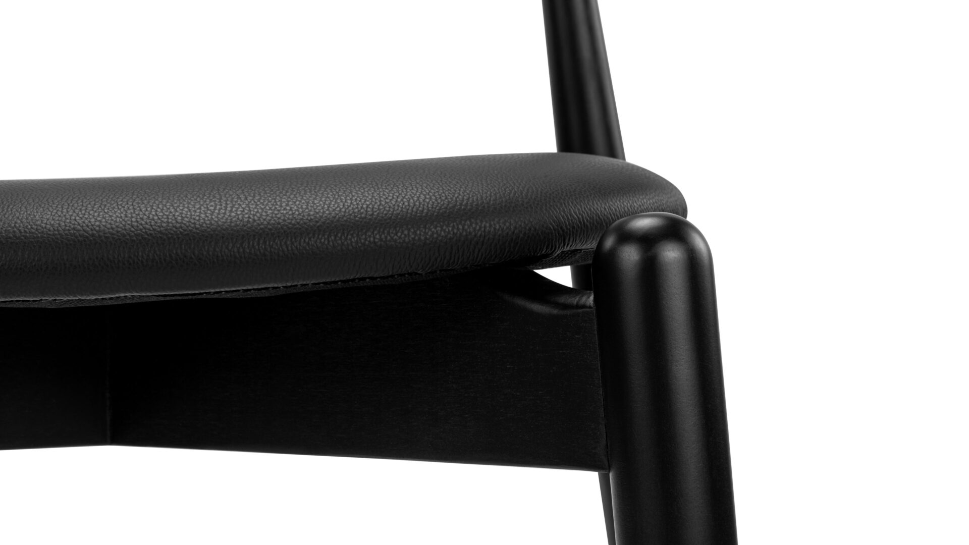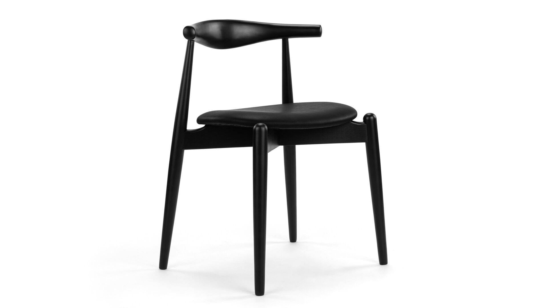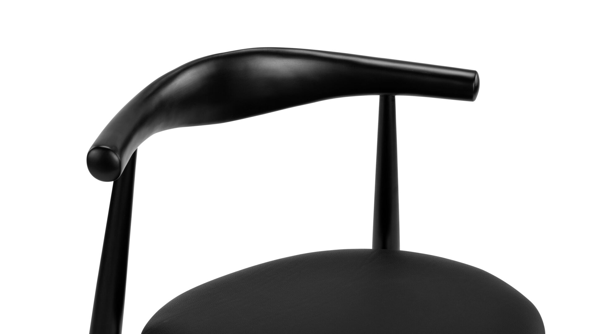 Renowned for its sleek lines and natural form, the Elbow Chair is a coveted item in the realm of design. Combining superb artistry and enduring style, this iconic piece stands out as a genuine masterpiece of mid-century modern design. Featuring elegant curves, ergonomic support, and meticulous craftsmanship, the Elbow Chair seamlessly integrates form and function to deliver an outstanding seating encounter. Crafted in a striking black finish, this timeless chair effortlessly enhances any space with its unique blend of contemporary, futuristic, and Scandinavian elements. Ample back support is provided by a skillfully steam-bent rounded backrest crafted from a single piece of wood, making it ideal for everyday use in dining and office spaces.